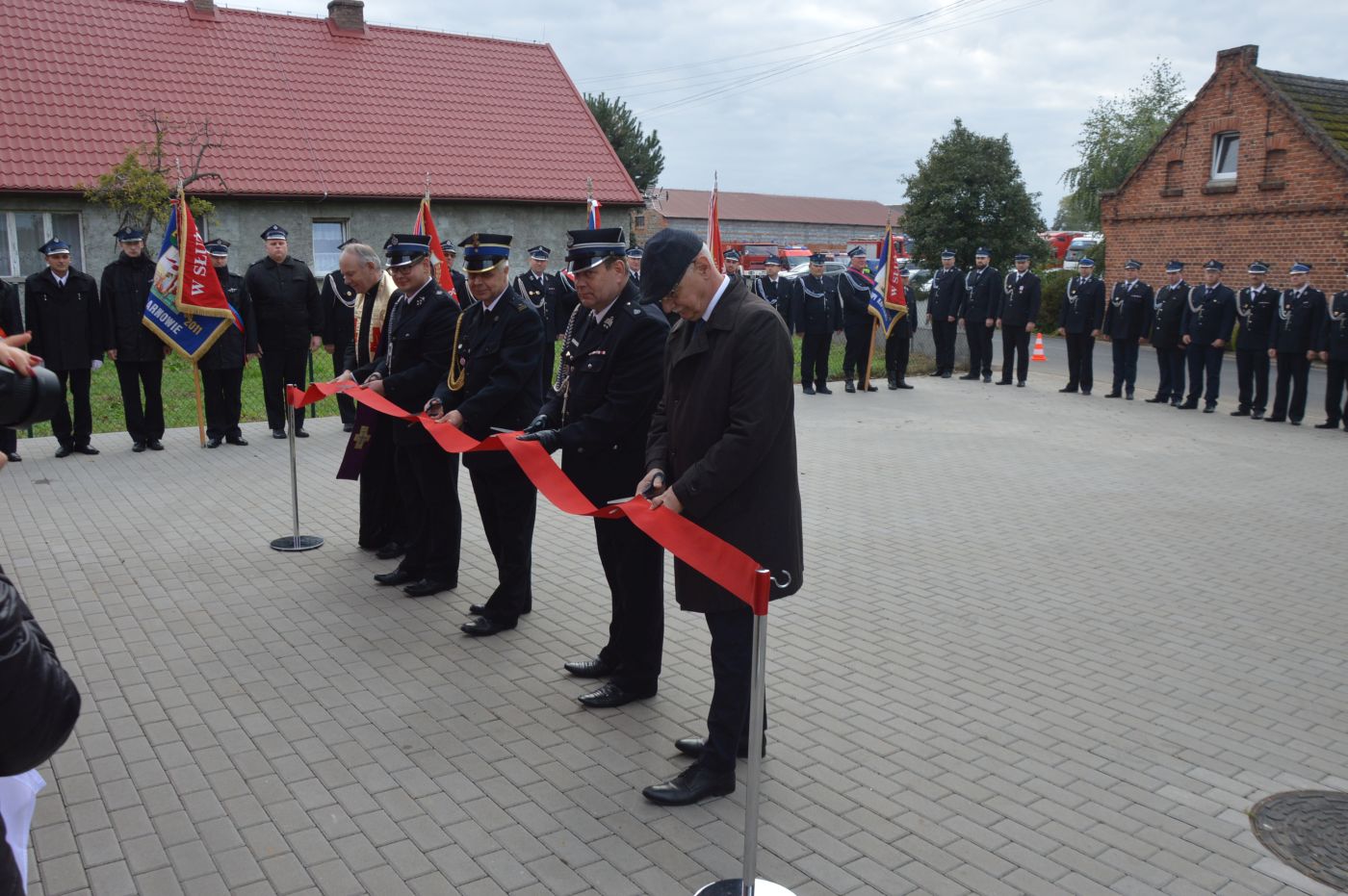 Symbolicznego otwarcia nowej remizy dokonali: Burmistrz Gminy Rawicz Grzegorz Kubik, Zastępca Komendanta Powiatowego PSP w Rawiczu mł. bryg. Krzysztof Skrzypczak, Członek Prezydium ZOW ZOSP RP w Poznaniu Wojciech Jarczewski oraz Prezes Zarządu OSP w Ugodzie Paweł Kukla.