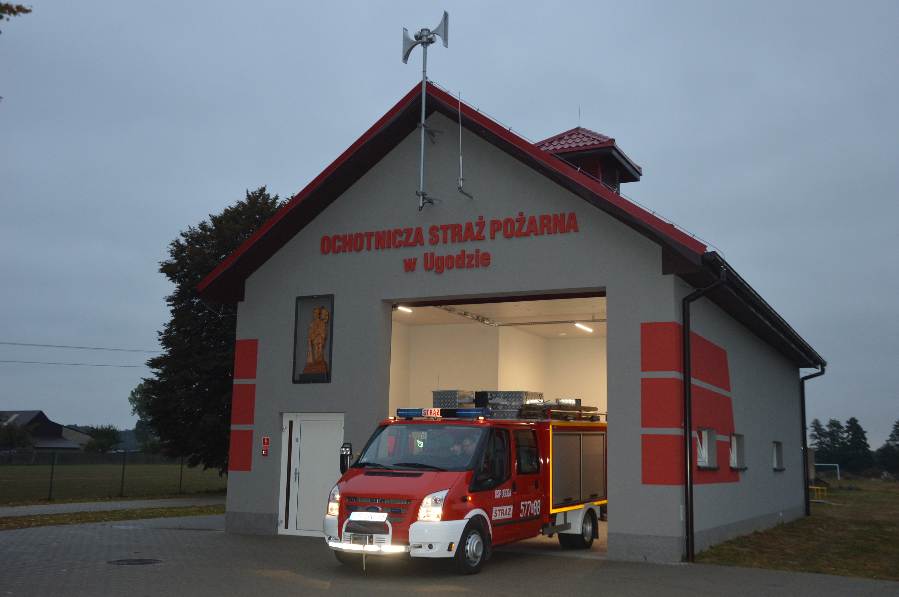 Druhowie z Ochotniczej Straży Pożarnej w Ugodzie (gmina Rawicz) przeprowadzili się do nowej remizy. Koszty budowy obiektu, który powstawał przez dwa lata, wyniosły ok. 529 000, 00 zł.