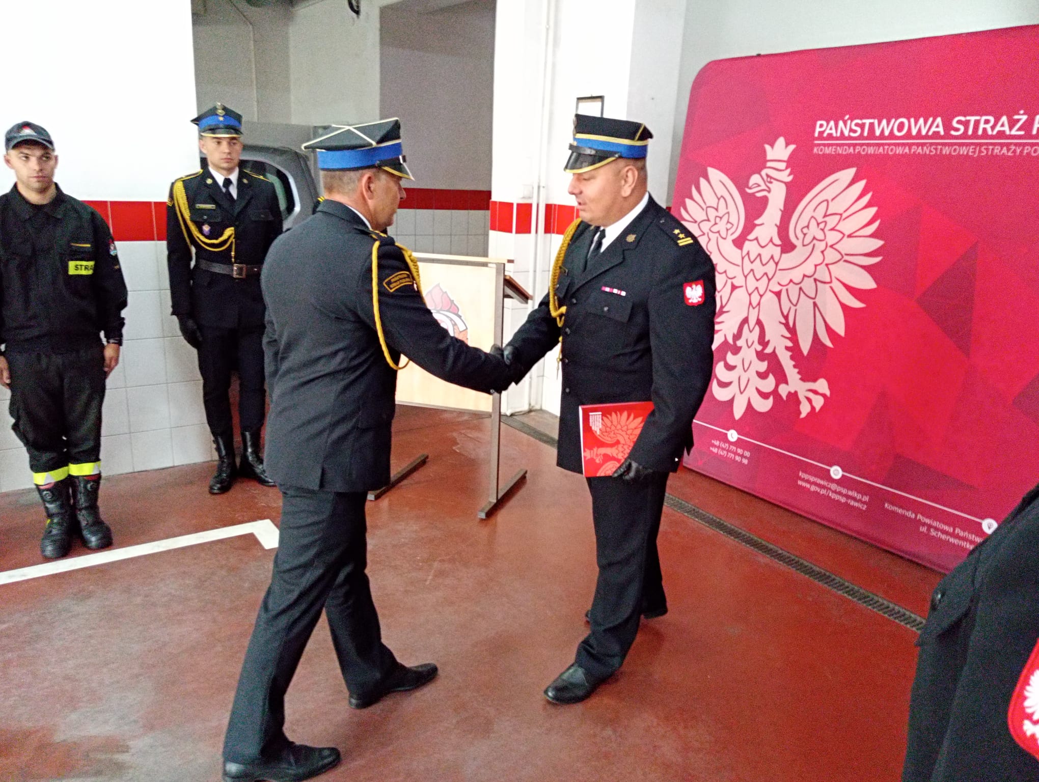 Wręczenie decyzji oraz przywitanie kpt. Roberta Burchardta przez rawickich strażaków i pracowników cywilnych miało miejsce tego samego dnia w siedzibie Komendy Powiatowej PSP w Rawiczu.