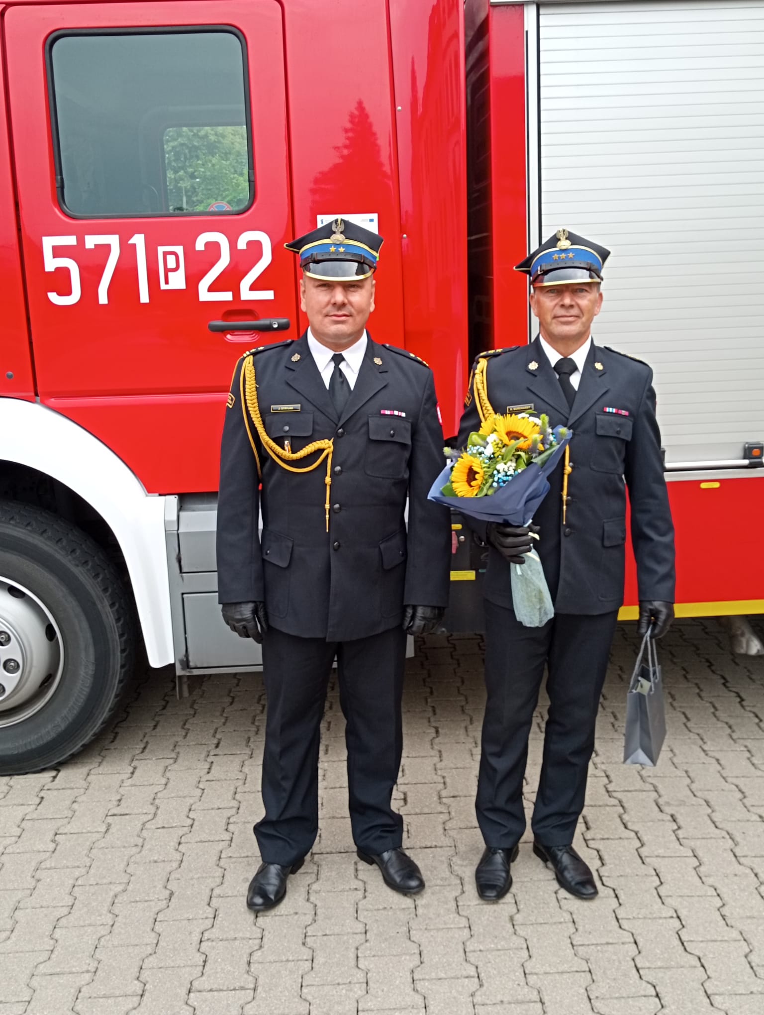 którzy otrzymali nagrody przyznane przez Wielkopolskiego Komendanta Wojewódzkiego Państwowej Straży Pożarnej za swoją postawę i zaangażowanie podczas działań prowadzonych w ramach centralnego odwodu operacyjnego, związanych z zabezpieczeniem przeciwpowodziowym województwa śląskiego w lipcu 2025 roku.