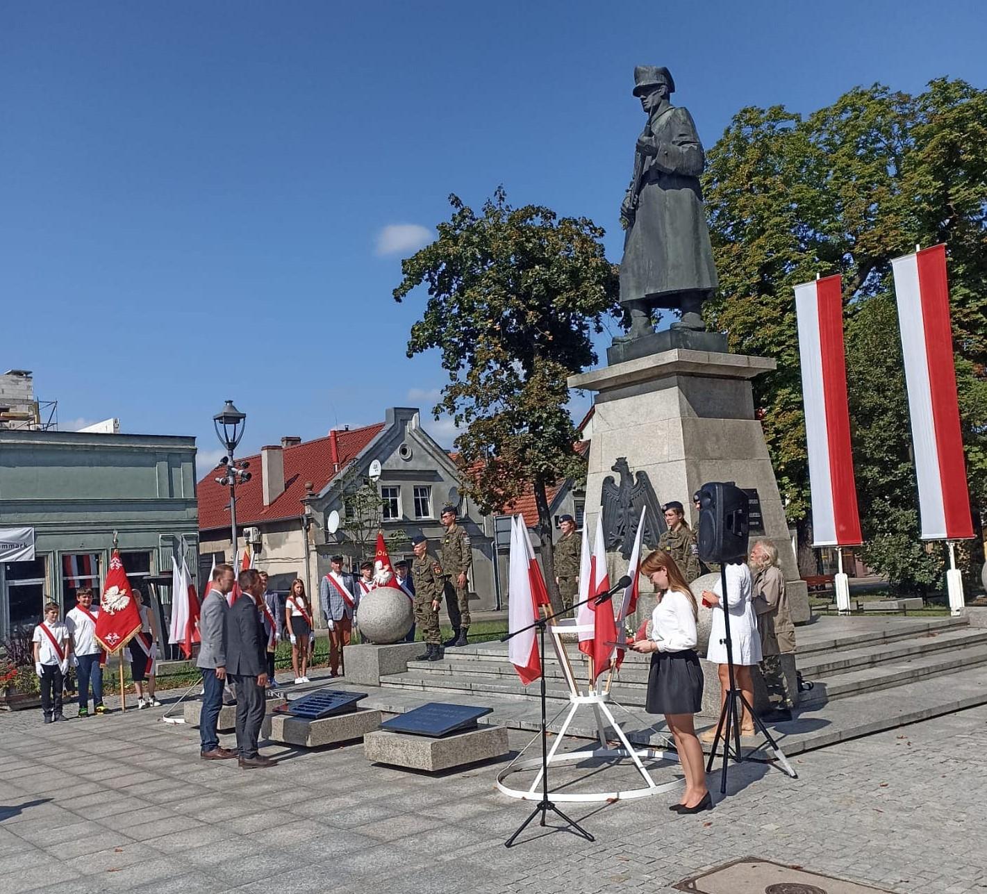 Zanim nastąpiła ceremonia składania wiązanek kwiatów pod pomnikiem Żołnierza Polskiego, odegrany i zaśpiewany został hymn państwowy, po którym przedstawicielka Starostwa Powiatowego w Rawiczu przypomniała najważniejsze fakty związane z wybuchem II Wojny Światowej oraz jej tragiczne skutki.