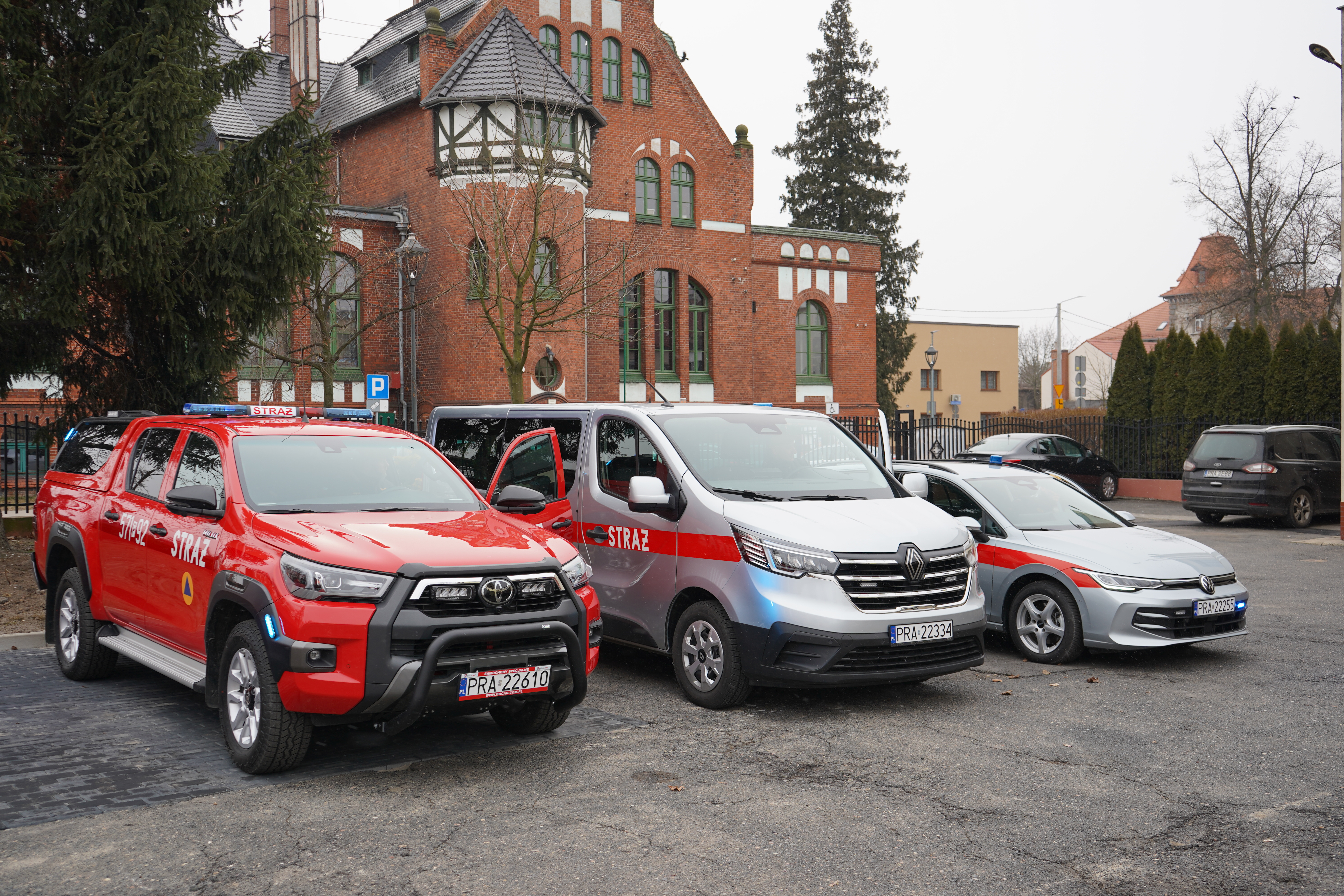 Druga część uroczystości odbyła się na placu komendy, gdzie nastąpiło symboliczne przekazanie pojazdów specjalnych: VW Golf, Renault Trafic oraz Toyota Hilux, a także sprzętu specjalistycznego dla JRG Rawicz. Przekazania dokonali przedstawiciele m.in. Delegatury Wielkopolskiego Urzędu Wojewódzkiego w Lesznie, WFOŚiGW w Poznaniu, KW PSP oraz samorządów lokalnych. Następnie ks. Janusz Małuszek, proboszcz parafii pw. św. Andrzeja Boboli w Rawiczu, dokonał poświęcenia przekazanego sprzętu.