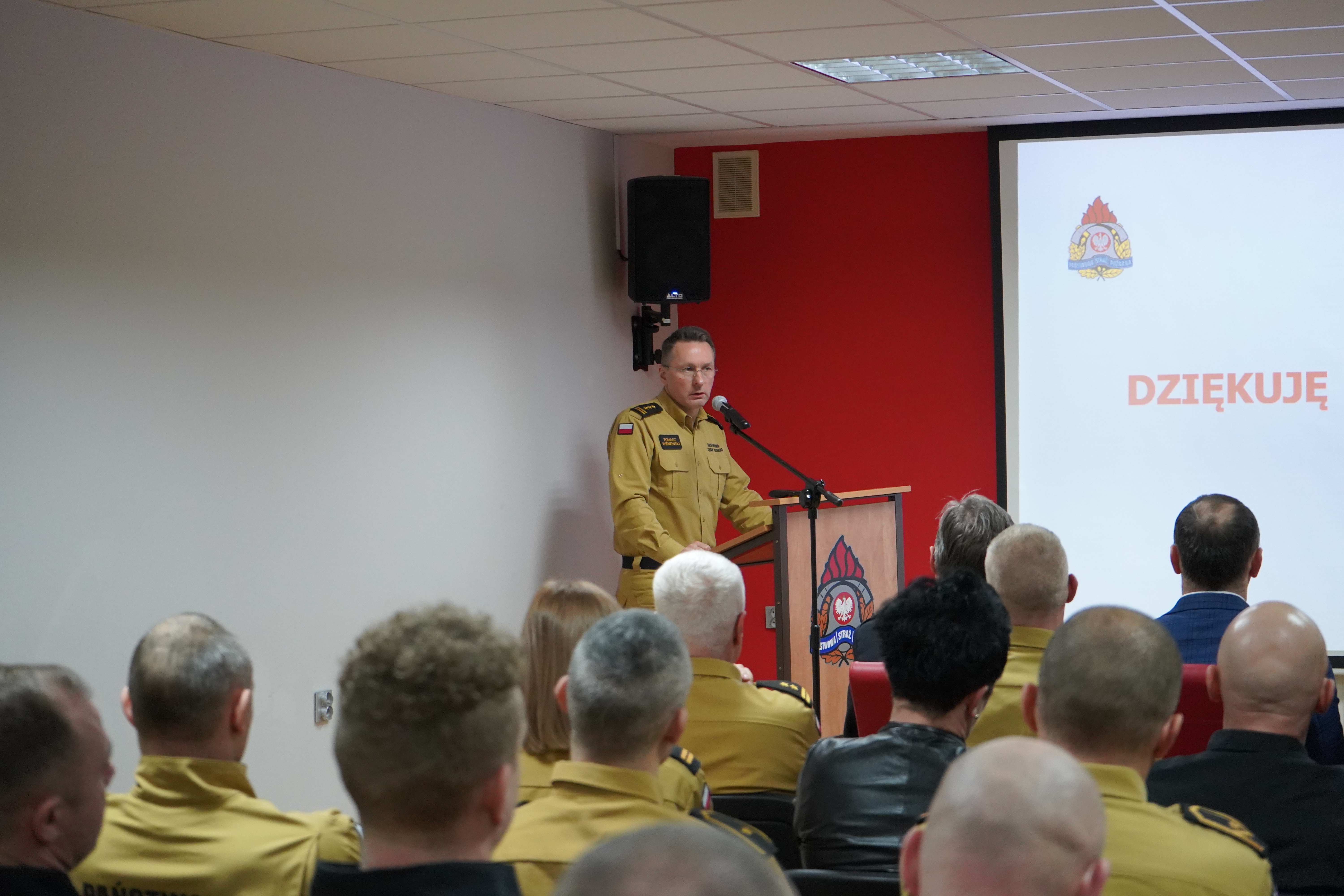 Z kolei zastępca wielkopolskiego komendanta wojewódzkiego PSP na początku swojego wystąpienia podsumował miniony rok w odniesieniu do województwa wielkopolskiego, zwracając uwagę na wzrost ilości interwencji o ponad 4 tys. w porównaniu do roku 2023 i prognozując dalszą tendencję wzrostową z uwagi na przybywającą ilość dodatkowych zadań i obowiązków. Ponadto st. bryg. Tomasz Wiśniewski podkreślił jak ważny jest proces szkolenia i doskonalenia zawodowego strażaków, w dobie kiedy straż pożarna stała się uniwersalną służbą ratowniczą, wyspecjalizowaną w wielu dziedzinach. Bardzo mocno wyartykułował znaczenie prewencji społecznej w kontekście uświadamiania społeczeństwa o istnieniu zagrożeń i sposobach przeciwdziałania im w celu ograniczenia ilości zdarzeń, w tym