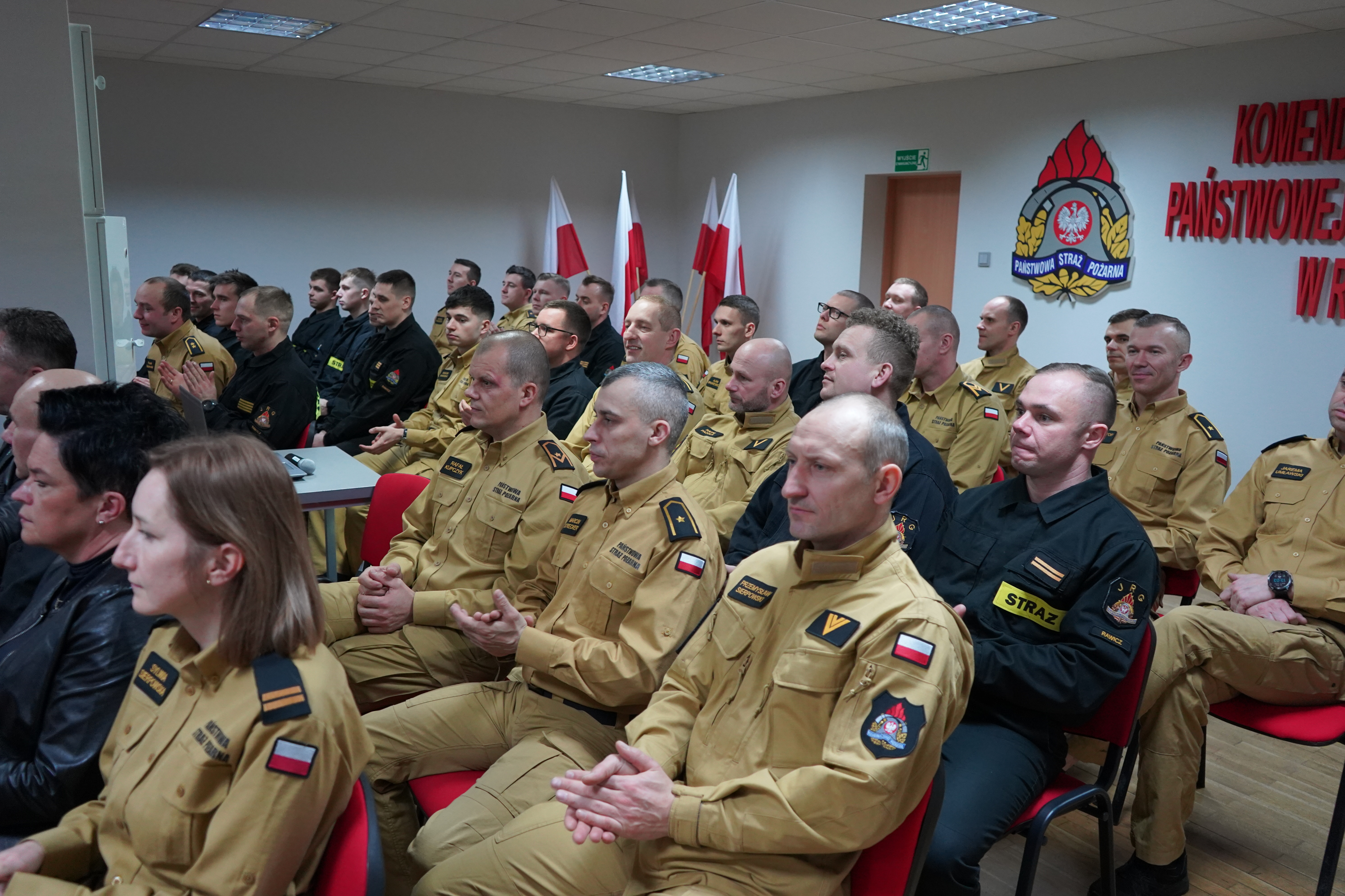 Odprawa odbyła się w czwartek, 6 lutego 2025 r. w świetlicy Komendy Powiatowej Państwowej Straży Pożarnej w Rawiczu.