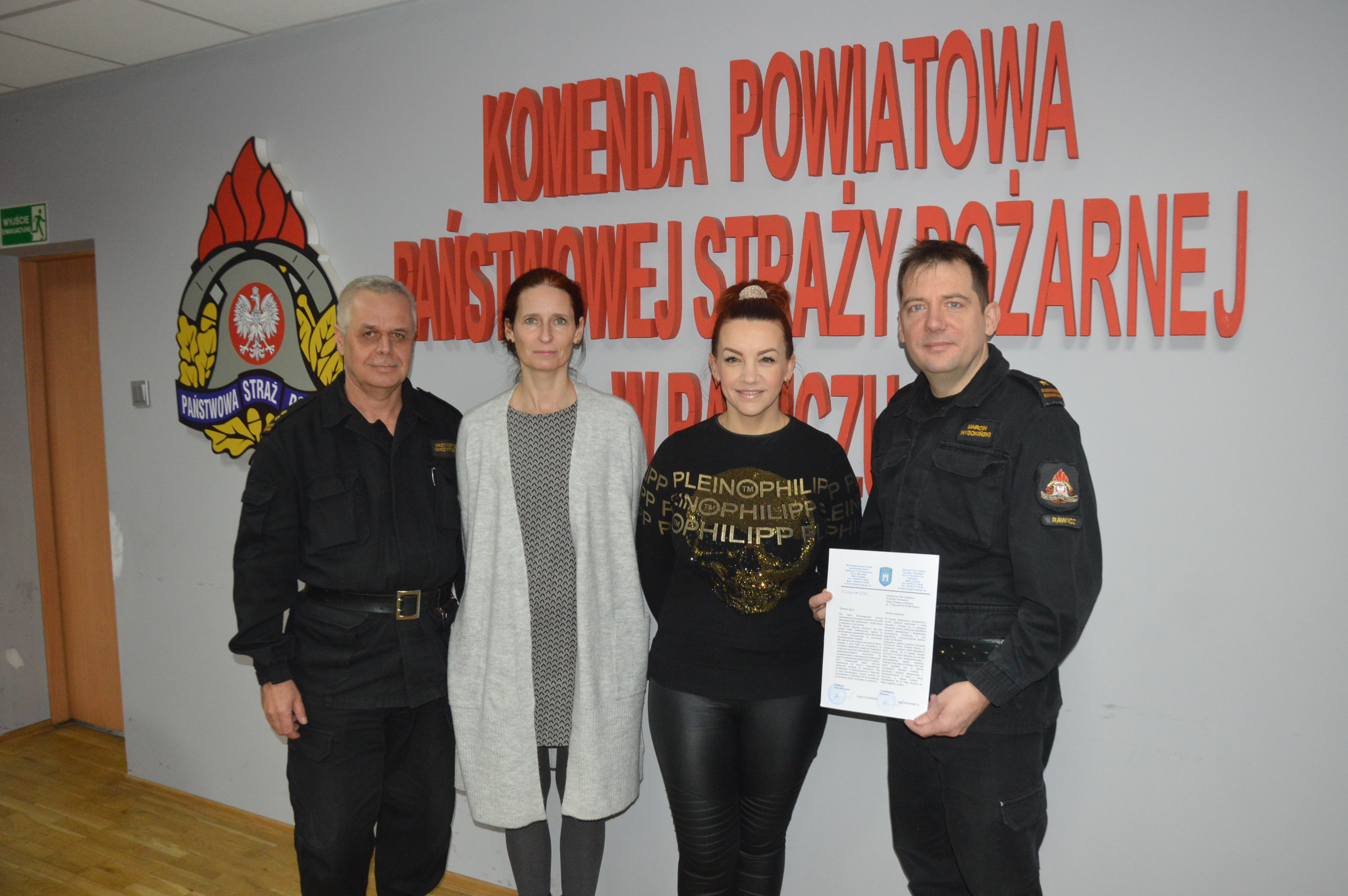 List na ręce kierownictwa komendy przekazała Pani Wiktoria Yemets, pochodząca z Żytomierza rawiczanka, która jest łączniczką pomiędzy samorządem Gminy Rawicz i władzami swojego rodzinnego miasta, koordynującą m.in. pomoc humanitarną. Towarzyszyła jej Pani Anna Hamrol, inspektor biura zarzadzania kryzysowego UMG Rawicz.