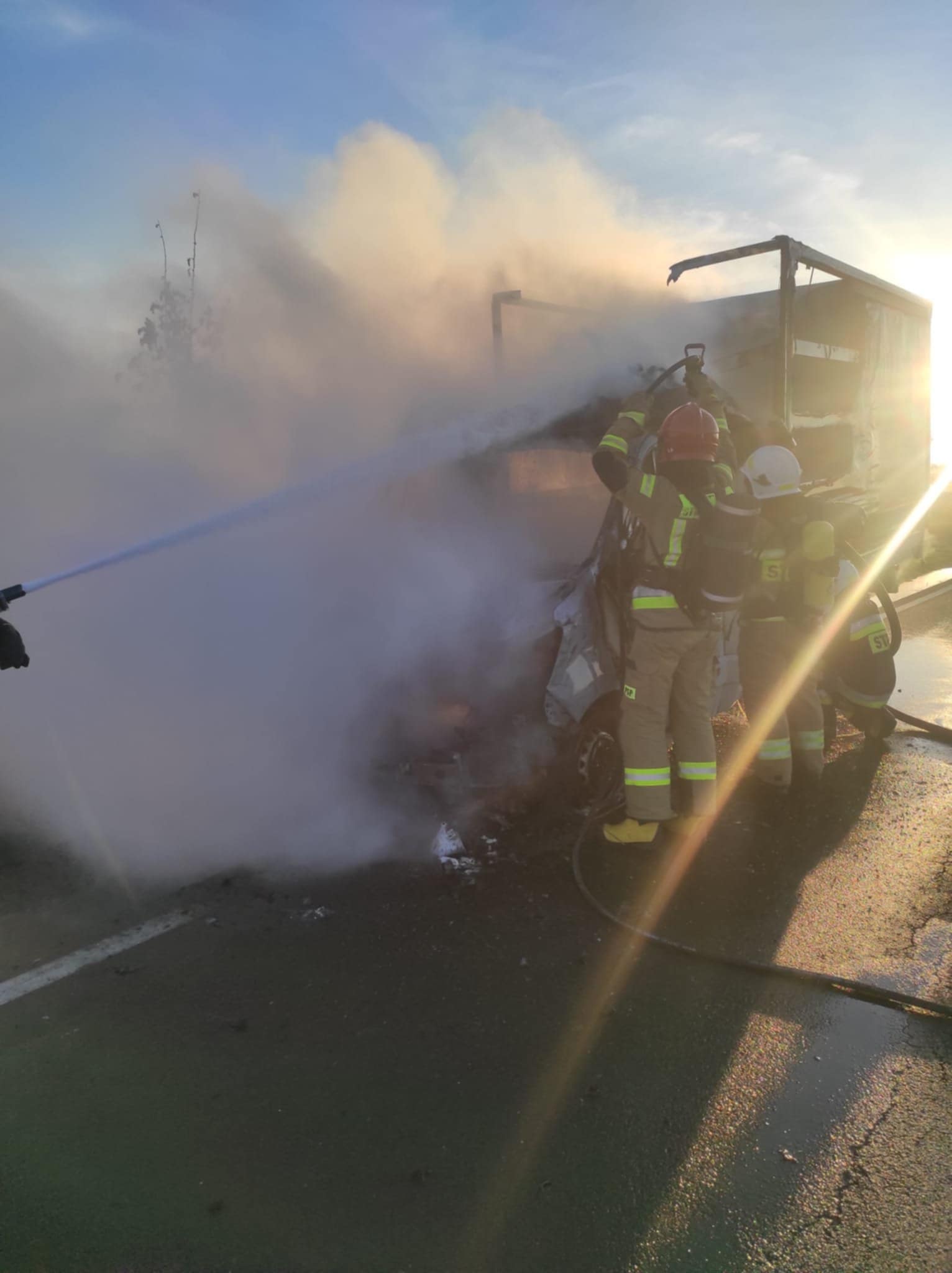 W momencie przyjazdu pierwszego zastępu, płomienie obejmowały już całą kabinę dostawczego 4 – letniego renault master, który wcześniej poruszał się w kierunku Miejskiej Górki.