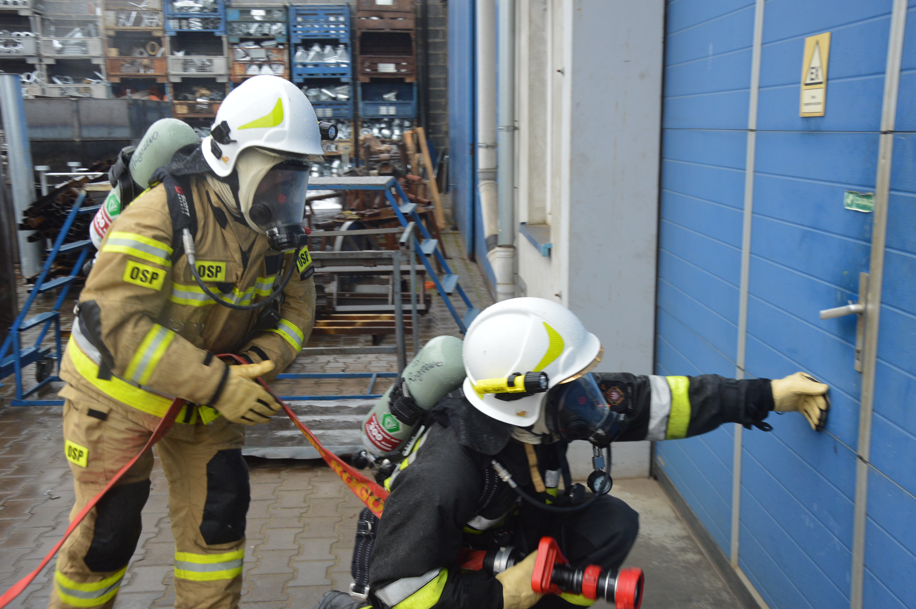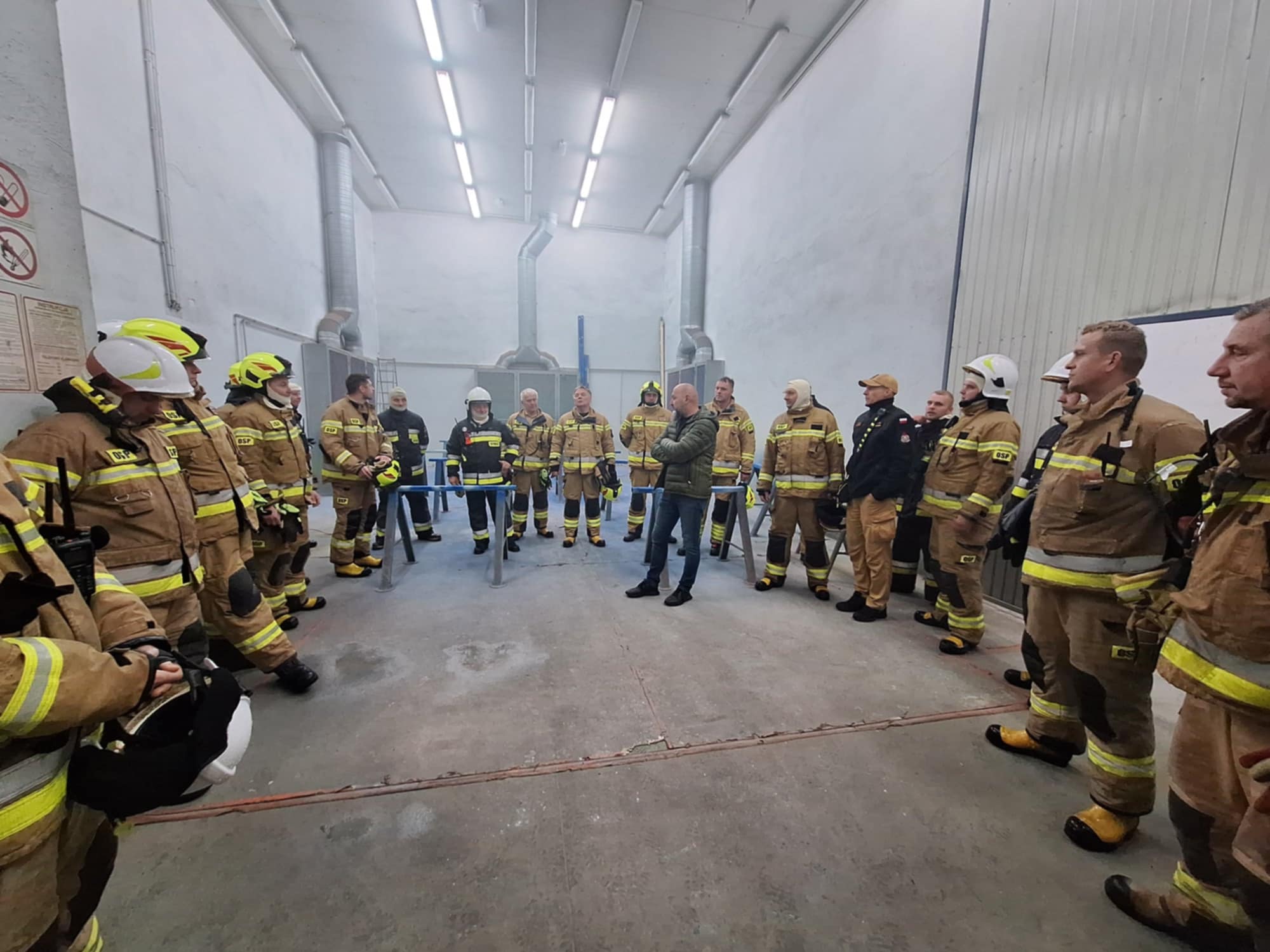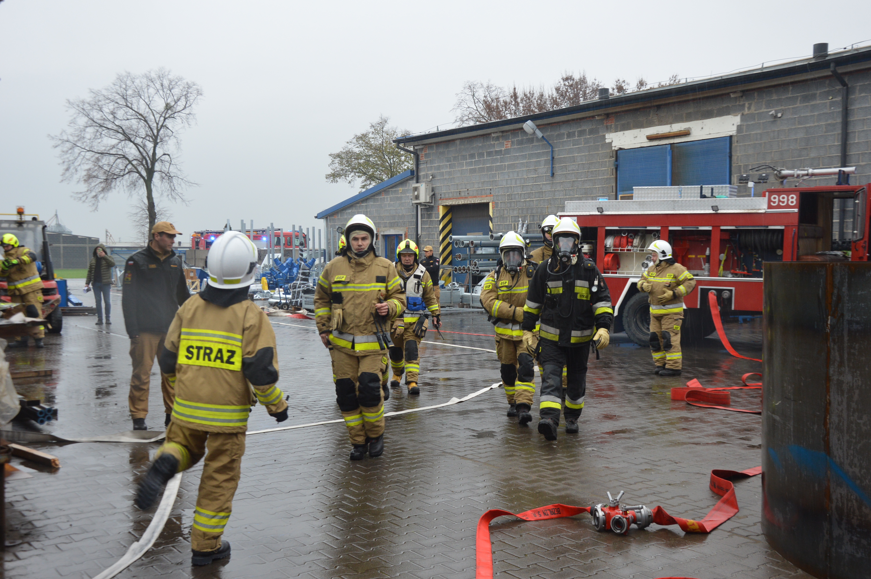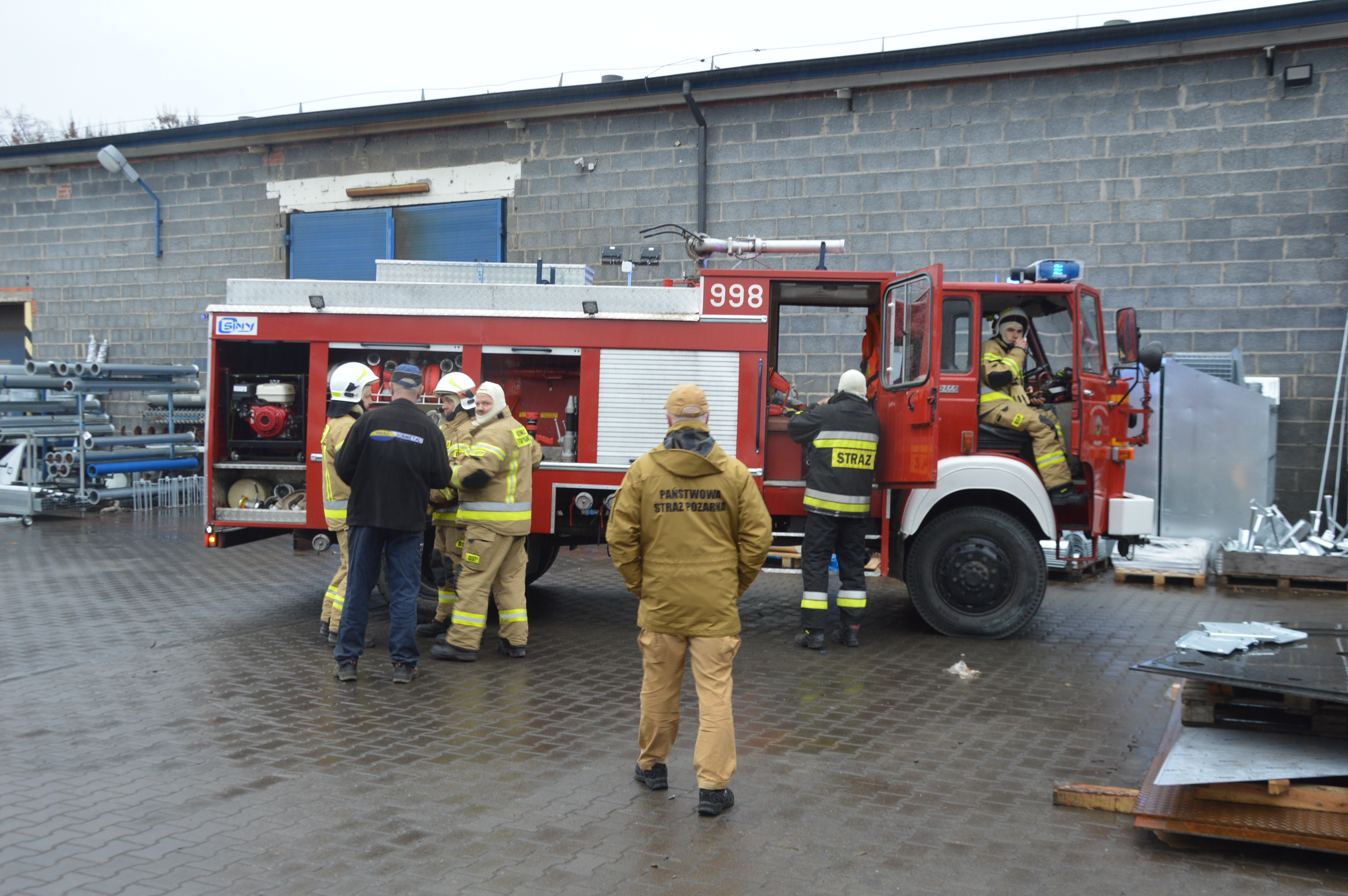 Po zakończeniu ćwiczeń strażacy szczegółowo zapoznali się z zakładem oraz elementami jego operacyjnego zabezpieczenia (lokalizacja przeciwpożarowych wyłączników prądu, kurka głównego instalacji gazowej, przebieg dróg dojazdowych