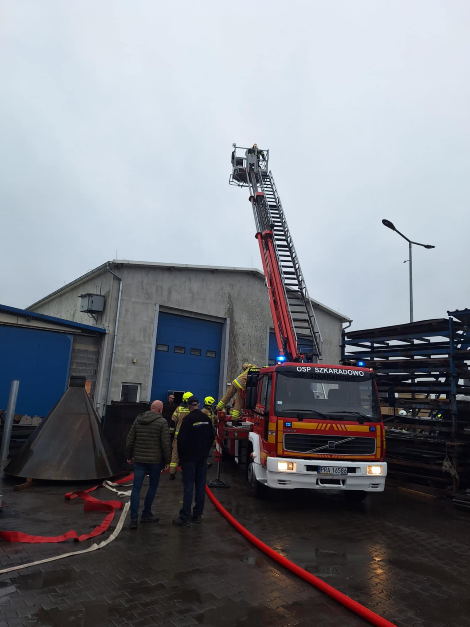 Najpierw pracownicy firmy zajmującej się produkcją mieszalni pasz i innych urządzeń na potrzeby rolnictwa, dostrzegli zadymienie w pomieszczeniu malarni. Powiadomiony o tym fakcie jeden ze współwłaścicieli zakładu, natychmiast zarządził ewakuację wszystkich osób przebywających w budynkach. Zaalarmowano też służby.