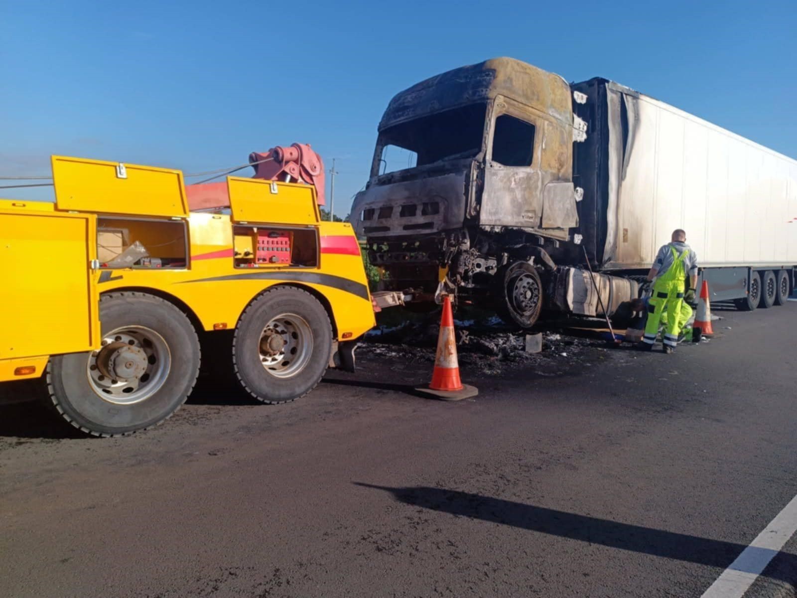 Jak oznajmił kierowca, oznaki pożaru pojawiły się w trakcie jazdy – w kabinie pojazdu. Widząc dym i wyczuwając zapach spalenizny, mężczyzna zatrzymał samochód i powiadomił Centrum Powiadamiania Ratunkowego.