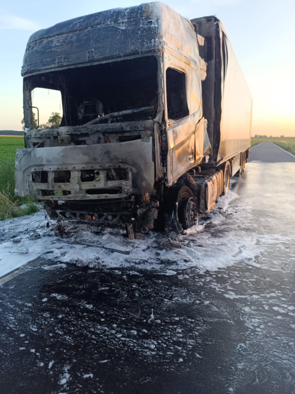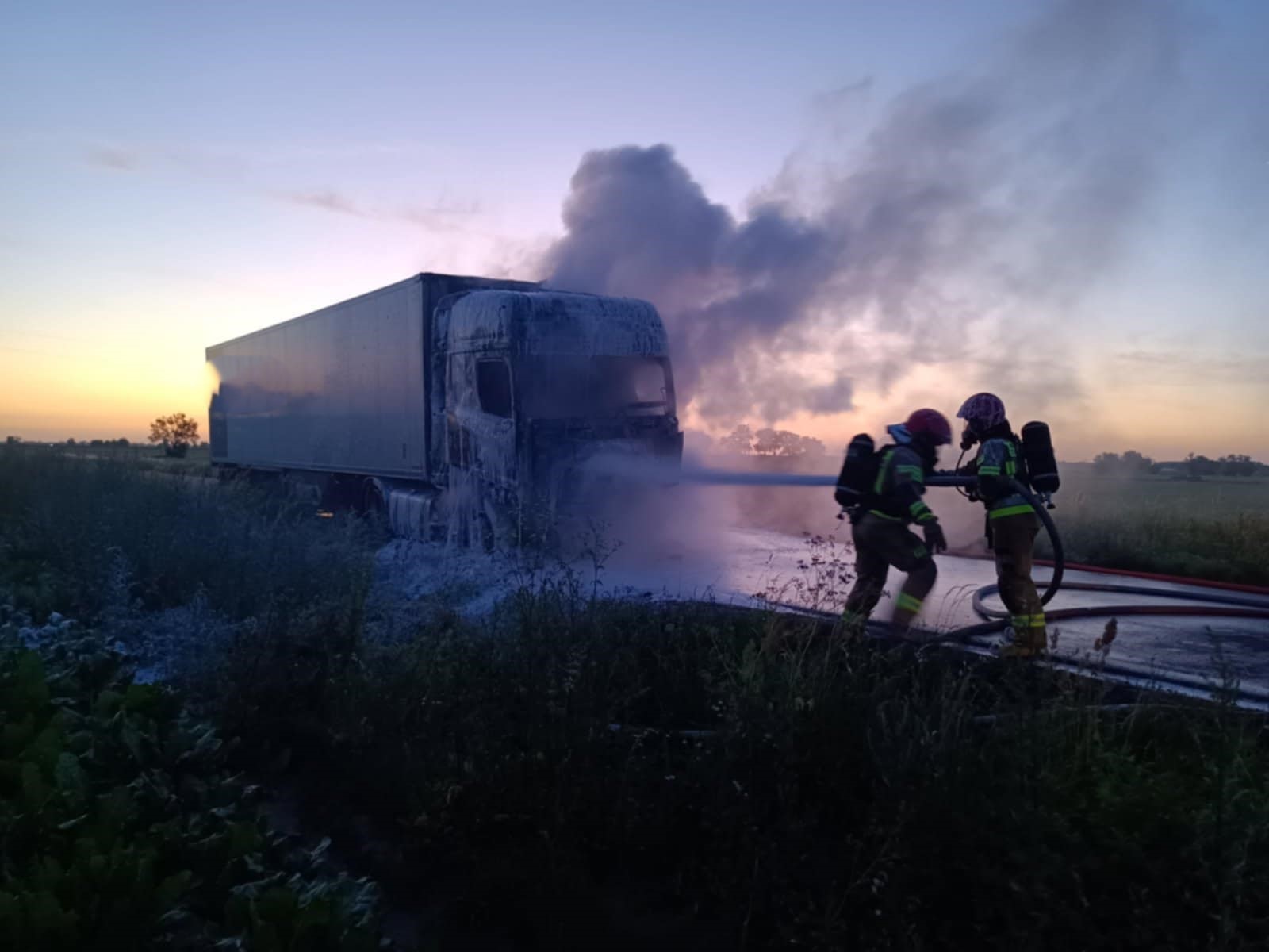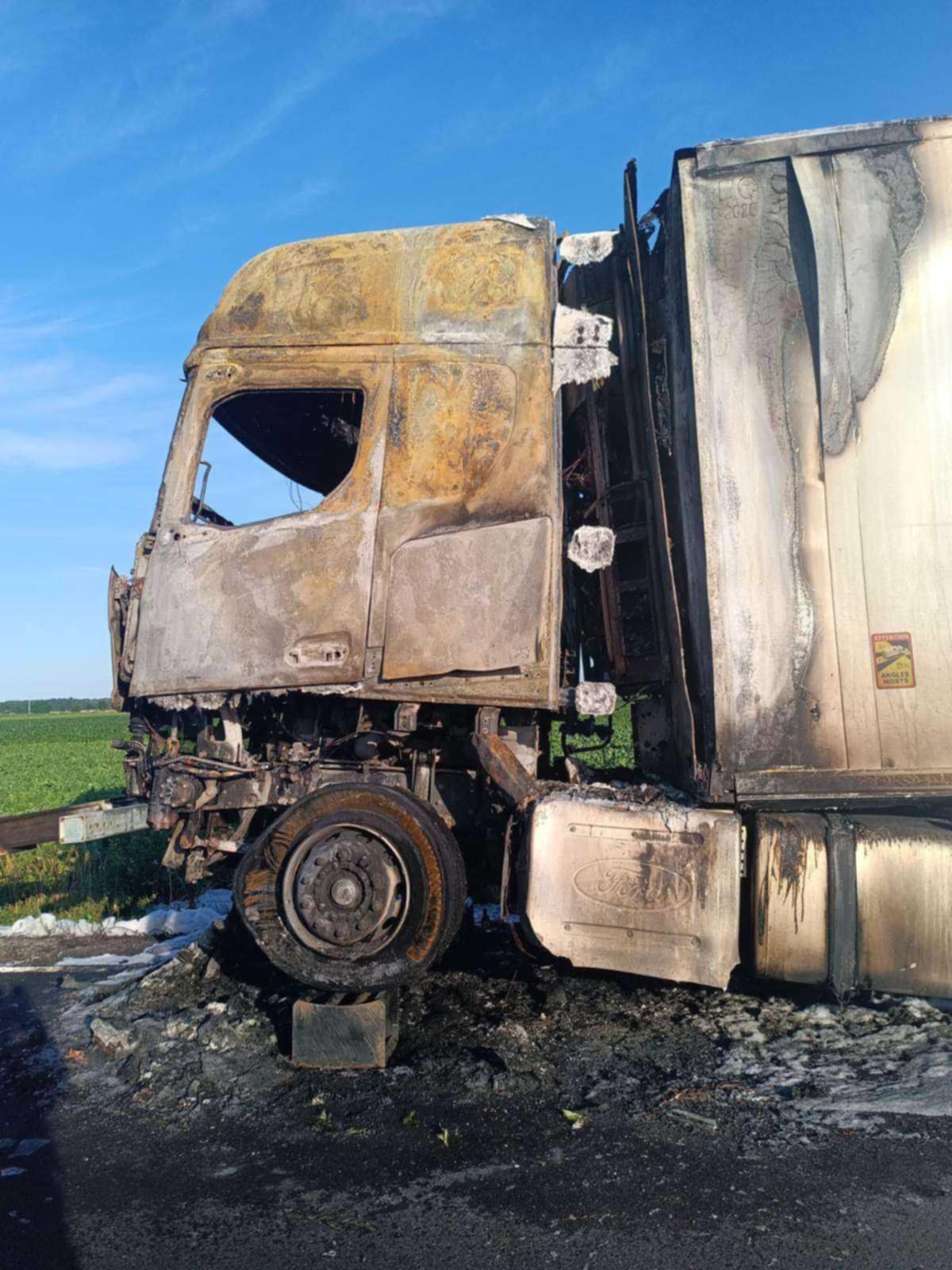 Dziś nad ranem ogień strawił ciągnik siodłowy i naczepę. Na szczęście nikt nie odniósł obrażeń. W gaszeniu pożaru i usuwaniu jego skutków brało udział 21 strażaków.