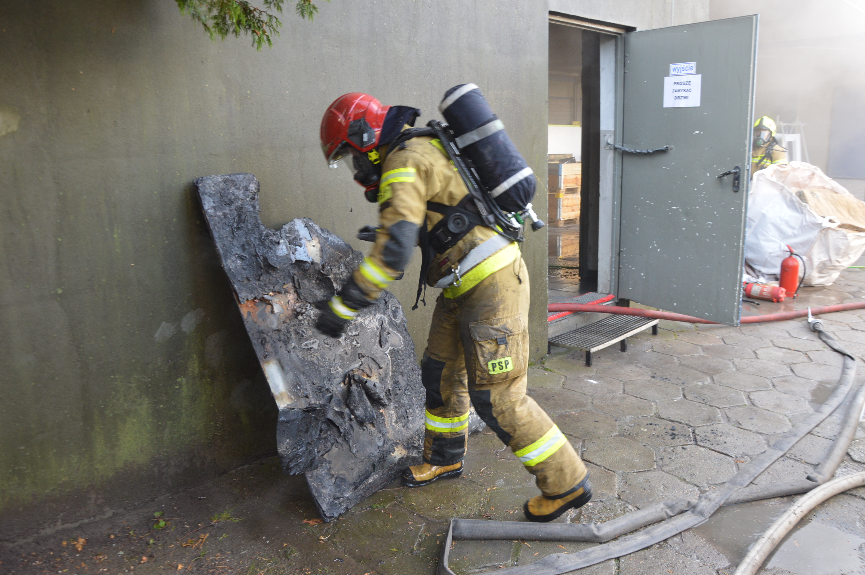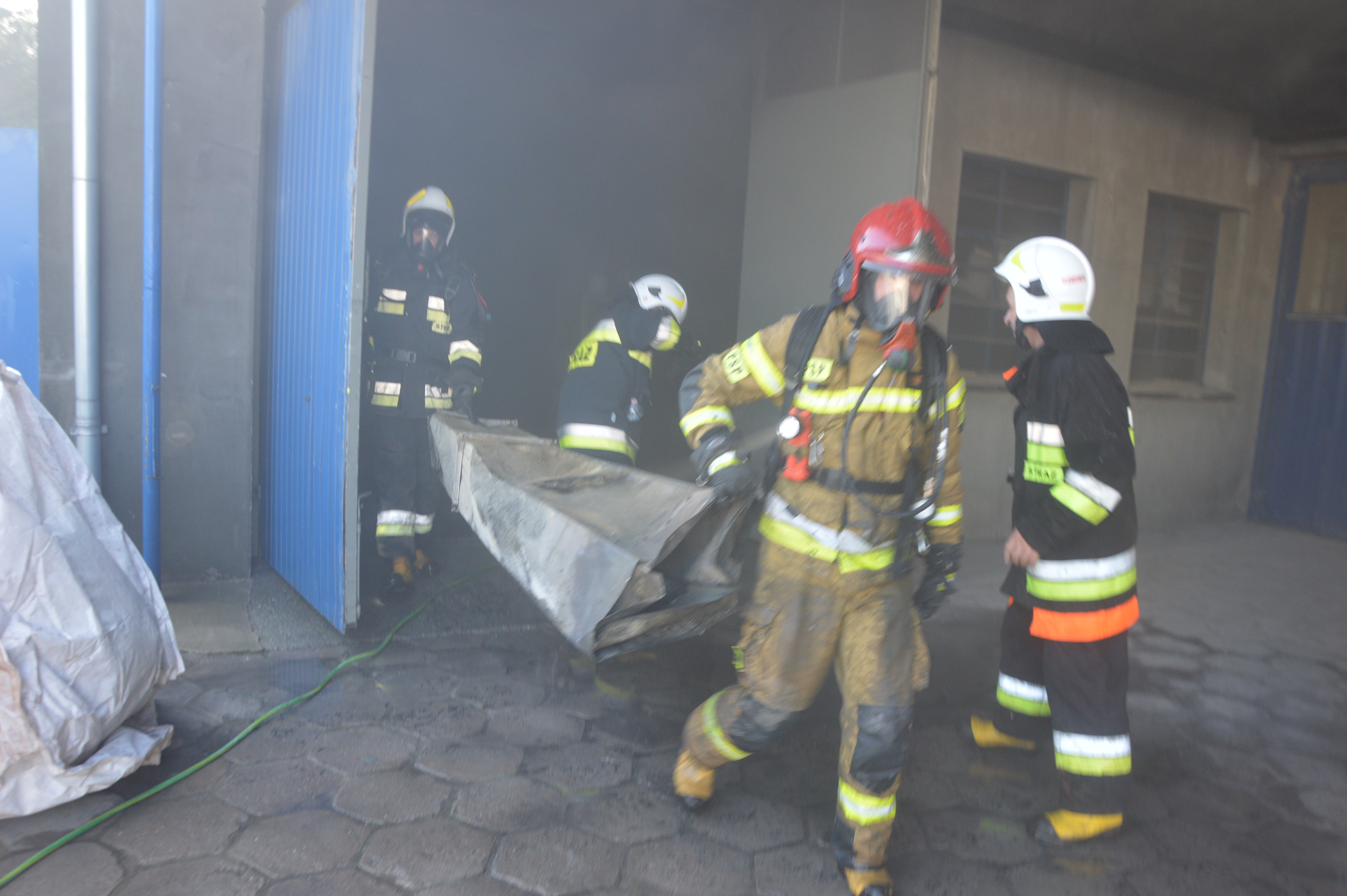Po przygaszeniu pożaru przystąpiono do oddymiania pomieszczeń oraz demontażu części ścian wykonanych z płyty obornickiej, monitorując na bieżąco sytuację przy wykorzystaniu kamer termowizyjnych.