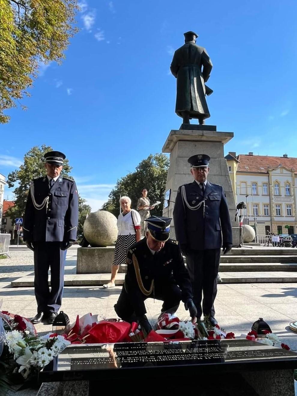 Podczas uroczystości, która miała miejsce w pobliżu Pomnika Żołnierza Polskiego, funkcjonariusze złożyli wiązankę kwiatów przy odsłoniętej dziś i poświęconej tablicy upamiętniającej Ofiary Rzezi Wołyńskiej.