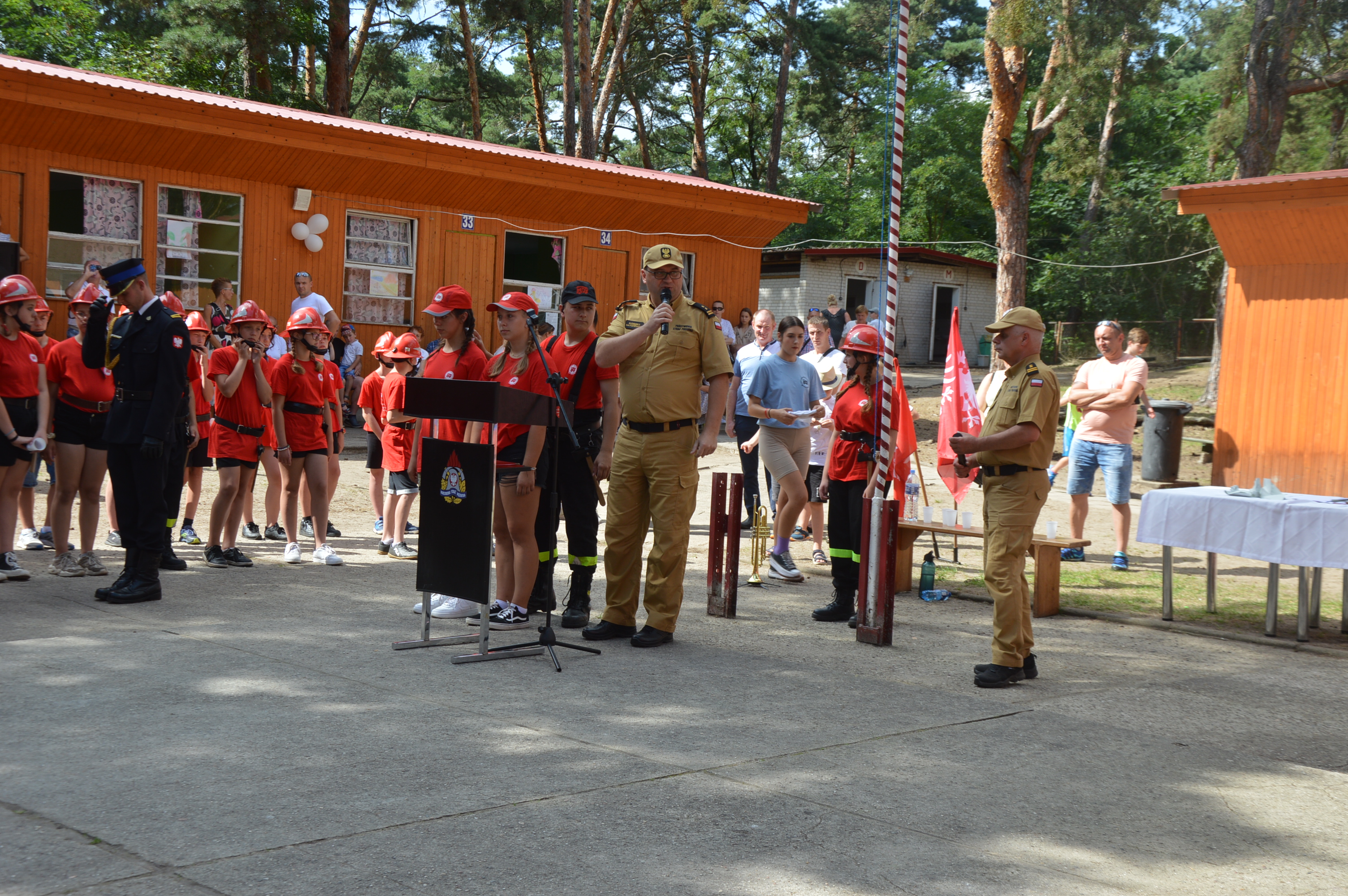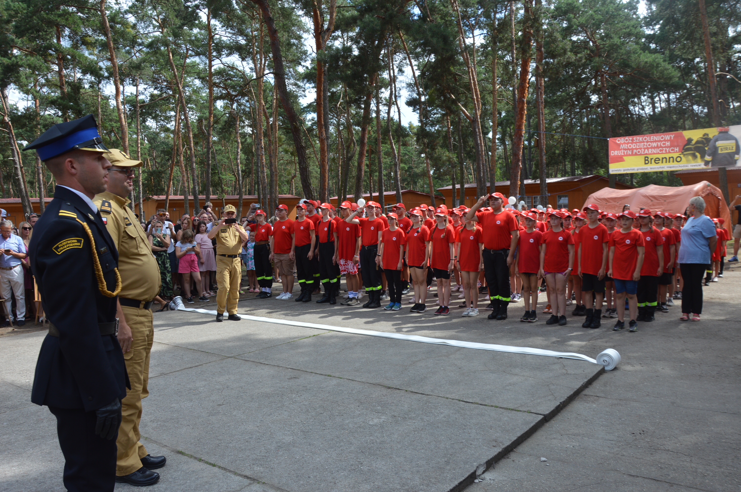 Uroczysty apel rozpoczął się od złożenia meldunku przedstawicielowi Wielkopolskiego Komendanta Wojewódzkiego PSP bryg. Robertowi Natunewiczowi przez komendanta obozu sekc. Arkadiusza Skrzypczaka.