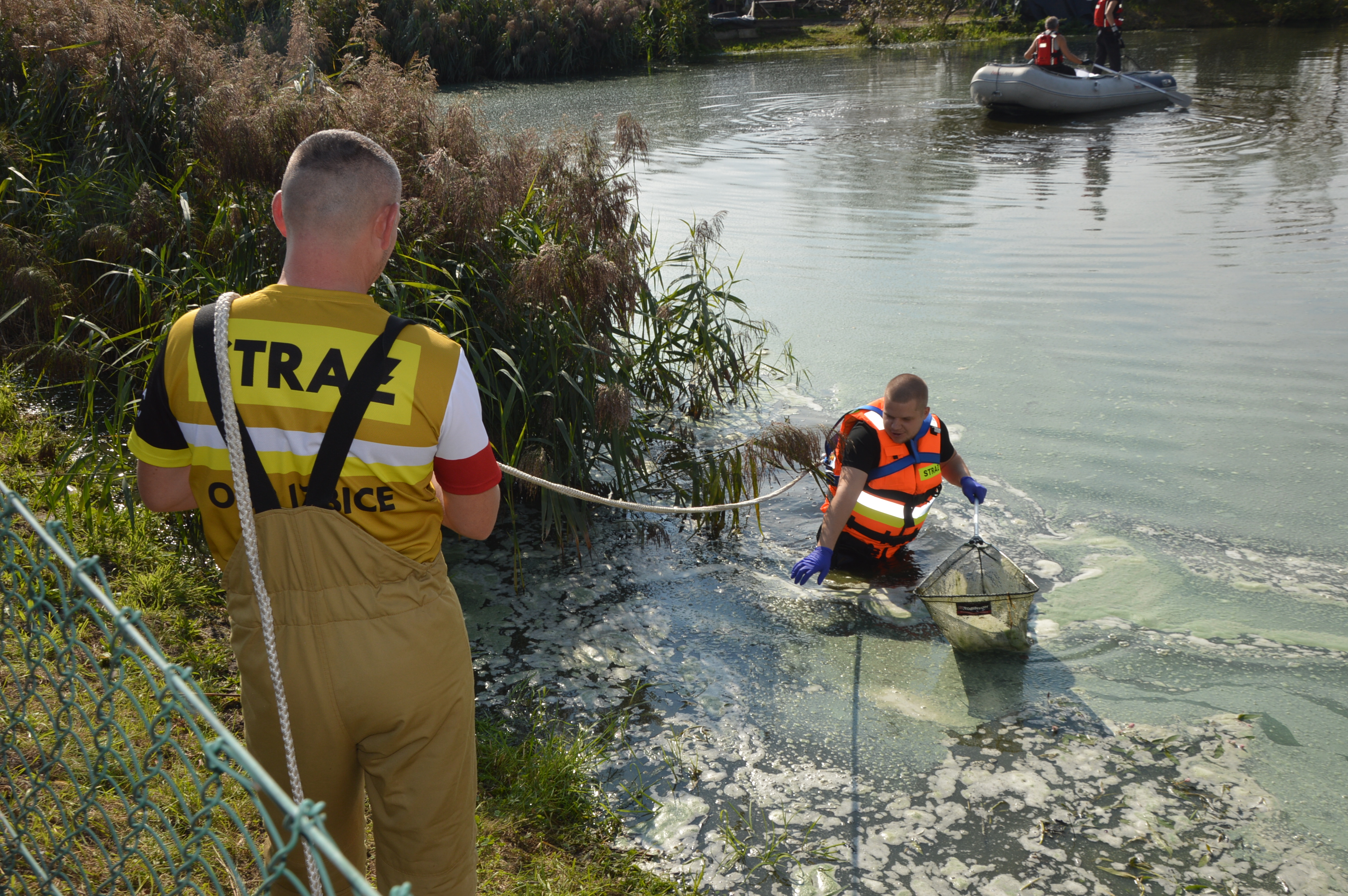 Następnego dnia przed południem na miejscu zdarzenia pojawili się strażacy, przedstawiciel Urzędu Miejskiego Gminy Rawicz oraz pracownicy Wojewódzkiego Inspektoratu Ochrony Środowiska, którzy pobrali do badań próbki wody. Już na miejscu ustalili, że w litrze wody zawarte jest tylko 2,6 % tlenu.
