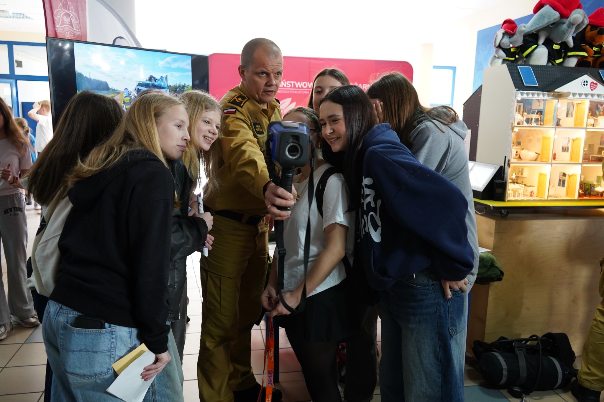Na stoisku zaprezentowany został mobilny symulator zagrożeń pożarowych – budynek mieszkalny wraz z modułem jezioro-las, a także przygotowano punkt do nauki pierwszej pomocy. Wszystkim zainteresowanym objaśniano zasady naboru do służby przygotowawczej w komendach Państwowej Straży Pożarnej oraz rekrutacji do szkół pożarniczych. Korzystając z okazji strażacy zachęcali do instalowania w mieszkaniach czujników tlenku węgla i dymu. Chętni mogli z bliska obejrzeć sprzęt i urządzenia ratownicze, a nawet przymierzyć strażacki ekwipunek.