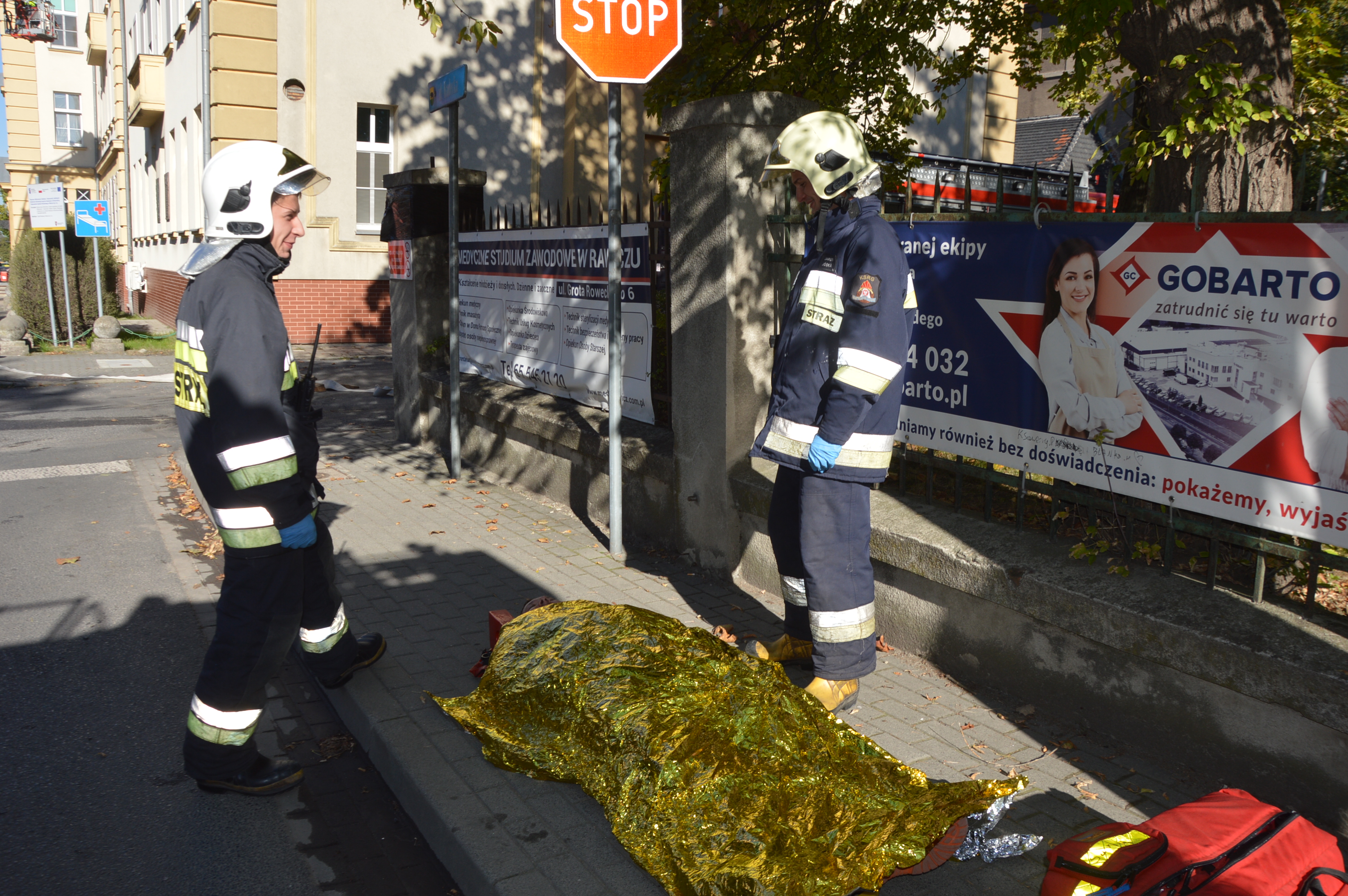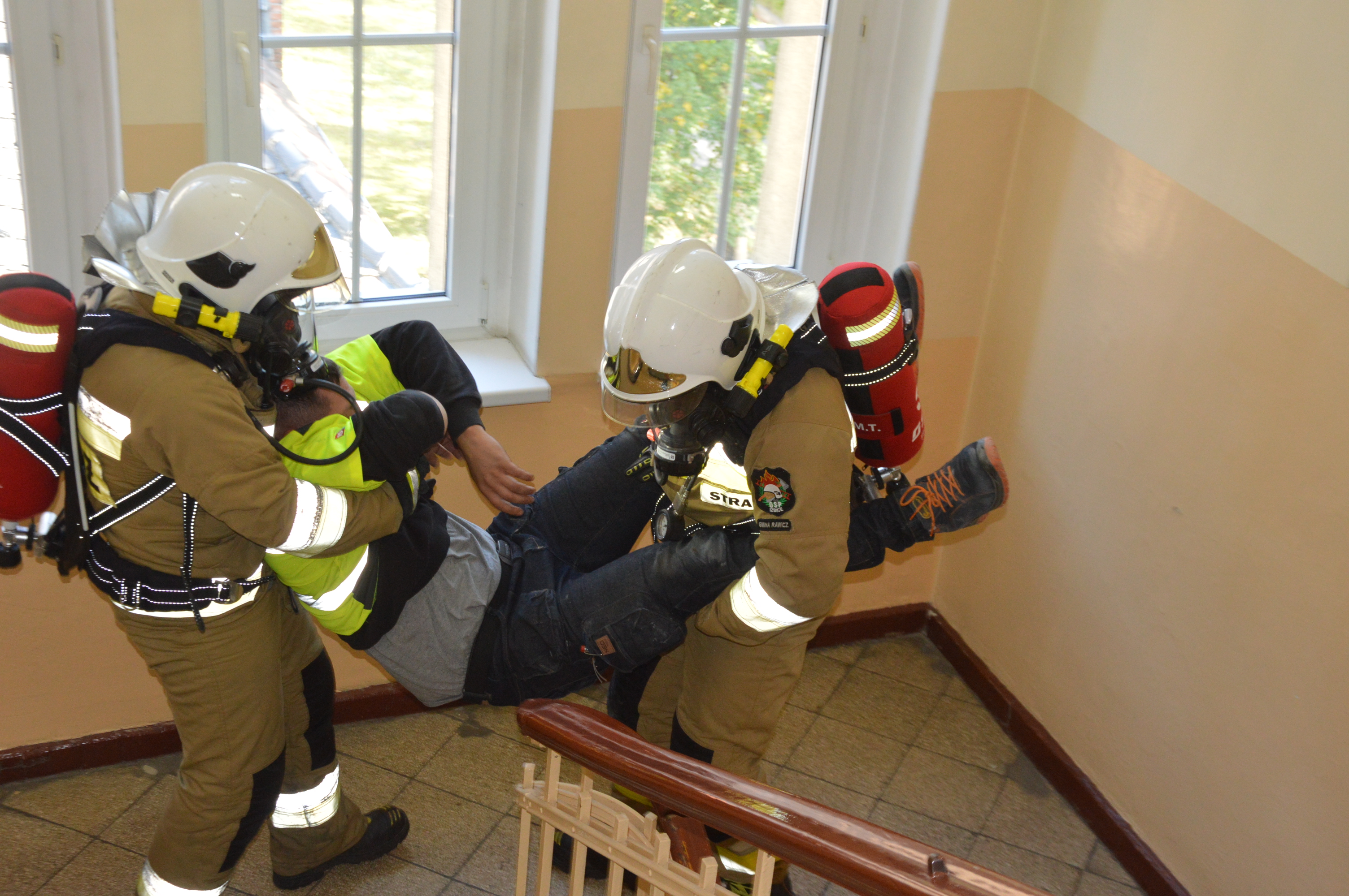 Podczas ćwiczeń użyto m.in. specjalnego samochodu z podnośnikiem hydraulicznym, przy pomocy którego z okna na drugim piętrze podjęto jednego z poszkodowanych mężczyzn.