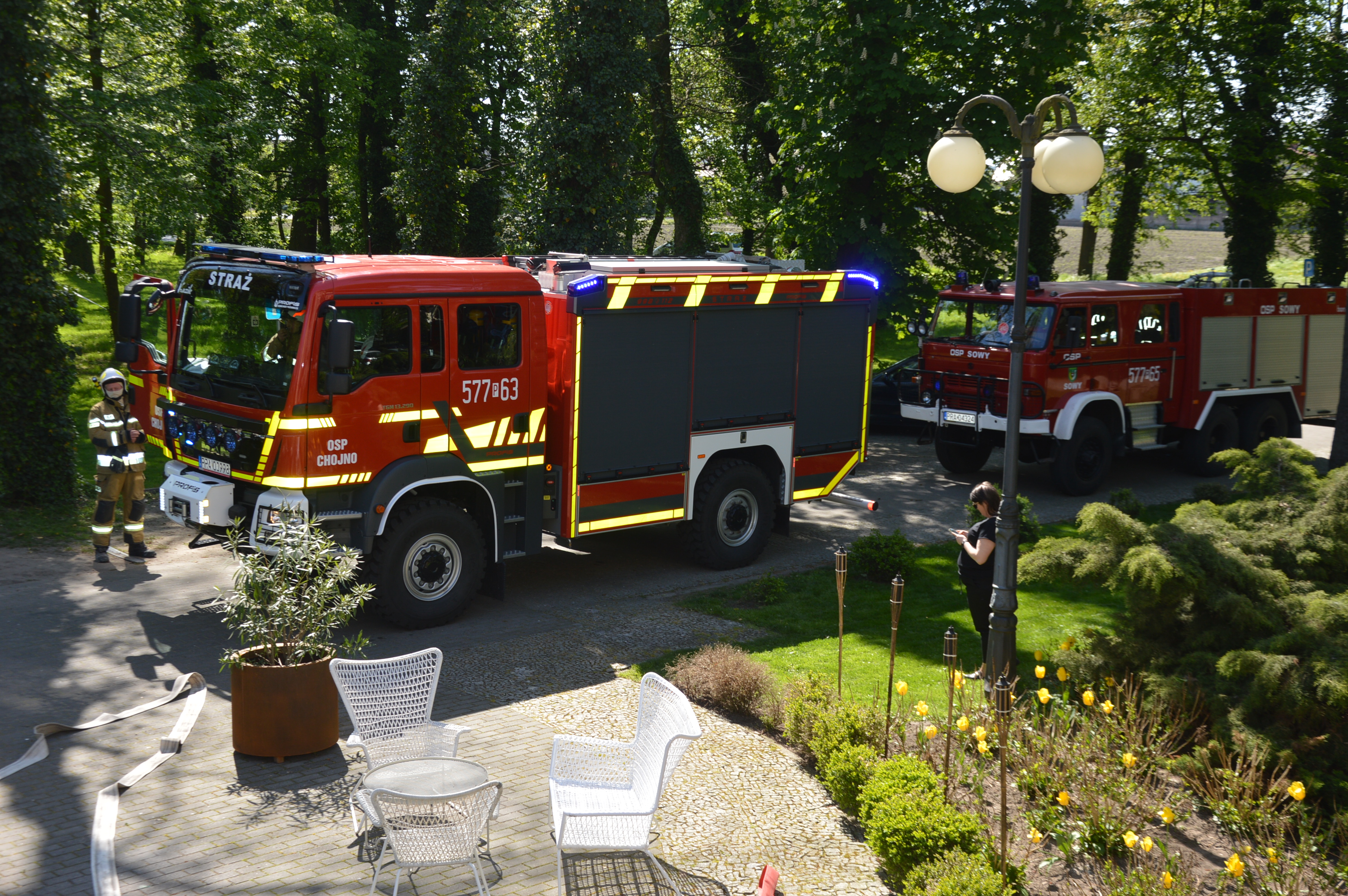 W ćwiczeniach, które odbyły się w piątek 12 maja 2023 r. w pakosławskim pałacu uczestniczyli strażacy z Komendy Powiatowej Państwowej Straży Pożarnej w Rawiczu oraz strażacy - ochotnicy z Chojna, Pakosławia, Sów i Śląskowa.