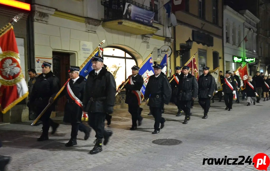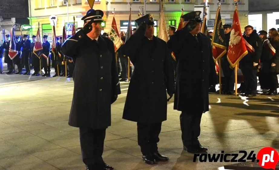 Po okolicznościowe zbiórce przed budynkiem Komendy Powiatowej PSP w Rawiczu, poczty sztandarowe i delegacje strażaków przemaszerowały do kościoła farnego, aby uczestniczyć we mszy św. w intencji Ojczyzny. Po niej nastąpiło złożenie wiązanek kwiatów przed pomnikiem św. Jana Pawła II, znajdującym się na rawickich plantach.