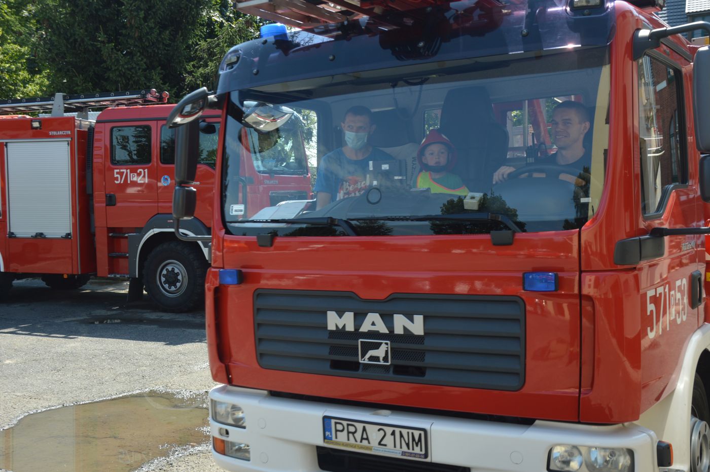 W minionym tygodniu gościliśmy pierwszego ze zwycięzców „Licytacji dla Gośki”, Pana Krzysztofa Brojera z Leszna. Do komendy przyjechał z 3-letnim synkiem Bogumiłem, żywo zainteresowanym strażackim fachem.