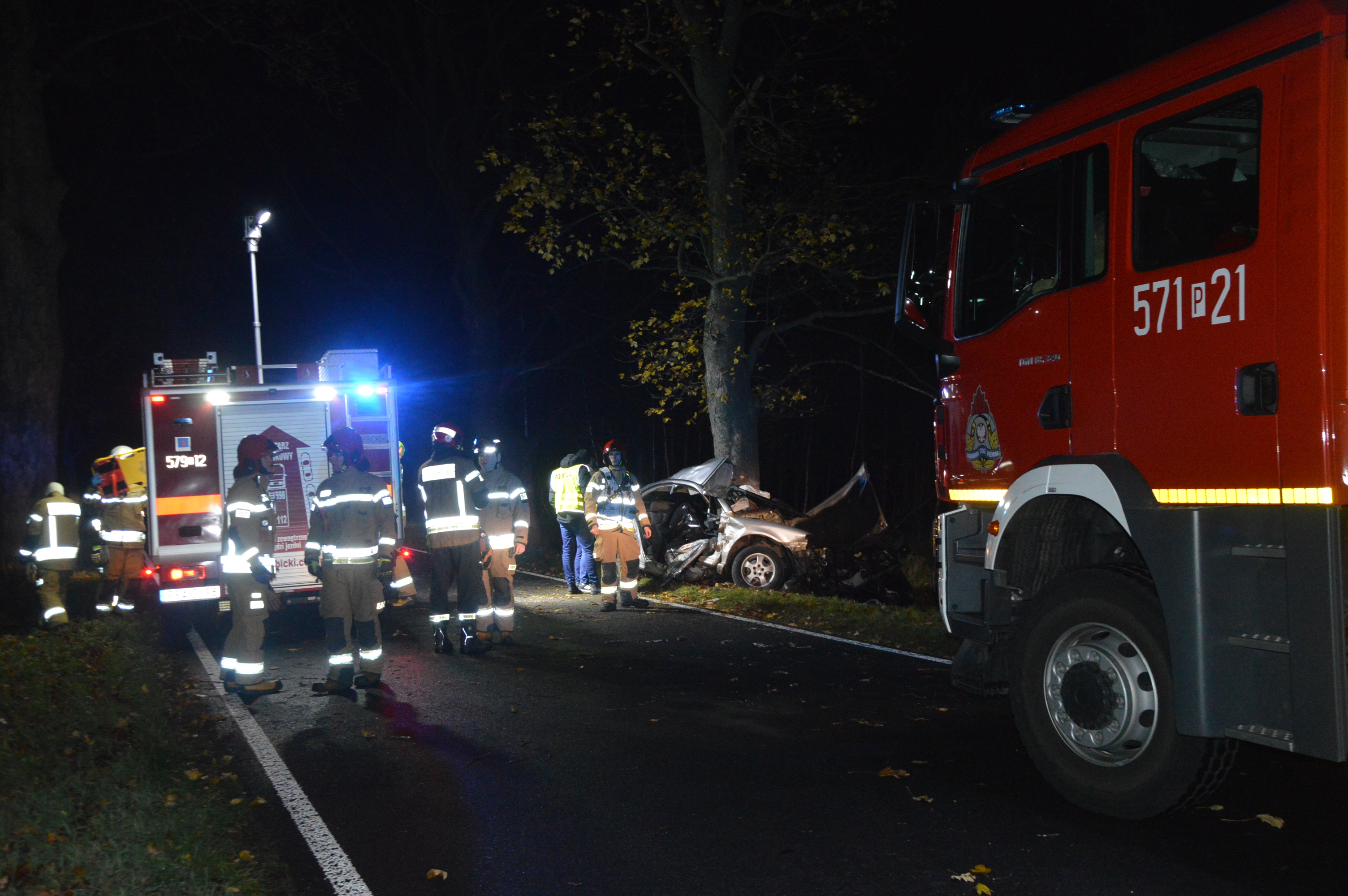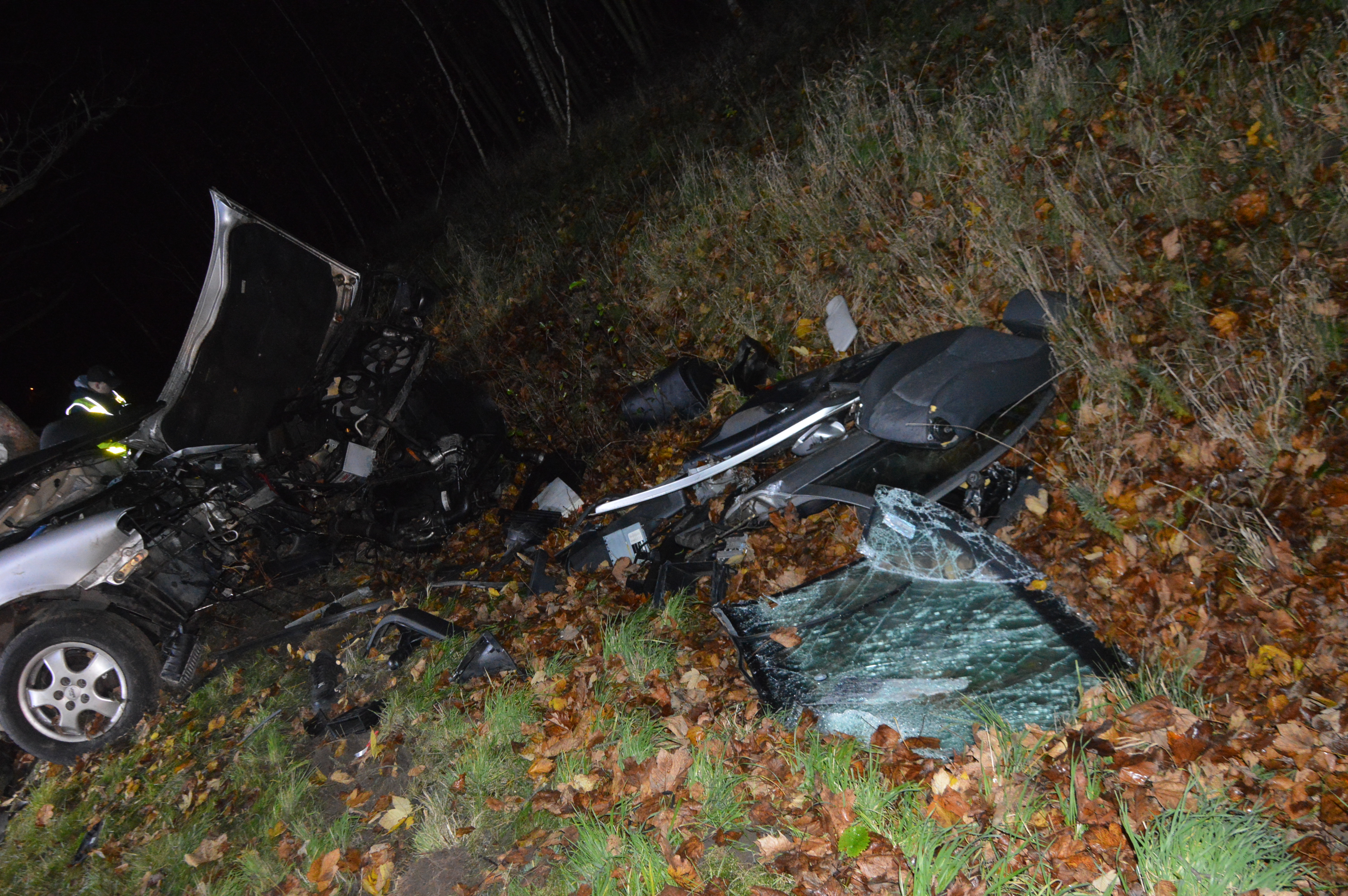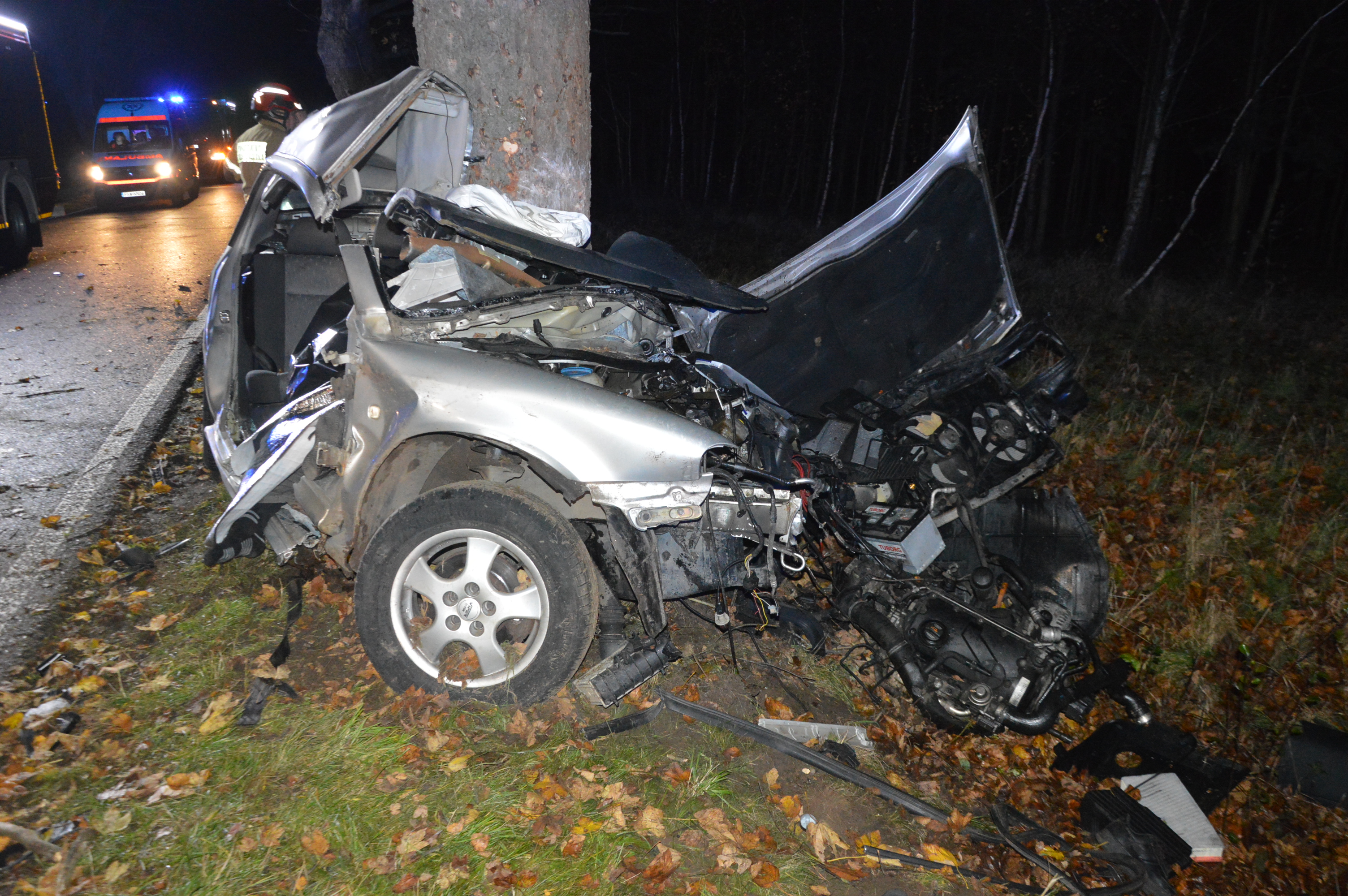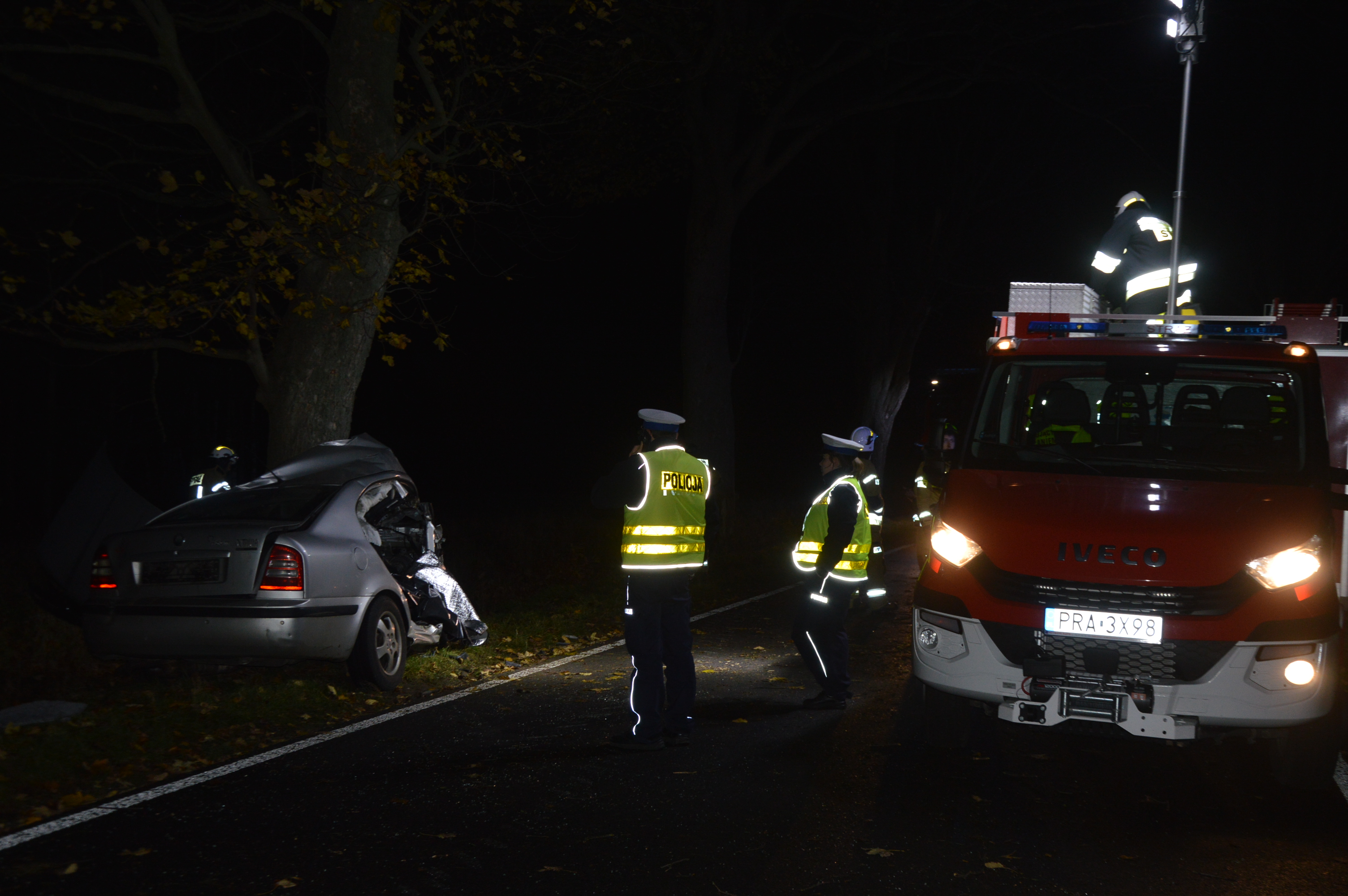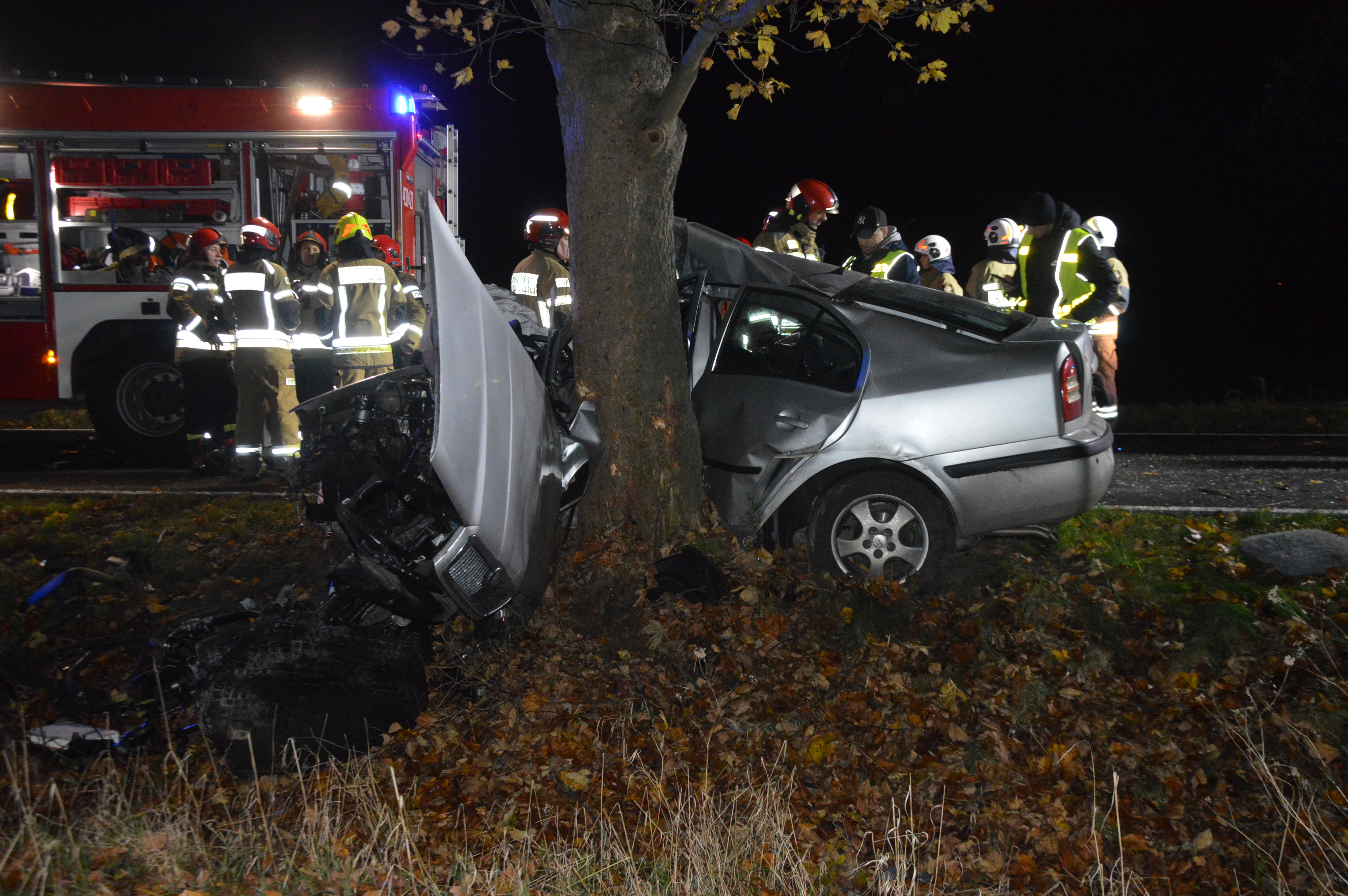 Po przybyciu na miejsce wypadku pierwszych zastępów ratowniczych okazało się, że skodą jechało dwóch młodych mężczyzn. Pasażer znajduje się poza pojazdem, pod opieką przejeżdżających tamtędy przypadkowych osób, a wewnątrz pokiereszowanego samochodu pozostaje niedający oznak życia kierowca.
