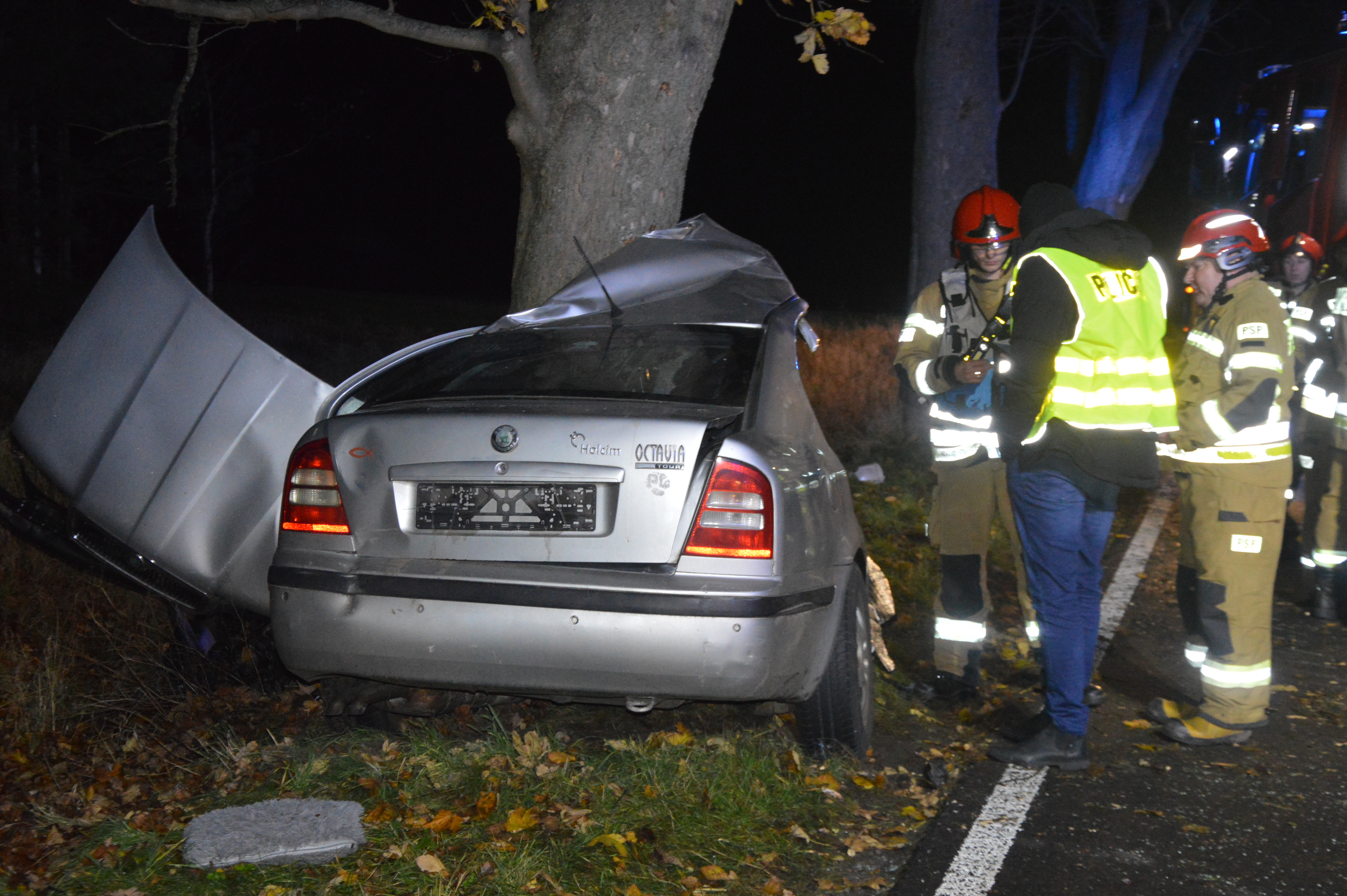 Skoda octavia, która przemieszczała się w kierunku Góry, „wypadła” z drogi i lewym bokiem uderzyła w rosnące na poboczu drzewo. Można powiedzieć, że auto „owinęło się” wokół pnia.