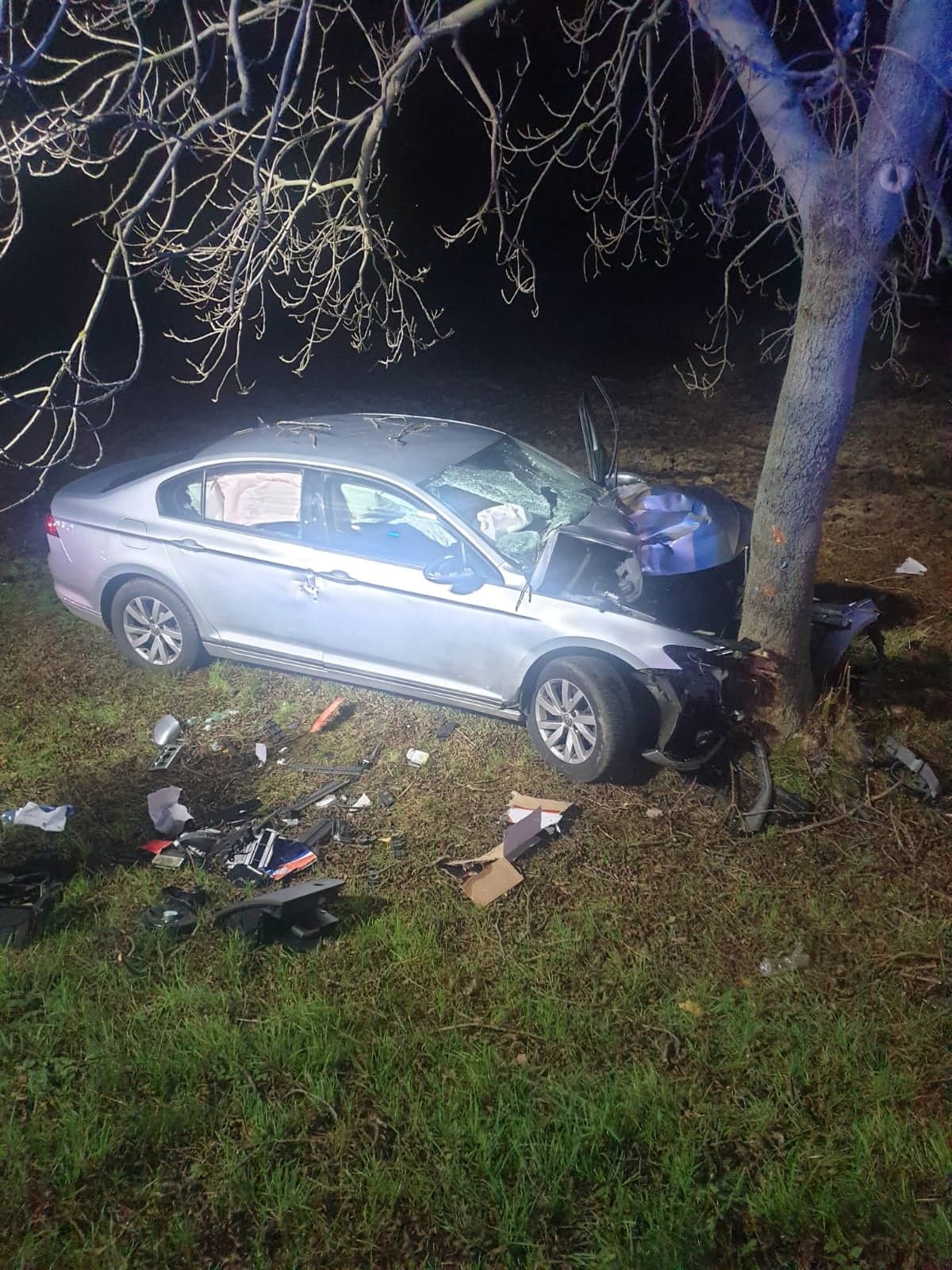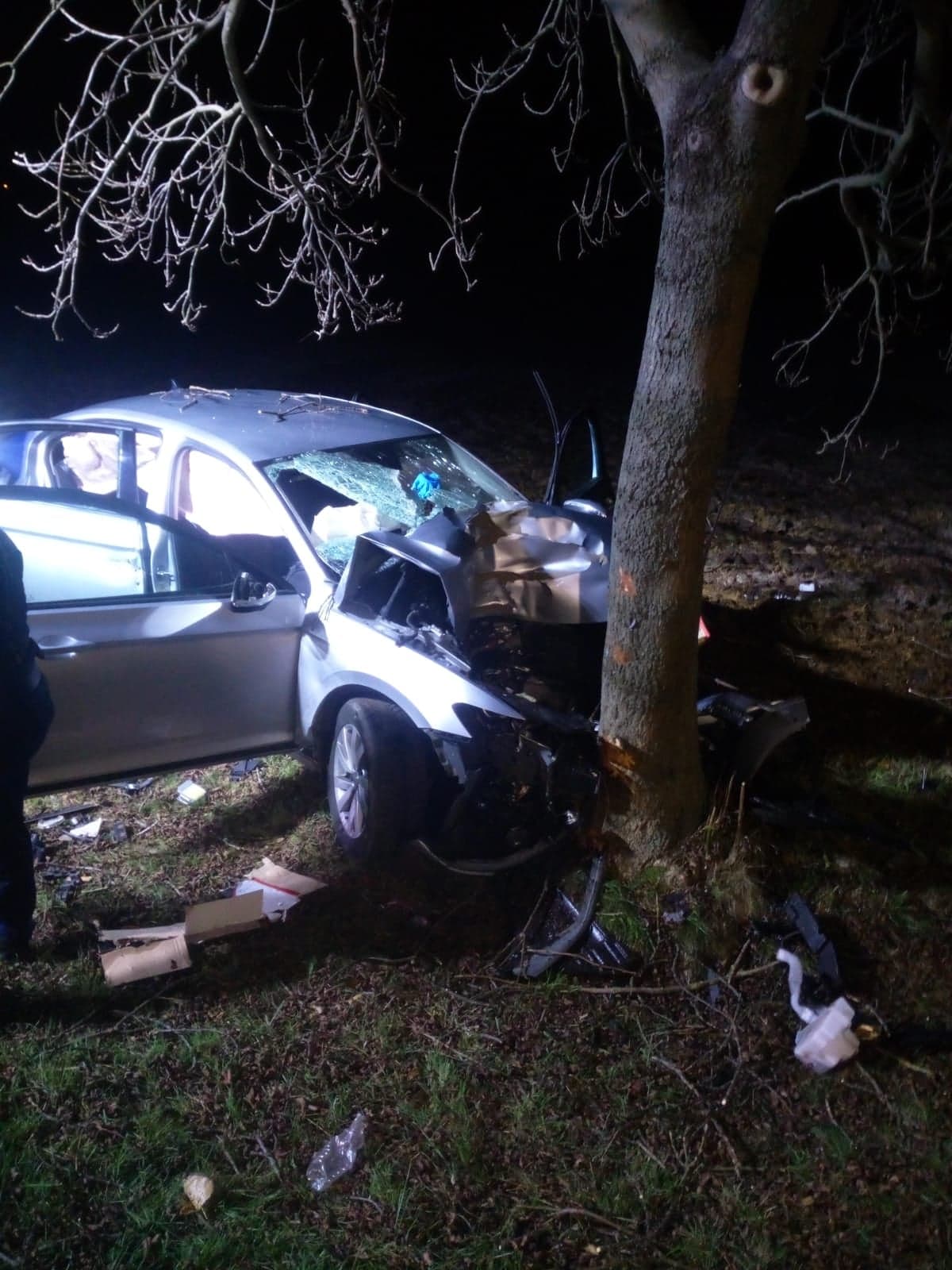 W wyniku uderzenia w przydrożne drzewo śmierć poniósł kierowca samochodu osobowego. Strażacy i ratownicy medyczni zastali go wewnątrz auta - bez oznak życia. O wypadku powiadomił eCall.