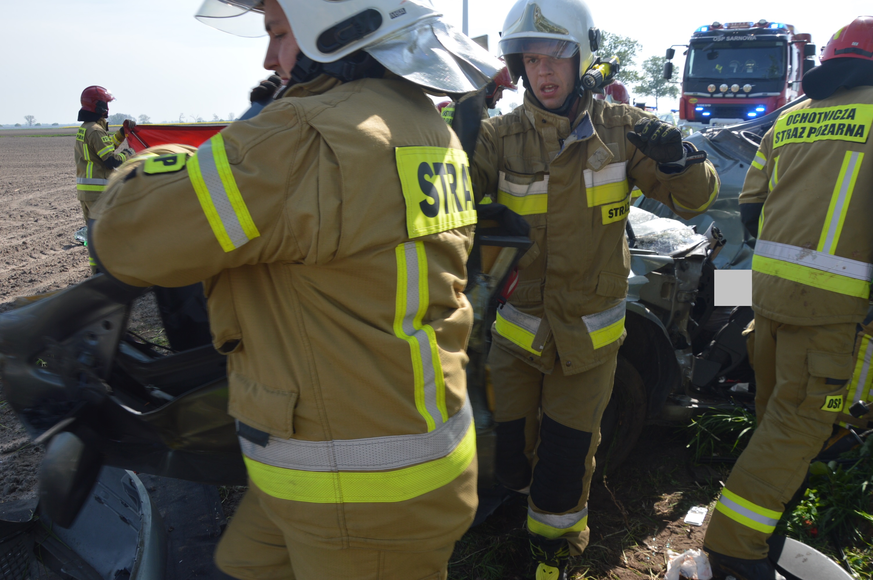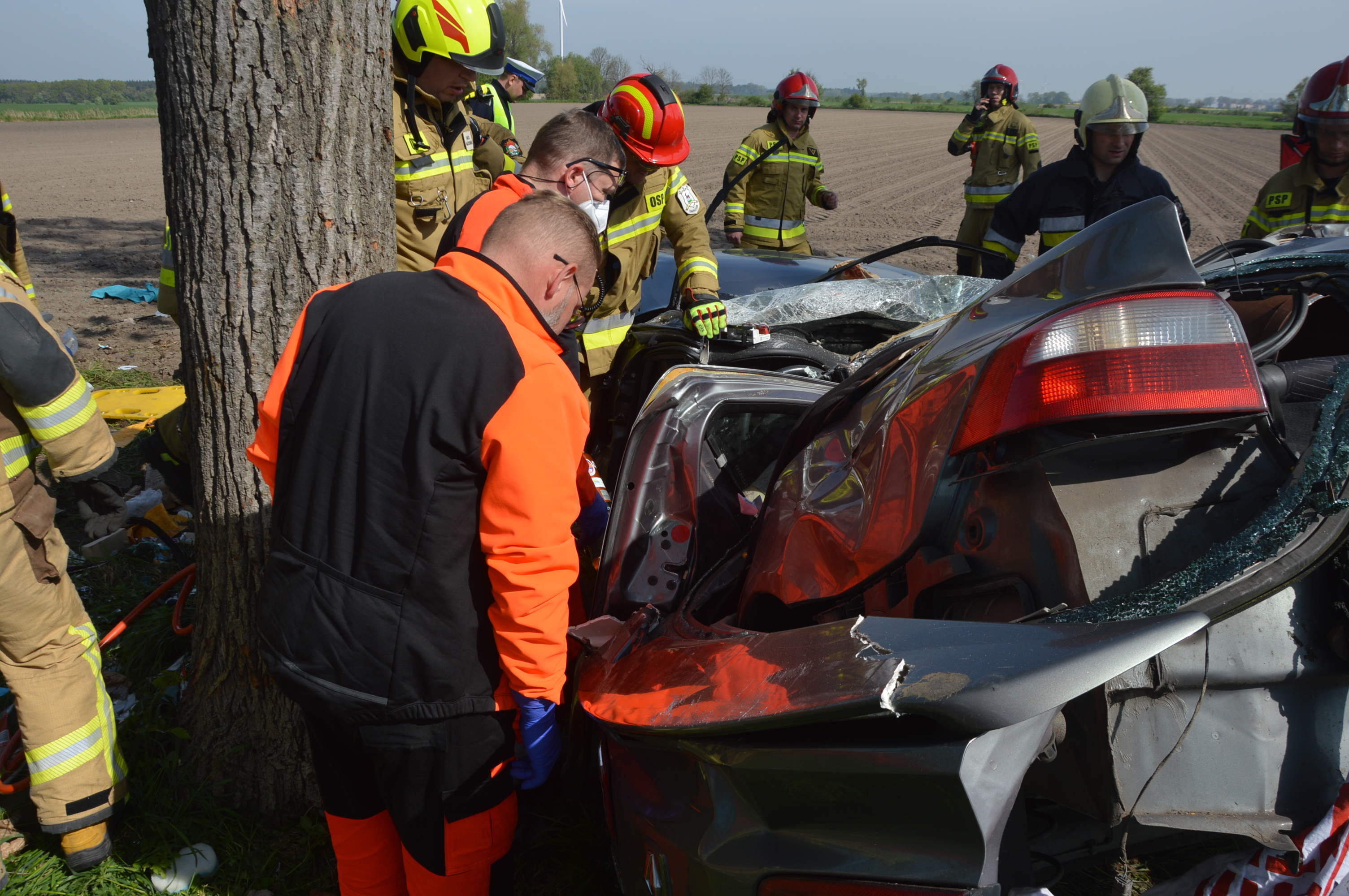 Po zabezpieczeniu miejsca zdarzenia, strażacy przy użyciu narzędzi hydraulicznych przystąpili do wykonania dostępu do 31-letniego mężczyzny pozostającego pośród pokiereszowanych elementów karoserii, u którego stwierdzili brak podstawowych funkcji życiowych.