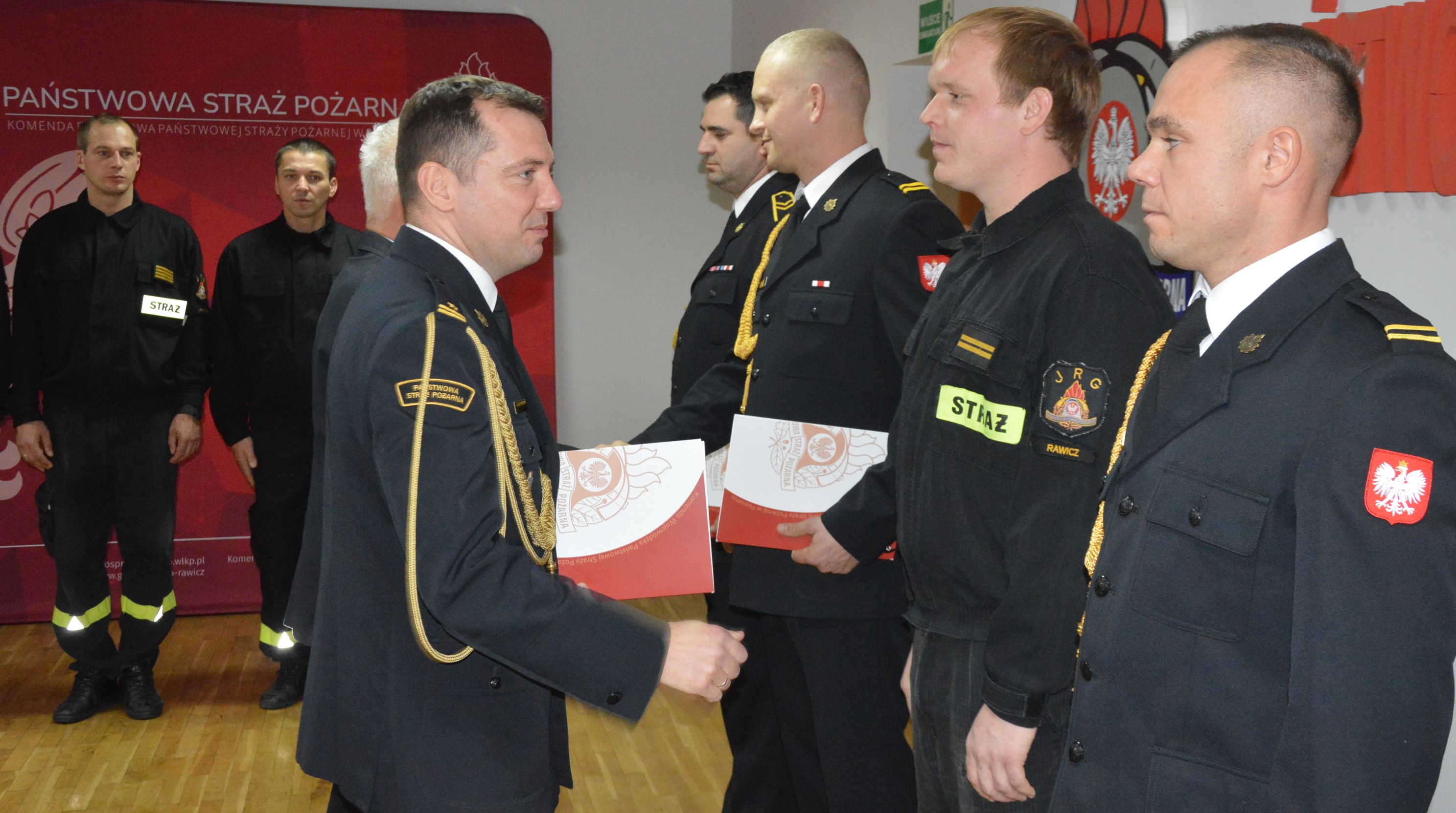 Ponadto Wielkopolski Komendant Wojewódzki PSP wyróżnił nagrodami pieniężnymi : mł. kpt. Romana Sidora (dowódca JRG) i mł.asp. Rafała Spychalskiego (st.inspektor sztab. w wydziale ds. operacyjno-szkoleniowych, informatyki łączności), a Komendant Powiatowy PSP w Rawiczu przyznał nagrodę jubileuszową za 35 lat pracy zawodowej Pani Żanecie Dzikowskiej, głównemu księgowemu komendy