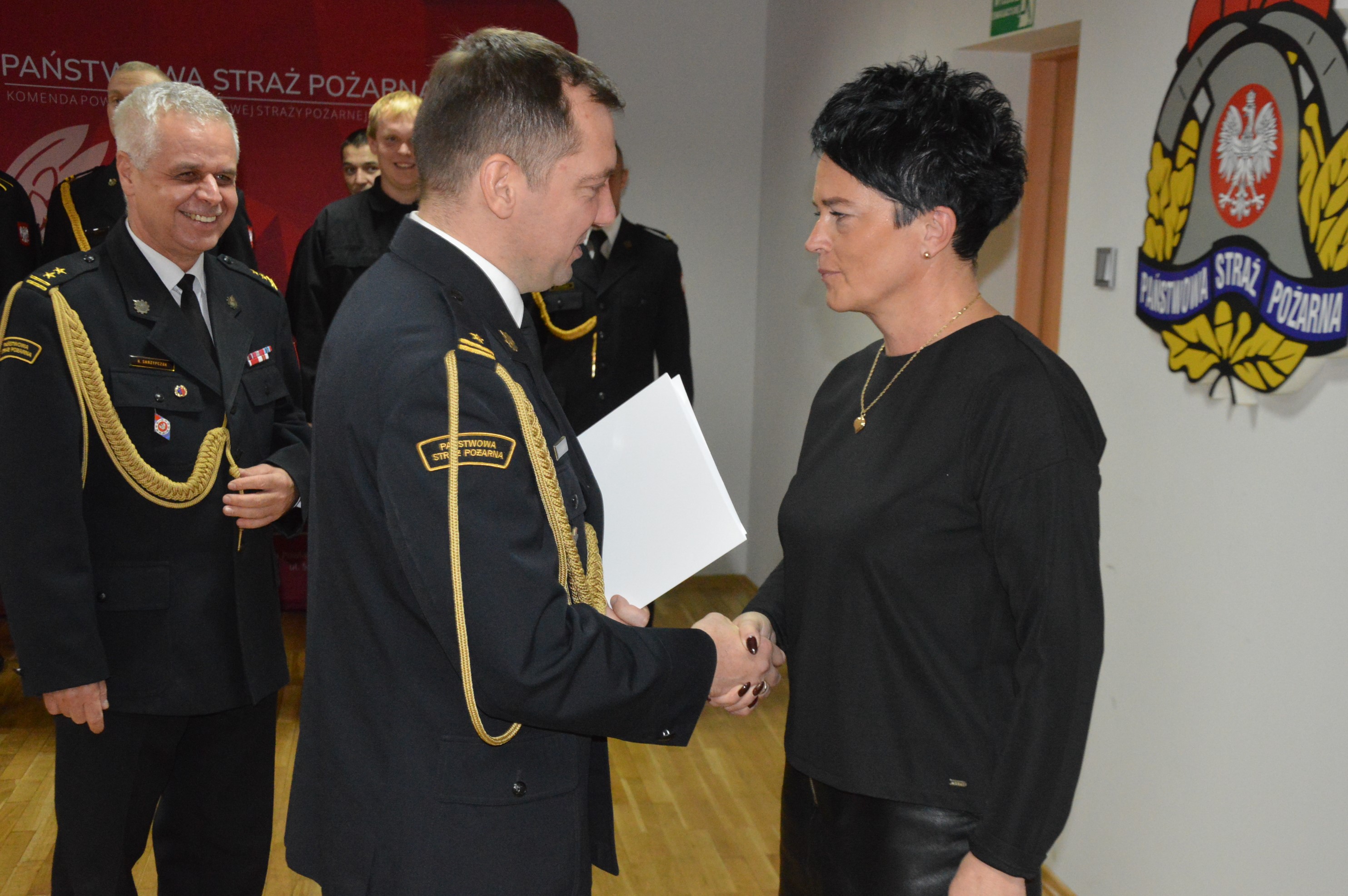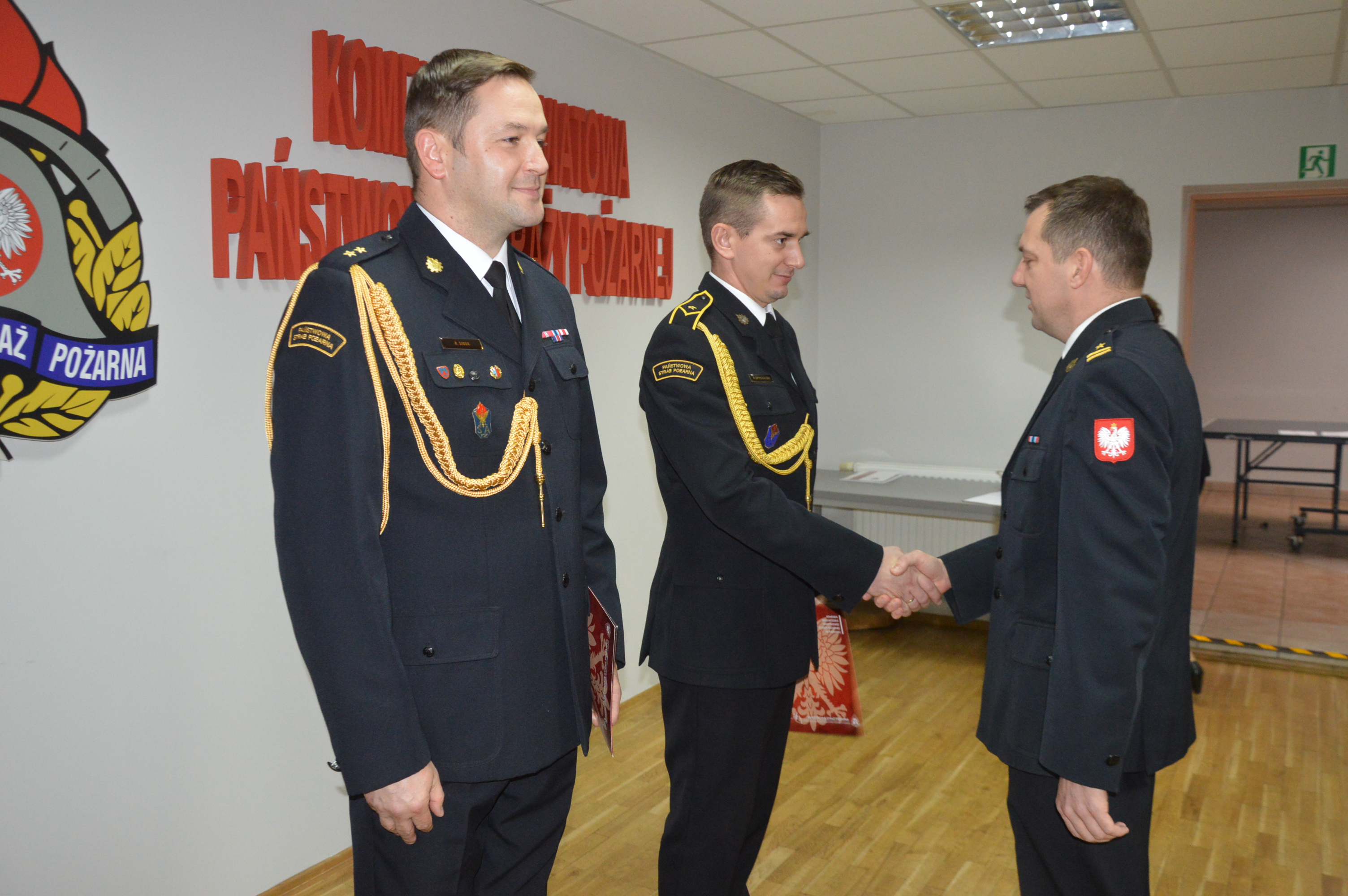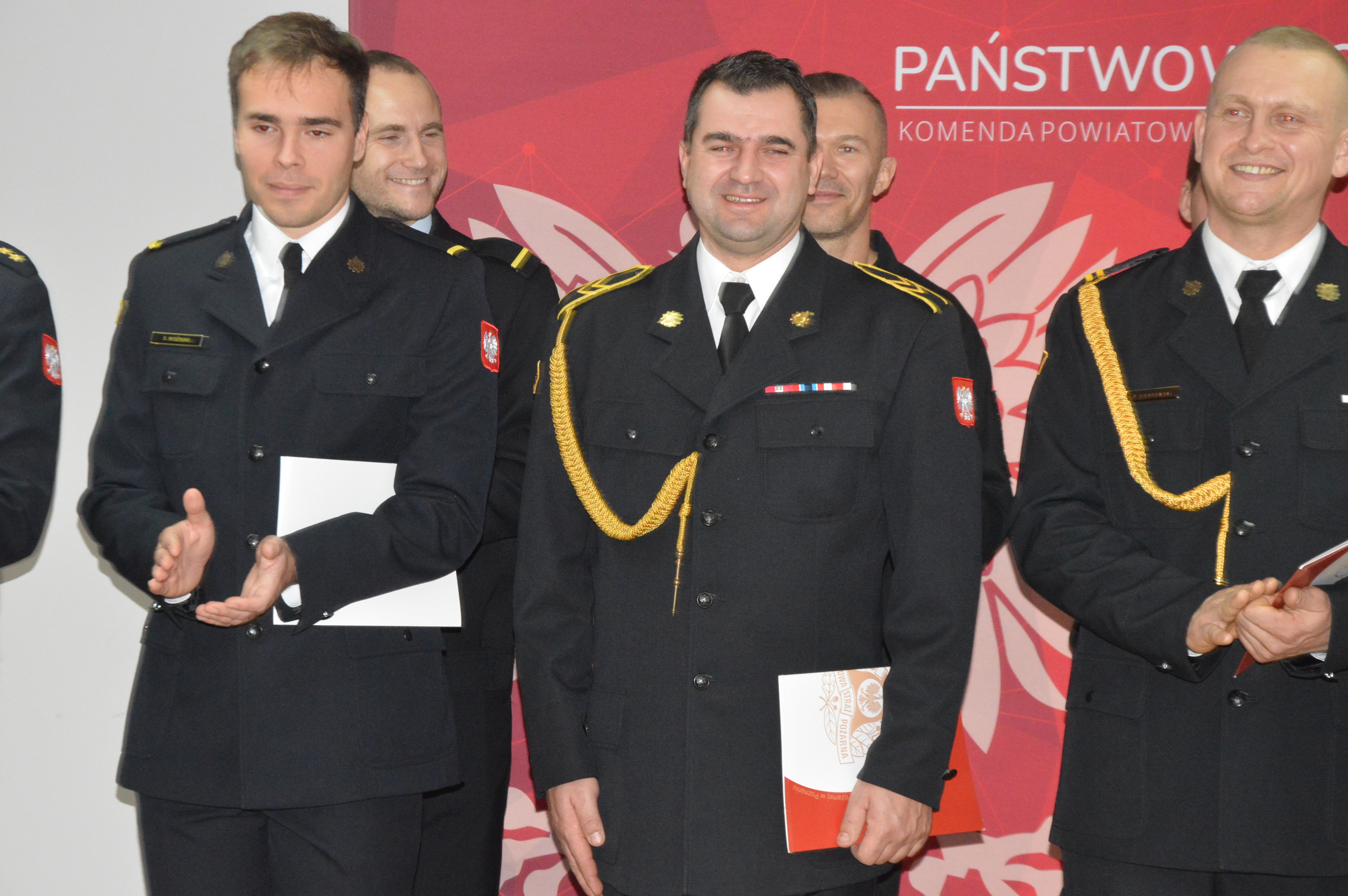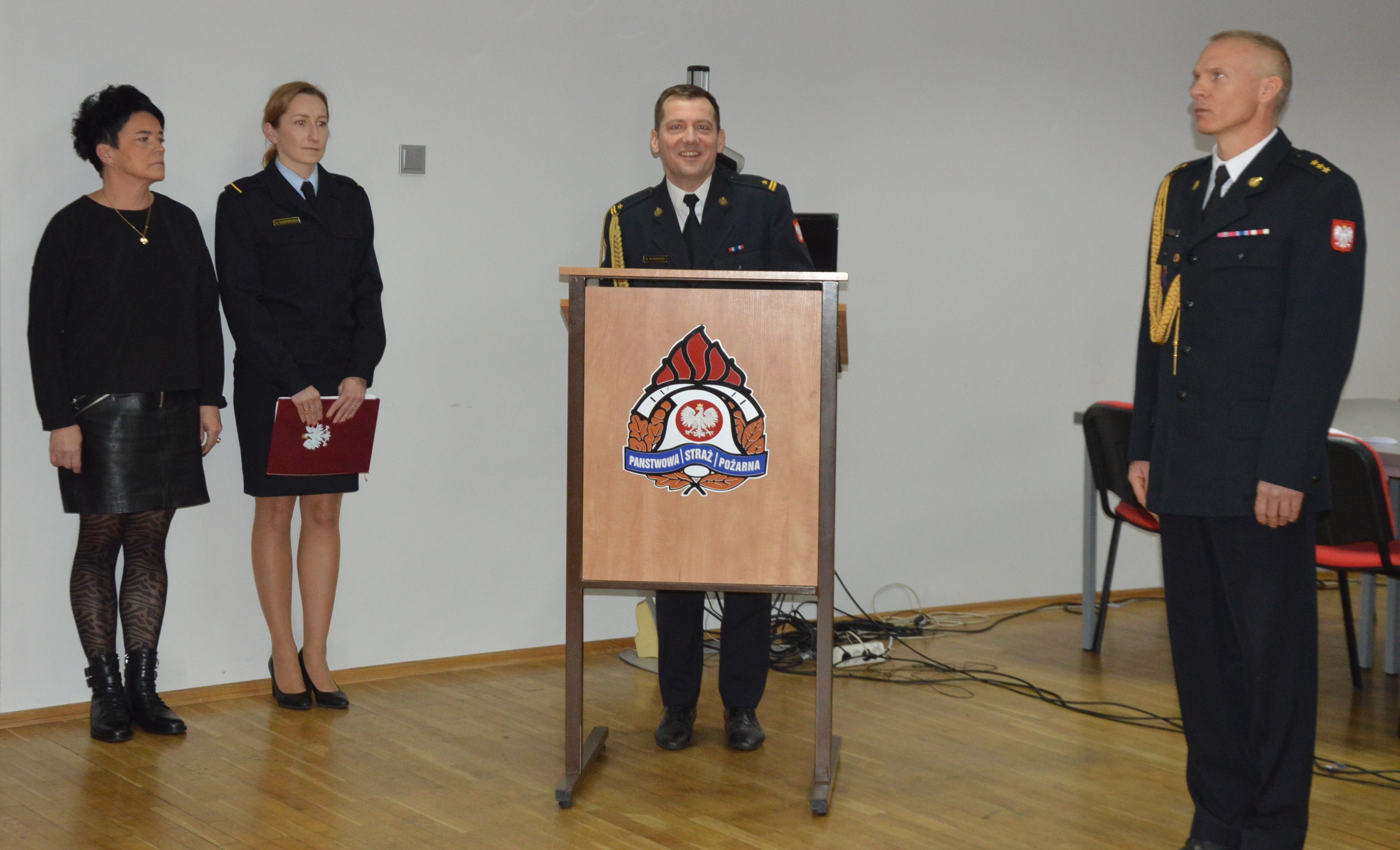 Po wygłoszeniu okolicznościowego wystąpienia, komendant powiatowy PSP w asyście zastępcy, bryg. Krzysztofa Skrzypczaka wręczył wyróżniającym się strażakom akty nominacyjne na wyższe stopnie służbowe oraz decyzje nagrodowe.
