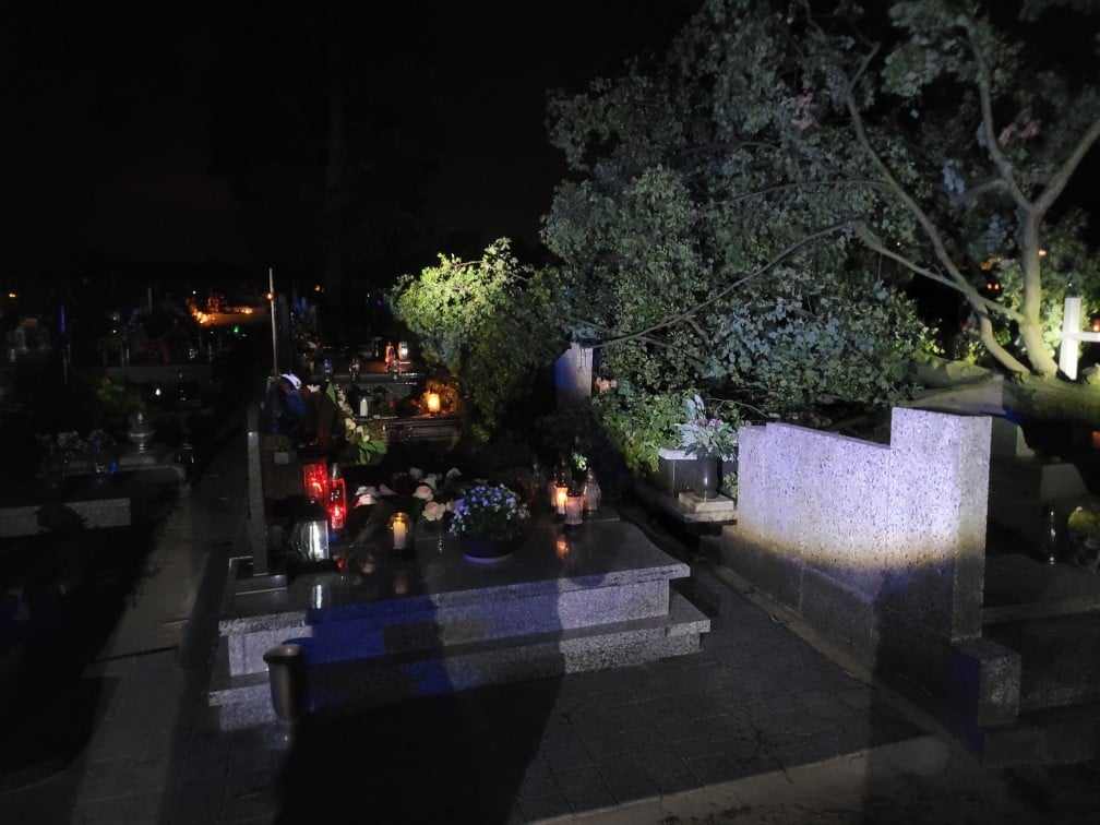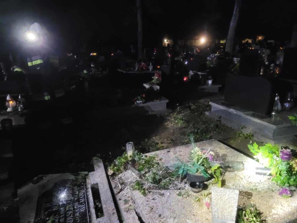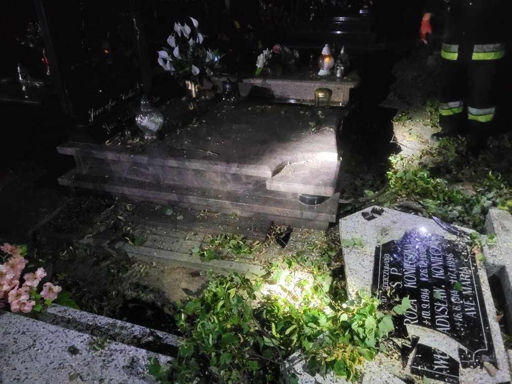 Półtorej godziny później zastęp z Ochotniczej Straży Pożarnej w Zielonej Wsi został wysłany na miejscowy cmentarz, gdzie wiatr powalił jedno z rosnących tam drzew. Drzewo upadając uszkodziło kilka nagrobków. Akcja trwała niespełna godzinę.