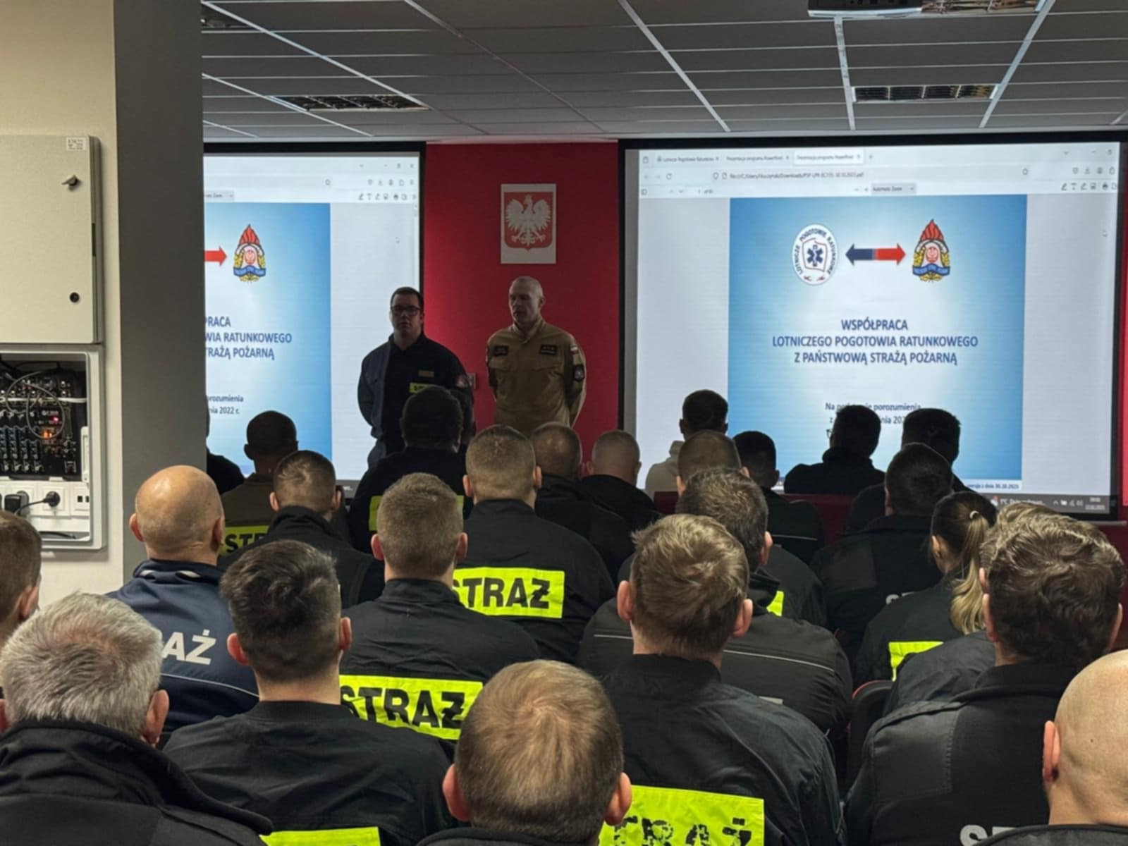 Liczna grupa strażaków ratowników z ochotniczych straży pożarnych uczestniczyła w szkoleniu specjalistycznym z zakresu współdziałania z Lotniczym Pogotowiem Ratunkowym.