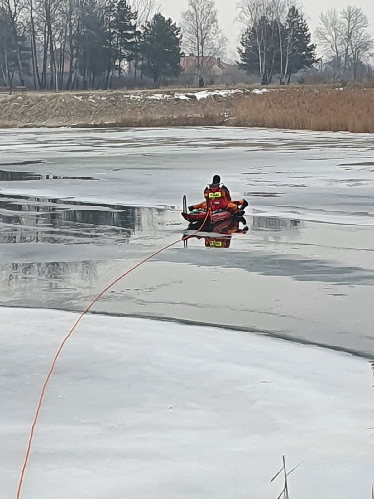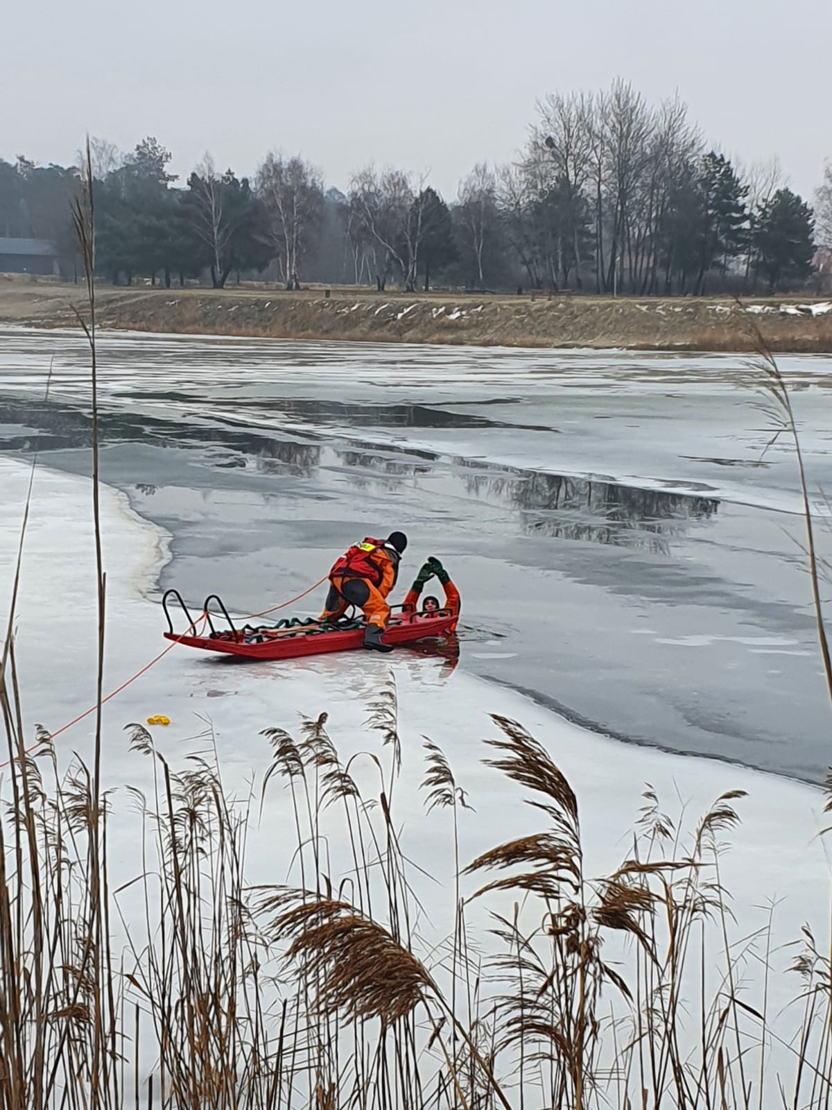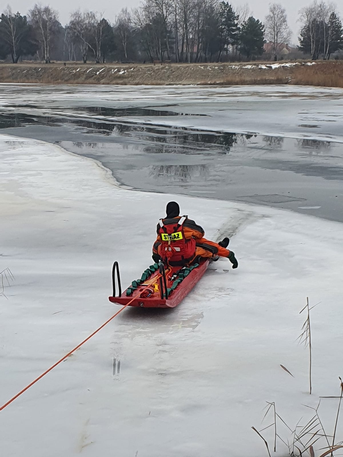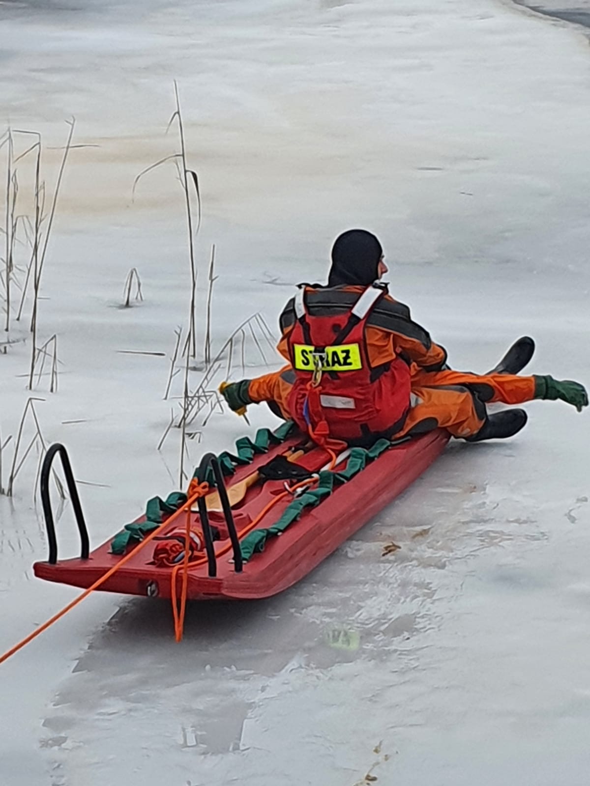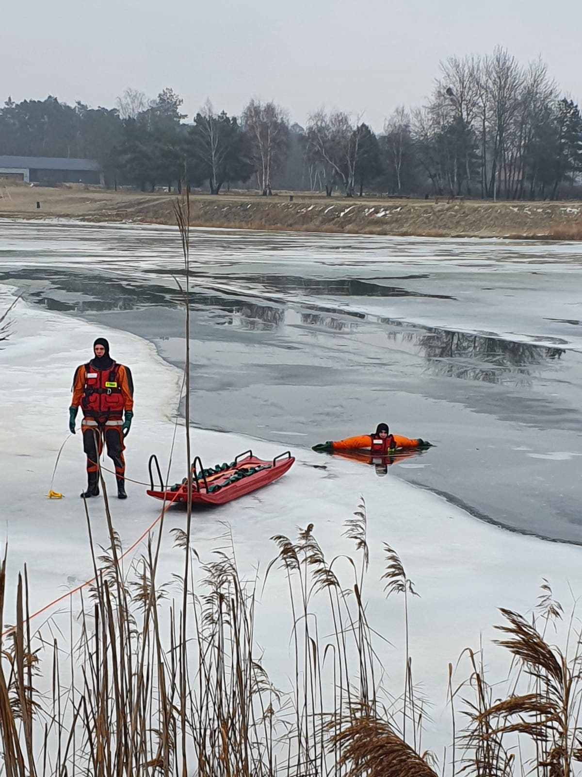 Strażacy z Komendy Powiatowej Państwowej Straży Pożarnej w Rawiczu korzystając z zimowej aury doskonalą umiejętności z zakresu ratownictwa wodno – lodowego.
