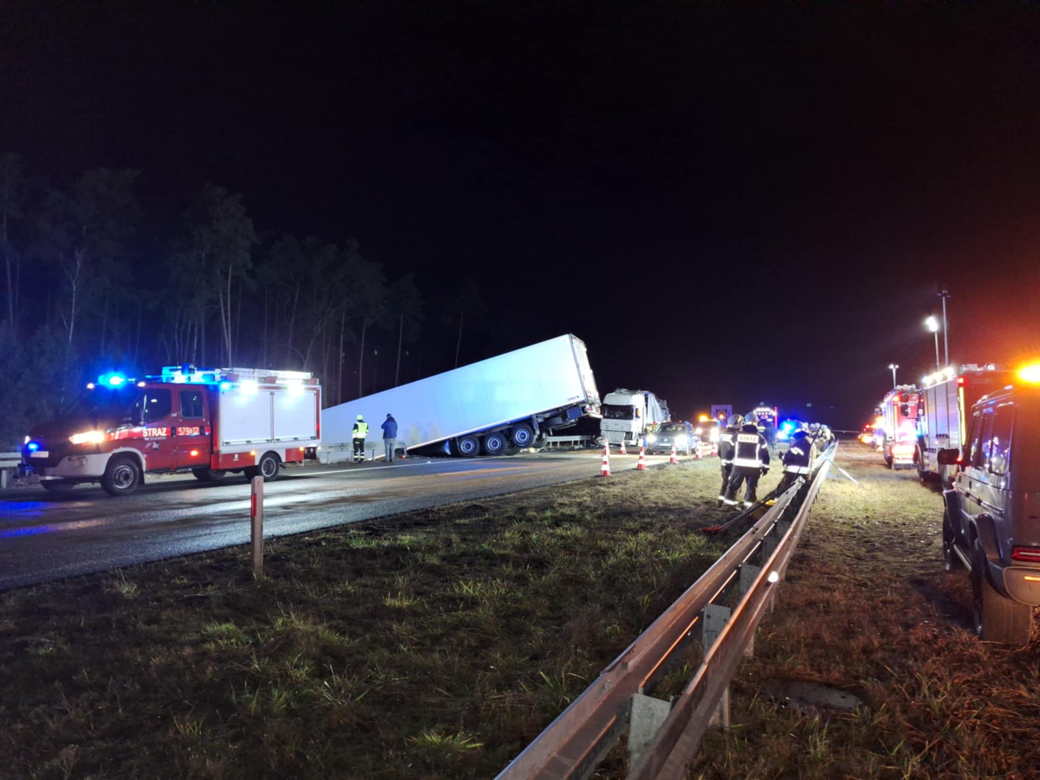 Do zdarzenia z udziałem dwóch ciągników siodłowych z naczepami doszło na drodze ekspresowej S5 pomiędzy Bojanowem i Rawiczem. Przez wiele godzin trwały utrudnienia w ruchu. Działania ratownicze prowadziło 22 strażaków.