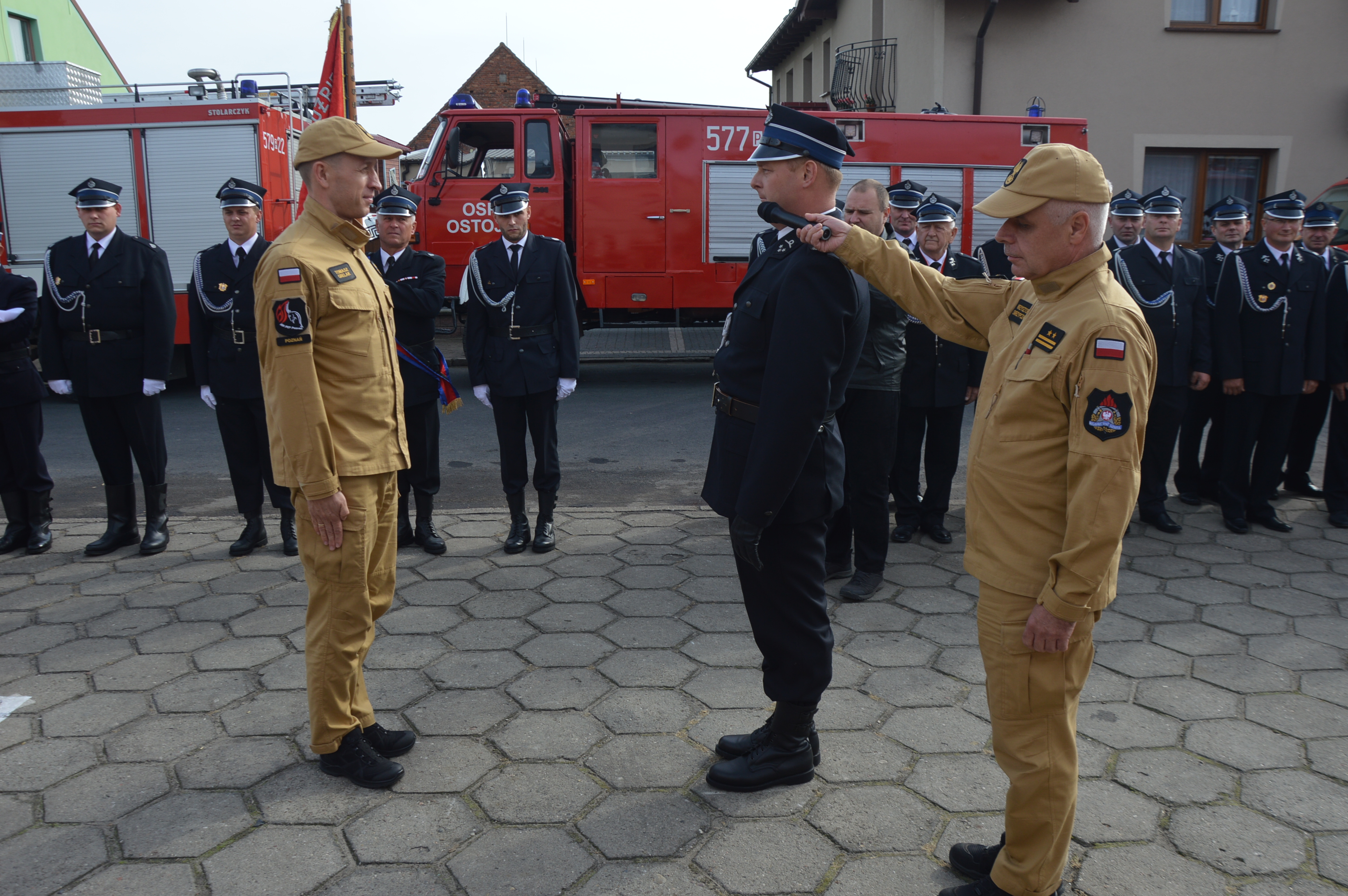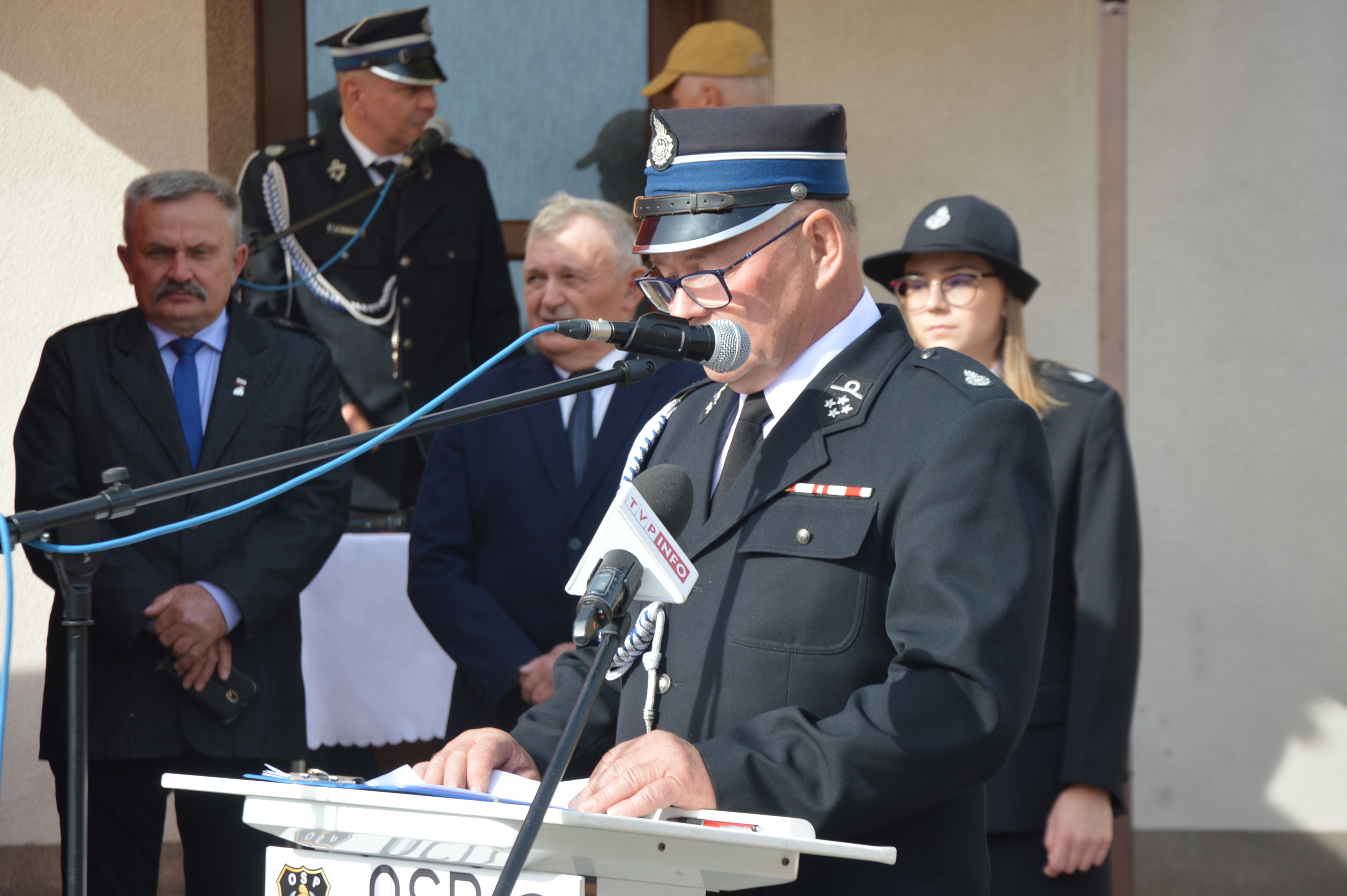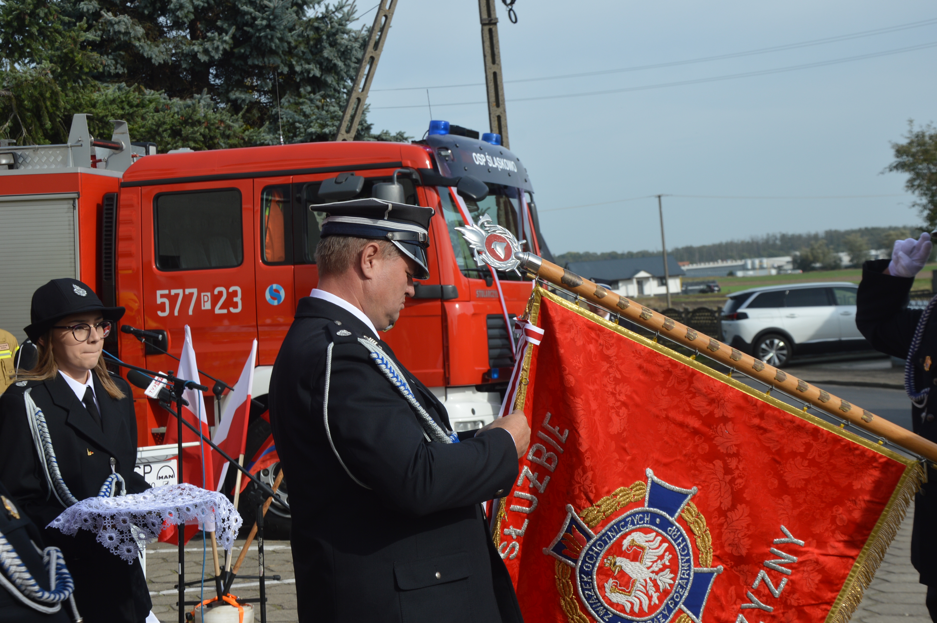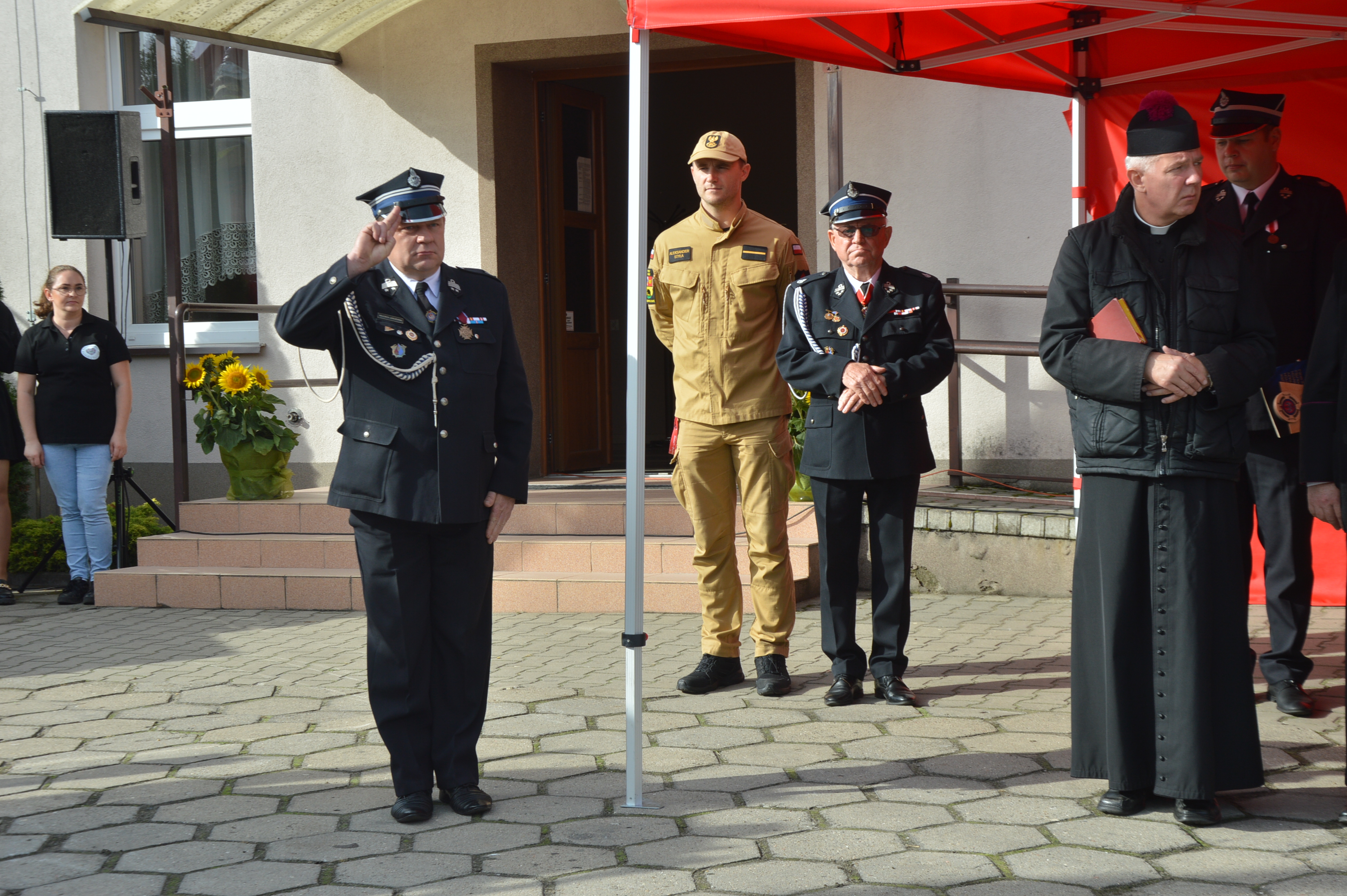 Następnie podniesiona została flaga na maszt, a po przywitaniu gości przez Prezesa OSP Śląskowo Andrzeja Bartkowiaka, zasłużeni członkowie jednostki zostali uhonorowani odznaczeniami nadanymi przez władze Związku Ochotniczych Straży Pożarnych RP.