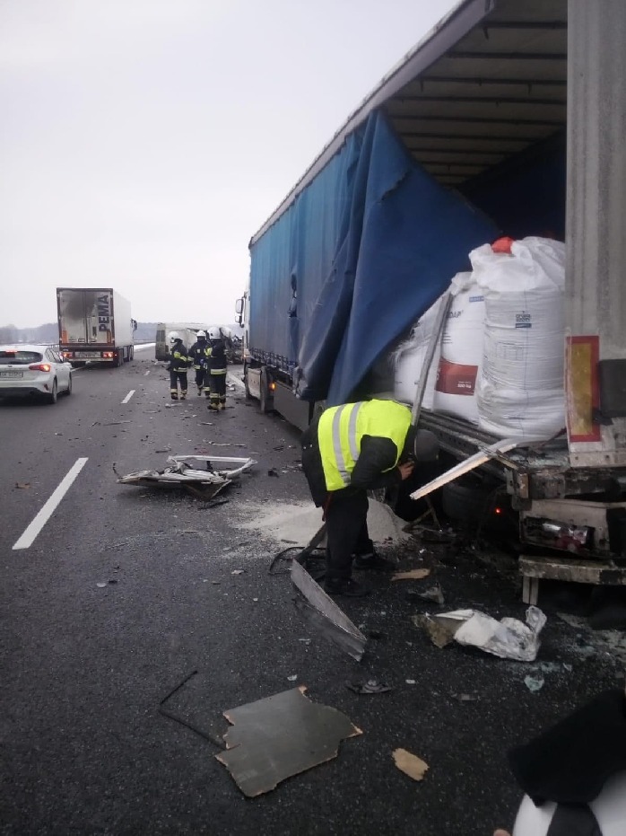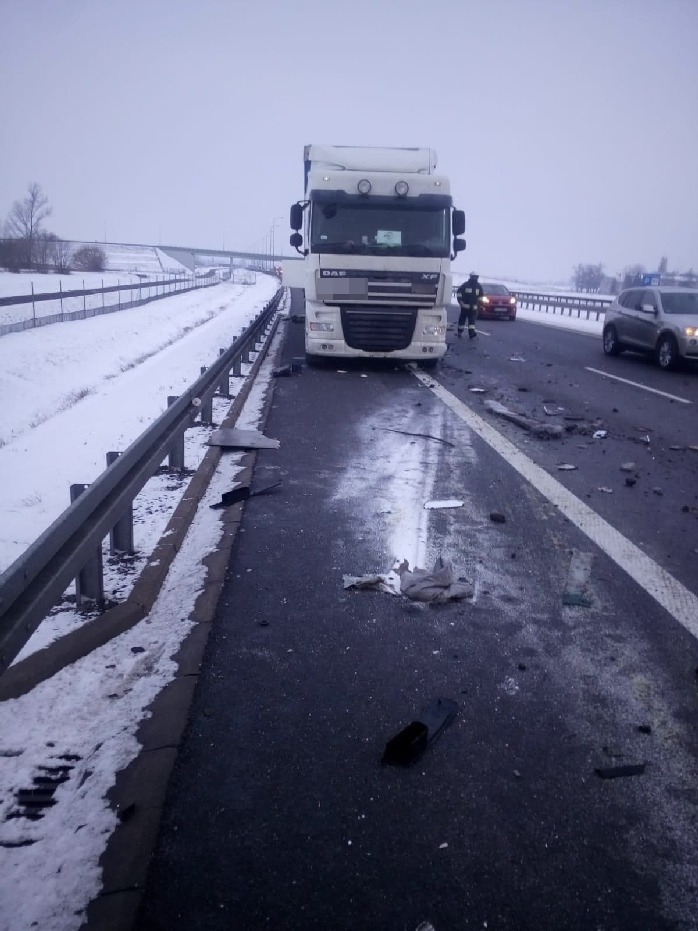 Dowodzący akcją ustalił, że w naczepę stojącego na pasie awaryjnym ciągnika siodłowego daf uderzył dostawczak poruszający się w kierunku Wrocławia. Pojazd miał tak poważne uszkodzenia, że trudno było ustalić jego markę. O dużym szczęściu może mówić kierujący nim mieszkaniec powiatu kościańskiego – poza doznanym szokiem nic innego mu się stało.