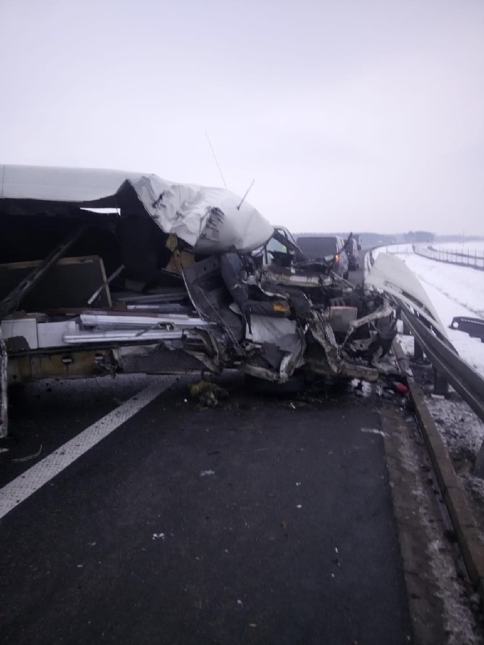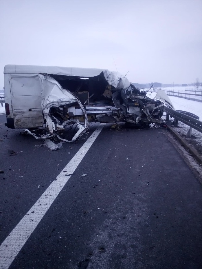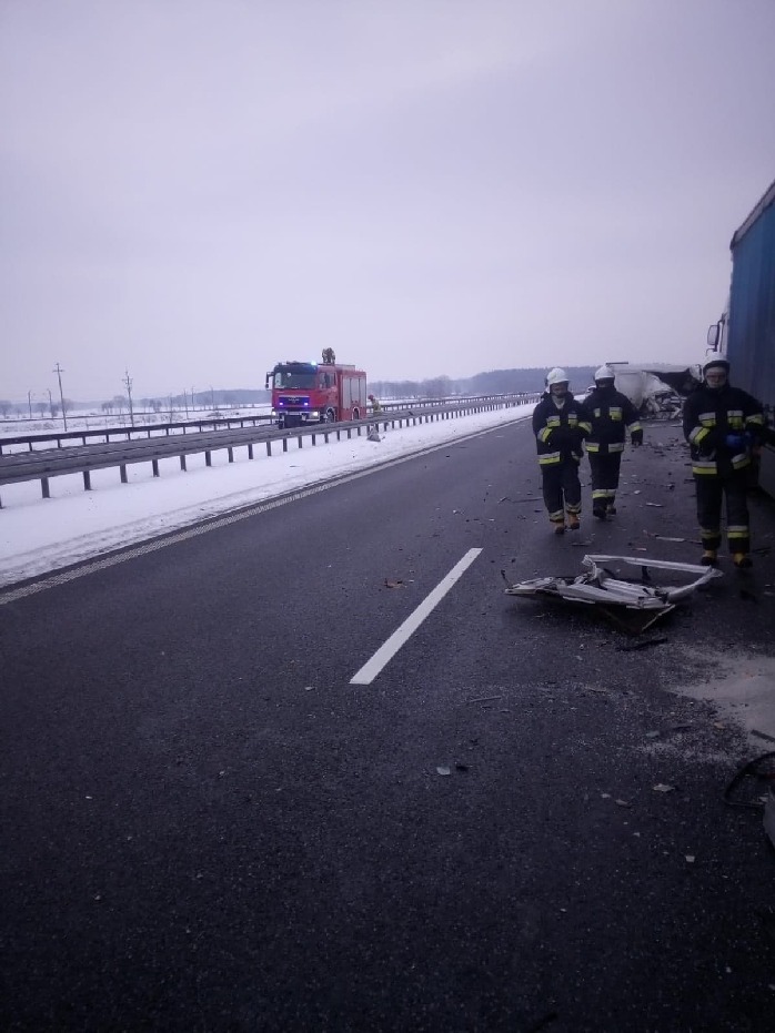 Zgłoszenie o zderzeniu dostawczego volkswagena z ciężarówką na 89 km drogi ekspresowej S5, pomiędzy węzłami Bojanowo – Rawicz, wpłynęło do dyżurnego Komendy Powiatowej PSP w Rawiczu w czwartek 11 lutego 2021 r. o god. 8.09. Na miejsce natychmiast udali się strażacy zawodowi oraz ochotnicy z Bojanowa.