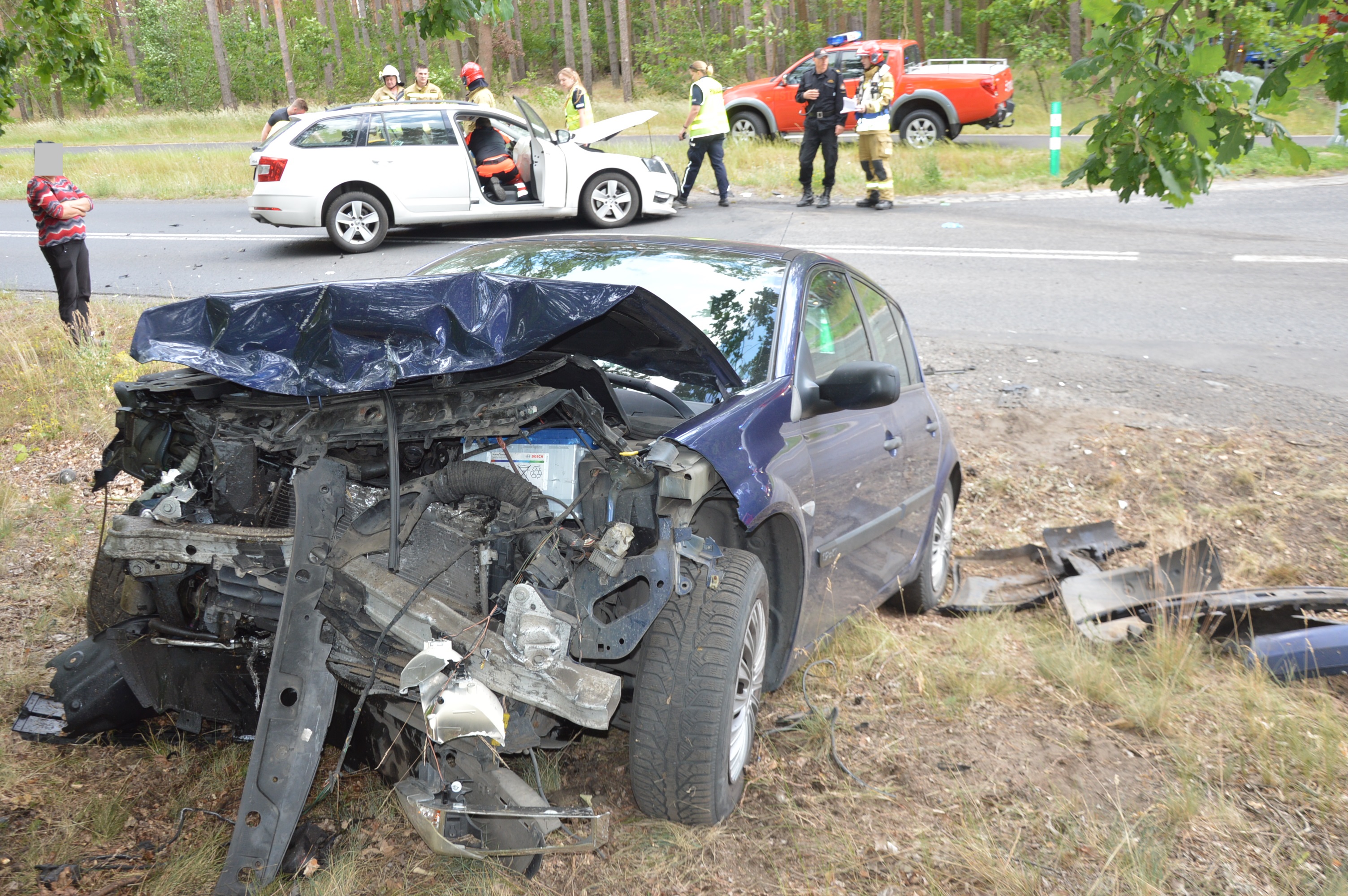 Skoda octavia i renault megane zderzyły się na skrzyżowaniu dróg pomiędzy Szymanowem a Słupią Kapitulną. Pojazdami podróżowały trzy osoby. Wszystkie zostały zabrane do szpitali.