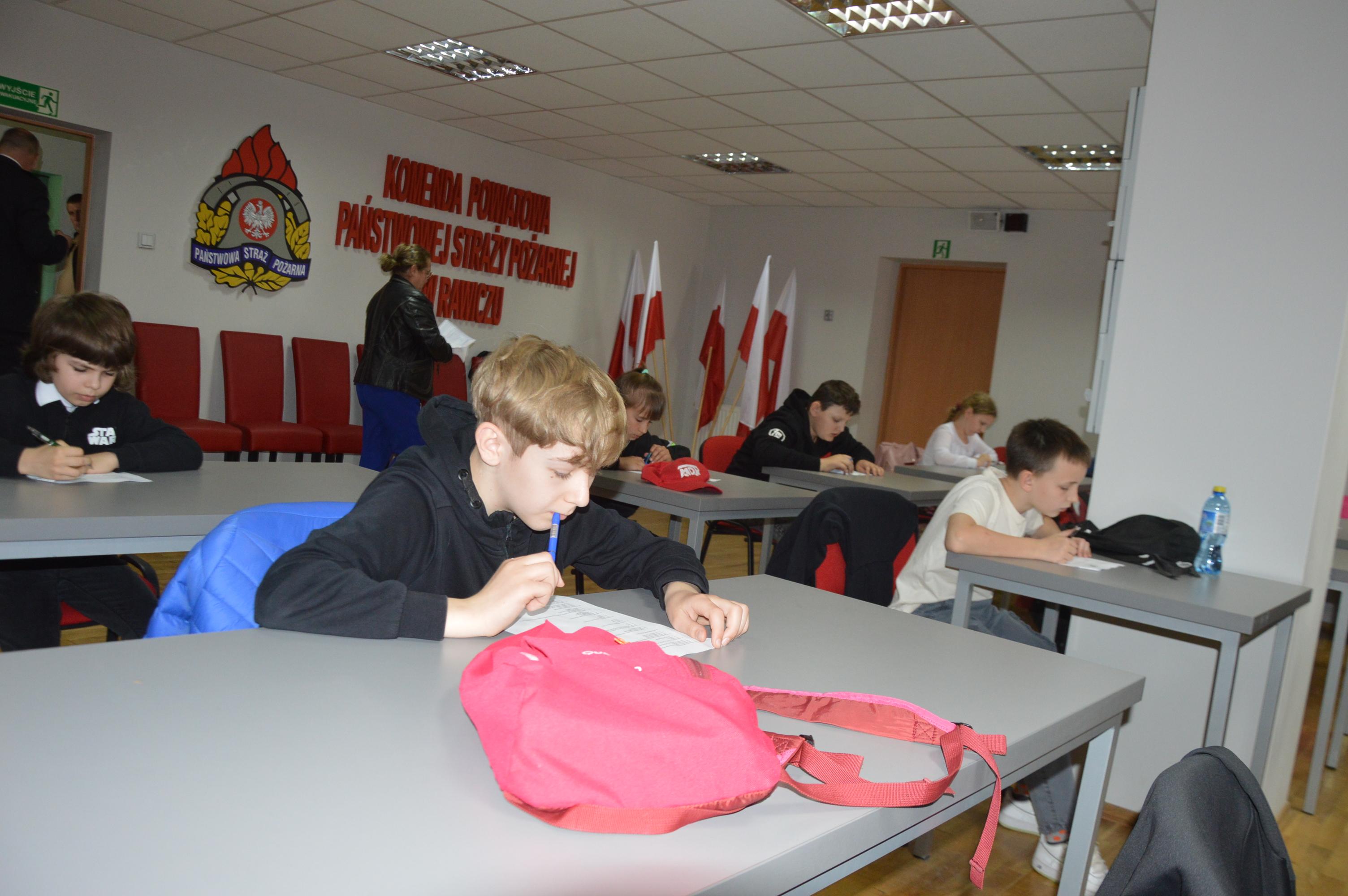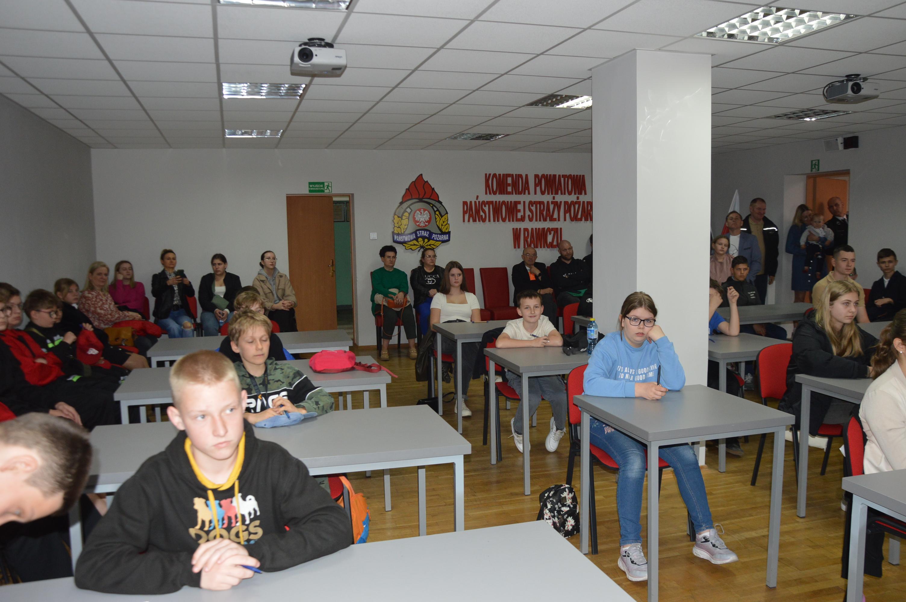 Poszczególne 3-osobowe zespoły wyłonione w drodze eliminacji gminnych spotkały się w piątek 12 kwietnia 2024 r. Komendzie Powiatowej Państwowej Straży Pożarnej w Rawiczu.