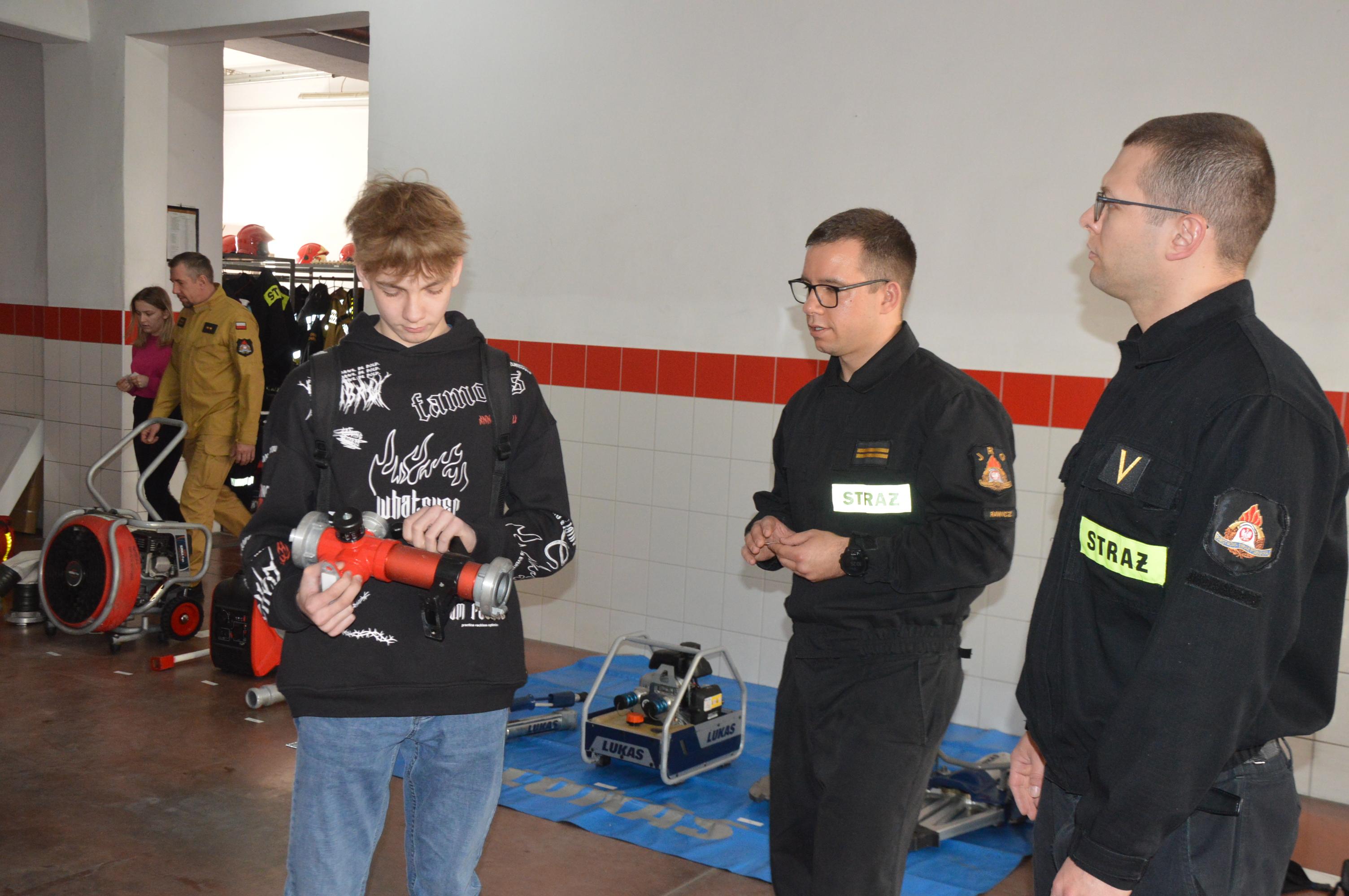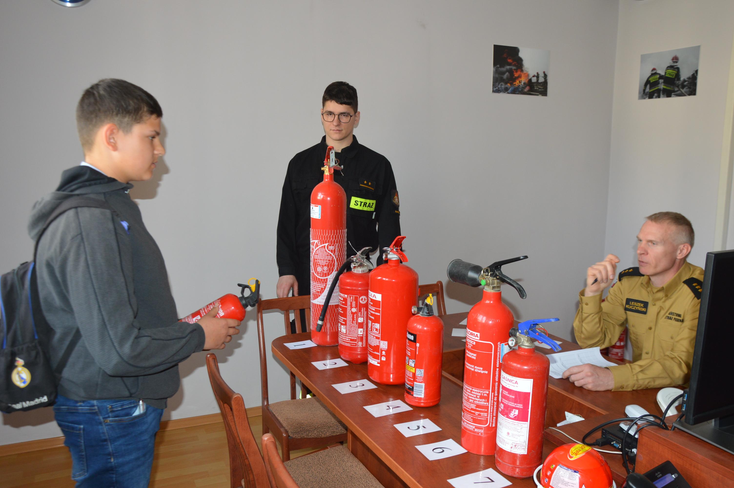 Tam czekały na nich: test zawierający 30 pytań, gaśnice oraz sprzęt, który na co dzień jest wykorzystywany przez strażaków podczas akcji ratowniczych prowadzonych zarówno podczas pożarów jak i innych miejscowych zagrożeń.