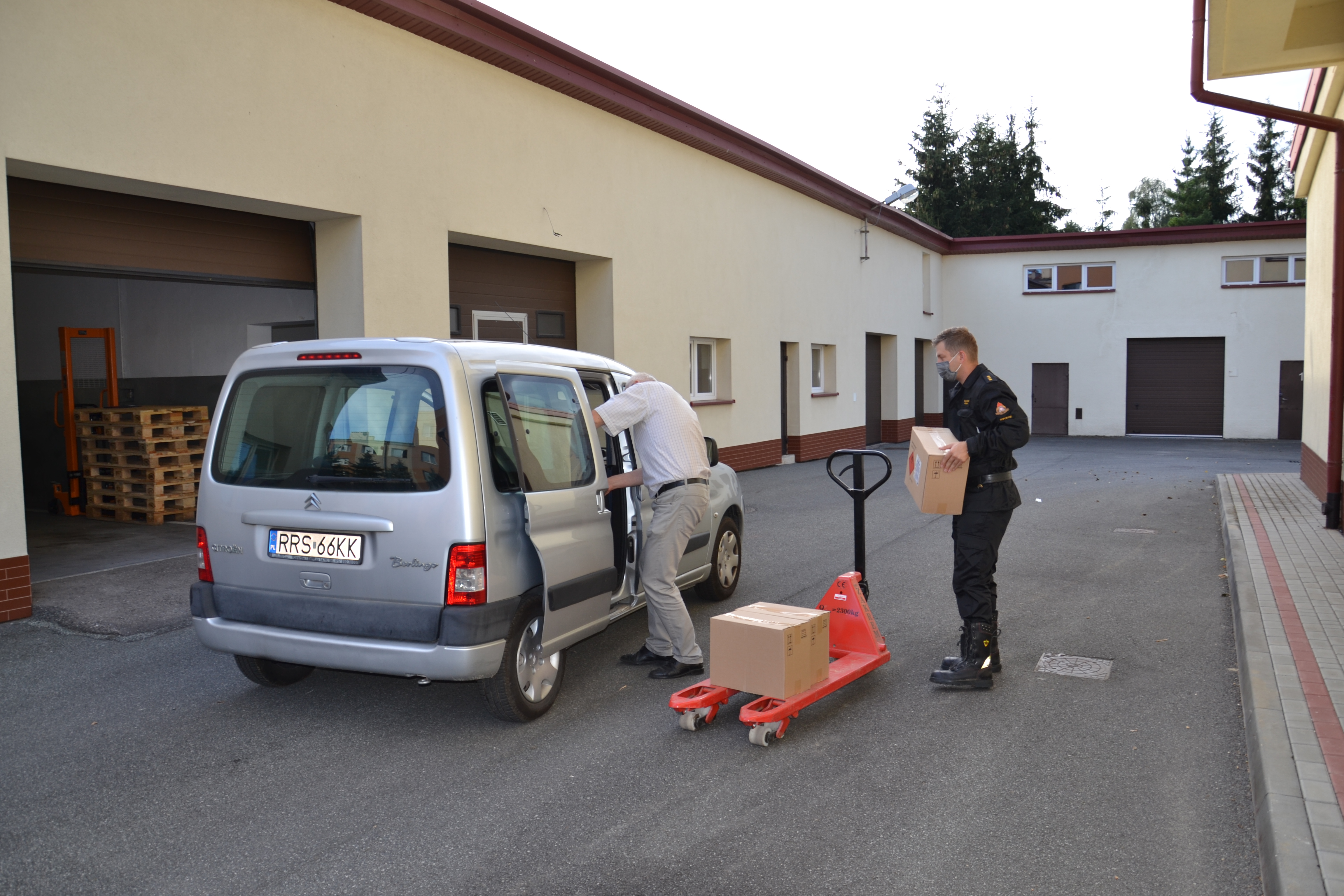 Strażacy Komendy Powiatowej PSP w Ropczycach realizując polecenie Komendanta Głównego PSP w dniu 28.08.2020 odebrali transport środków ochrony indywidualnej z przeznaczeniem dla szkól podstawowych i średnich działających na terenie powiatu ropczycko-sędziszowskiego. Środki zostały dostarczone z Agencji Rezerw Materiałowych przez żołnierzy 10 Brygady Logistycznej z Opola w ilości 1434 szt. pojemników 5 l płynu do dezynfekcji oraz 30650 szt. maseczek. Po rozładunku środki zostały rozdzielone przez tutejszych strażaków na poszczególne szkoły według wykazów sporządzonych i dostarczonych przez jednostki samorządowe z terenu powiatu. Wspólnie z przedstawicielami samorządów rozdzielone środki zostały dostarczone przed rozpoczęciem nowego roku szkolnego do wszystkich szkół i ośrodków oświatowych z tereny naszego powiatu, które złożyły zapotrzebowanie.