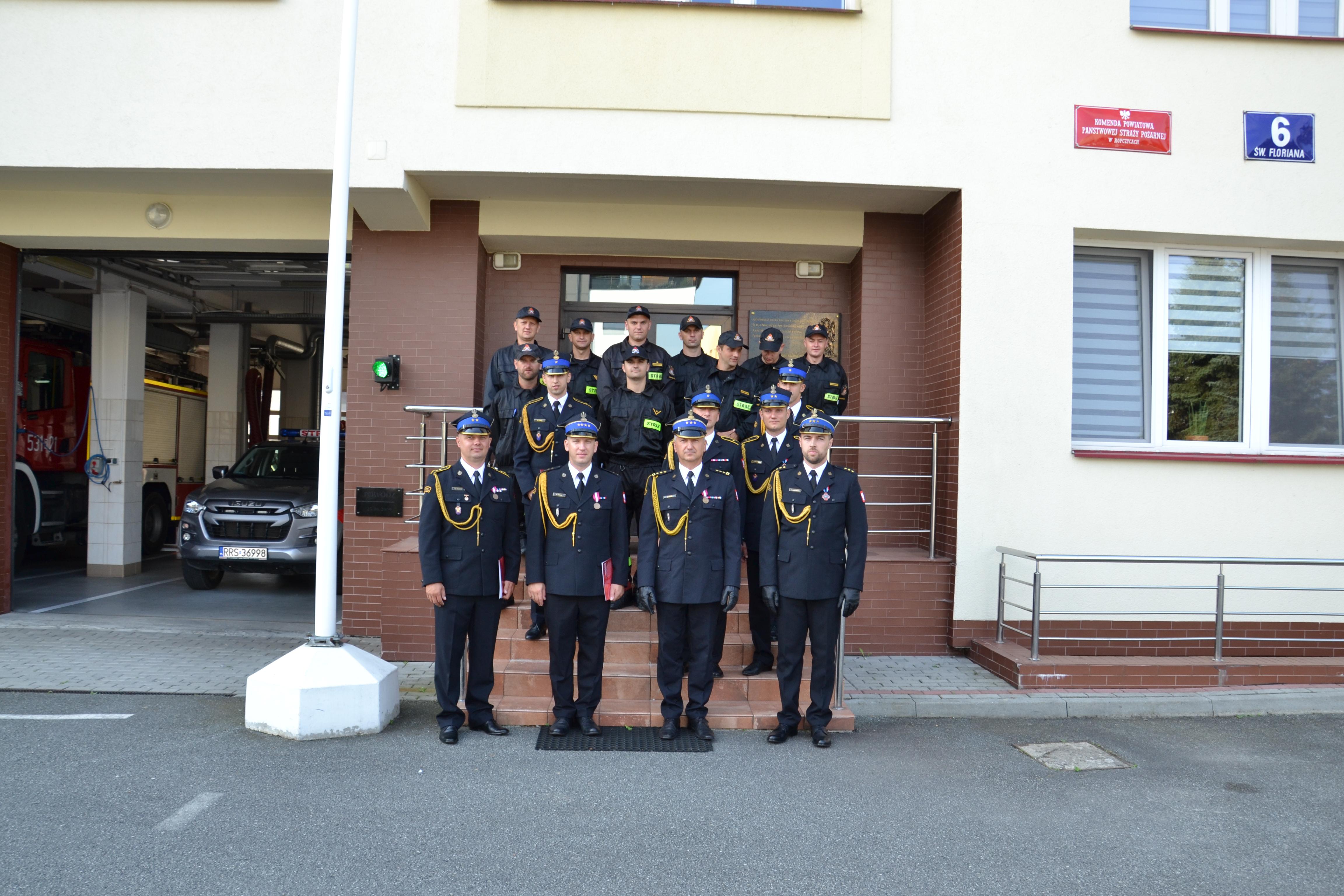 w Ropczycach odbyła się uroczysta zbiórka w trakcie, której st. bryg. Łukasz Szopa Komendant Powiatowy PSP w Ropczycach wręczył akty mianowania na wyższe stanowiska służbowe.