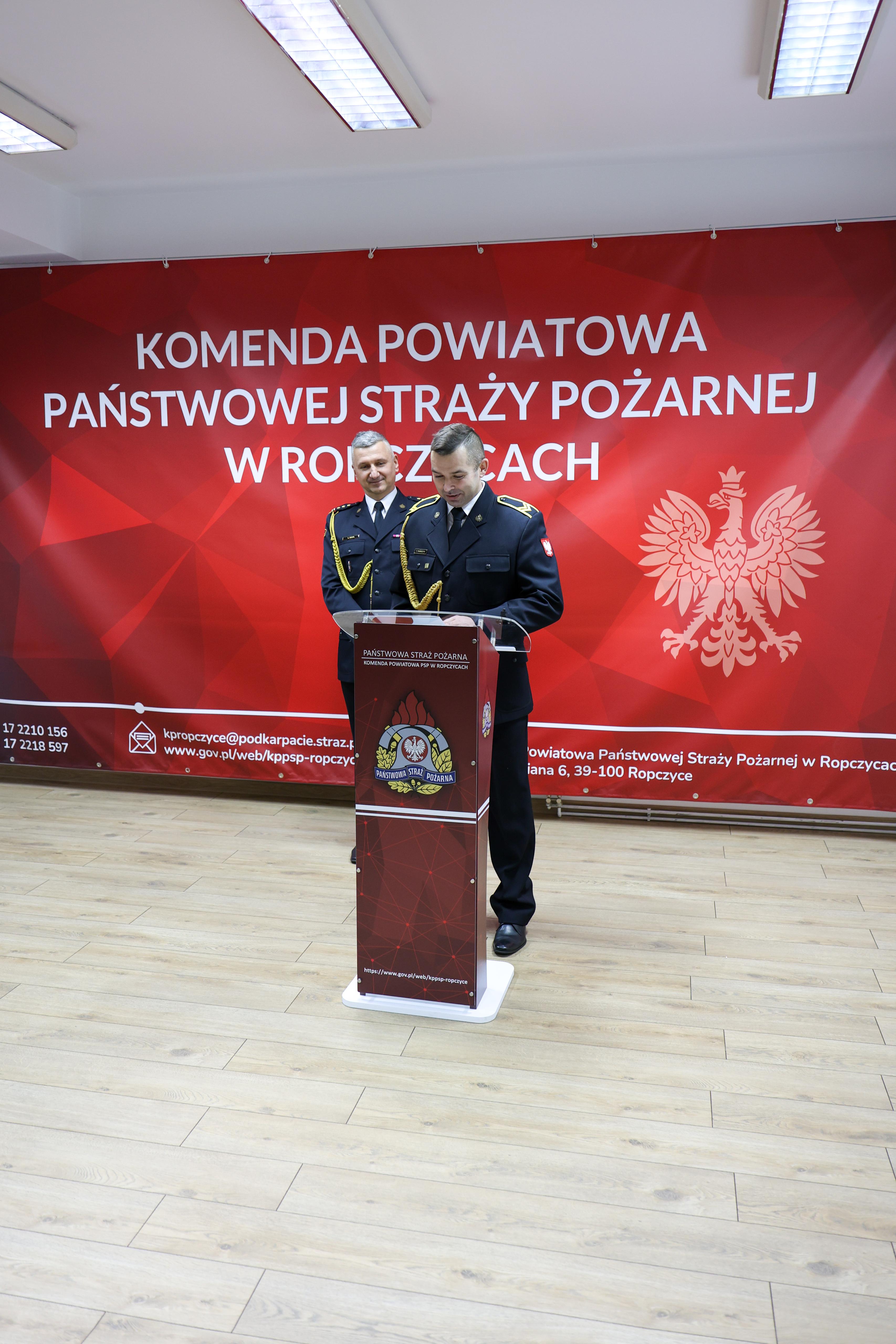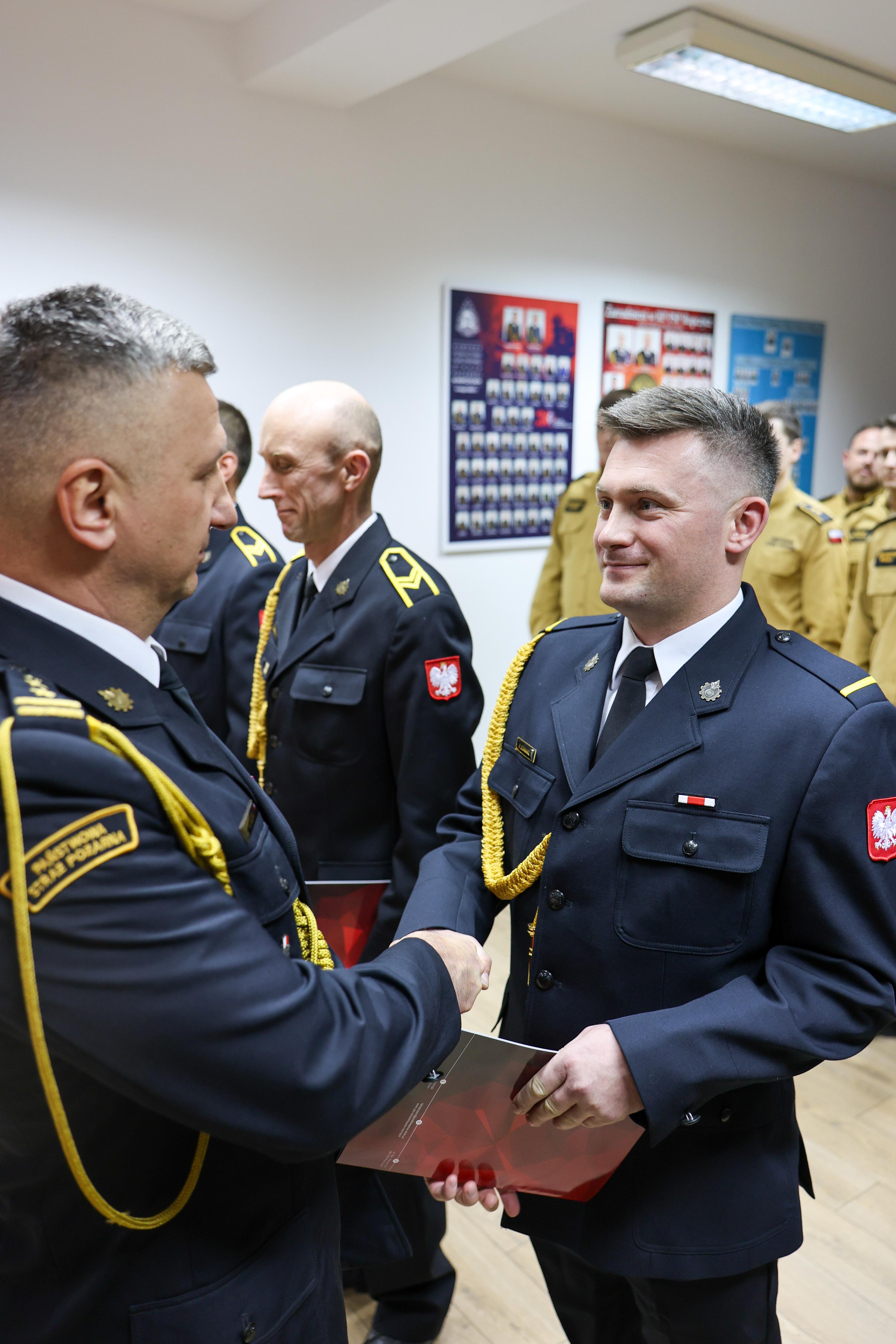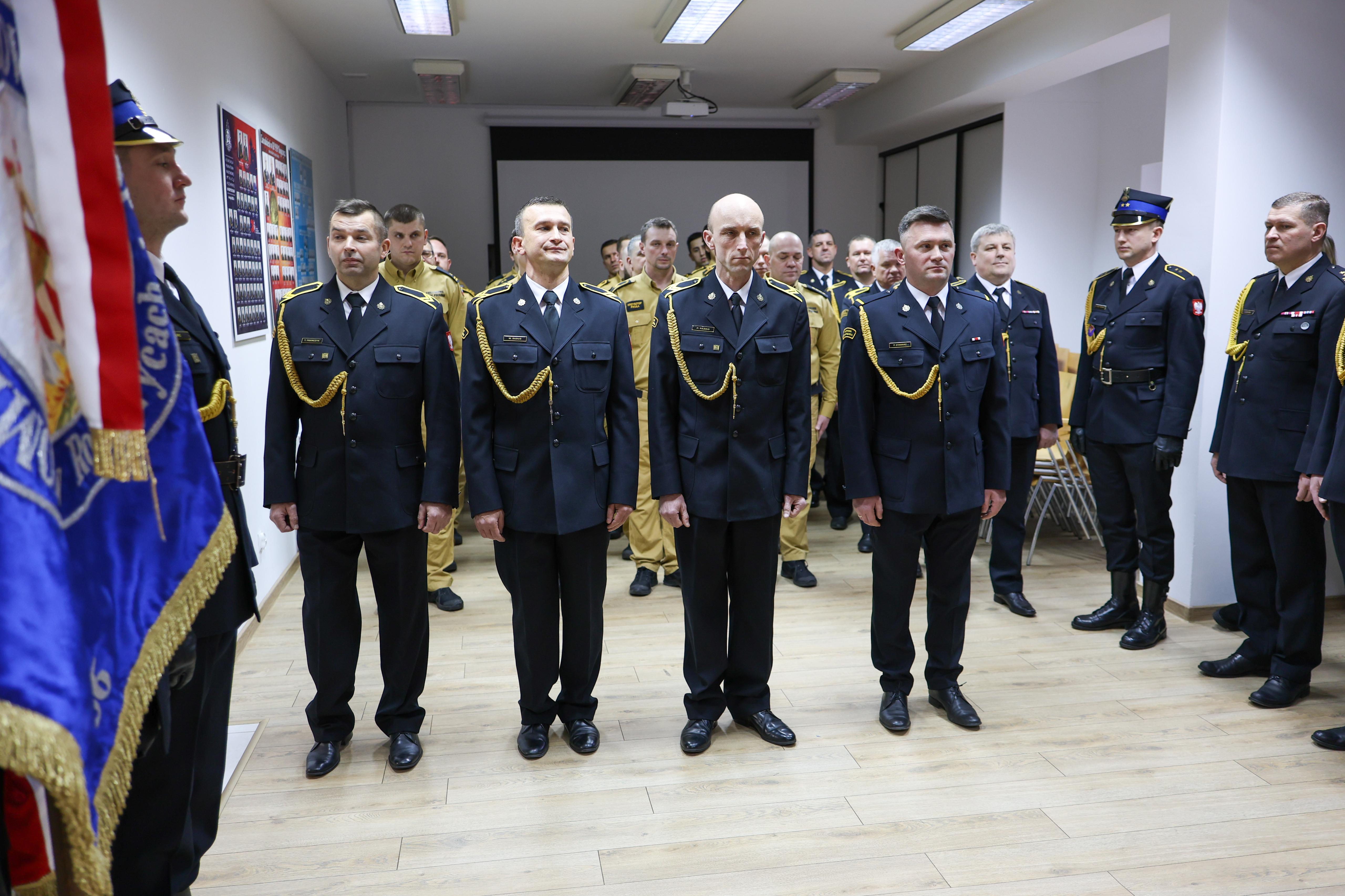 Zabierając głos, Komendant Powiatowy pogratulował awansowanym strażakom, dziękując jednocześnie całej załodze za codzienną służbę, profesjonalizm oraz zaangażowanie w realizację zadań stojących przed Państwową Strażą Pożarną. Podkreślił, że to właśnie ludzie i ich doświadczenie stanowią największą siłę jednostki.