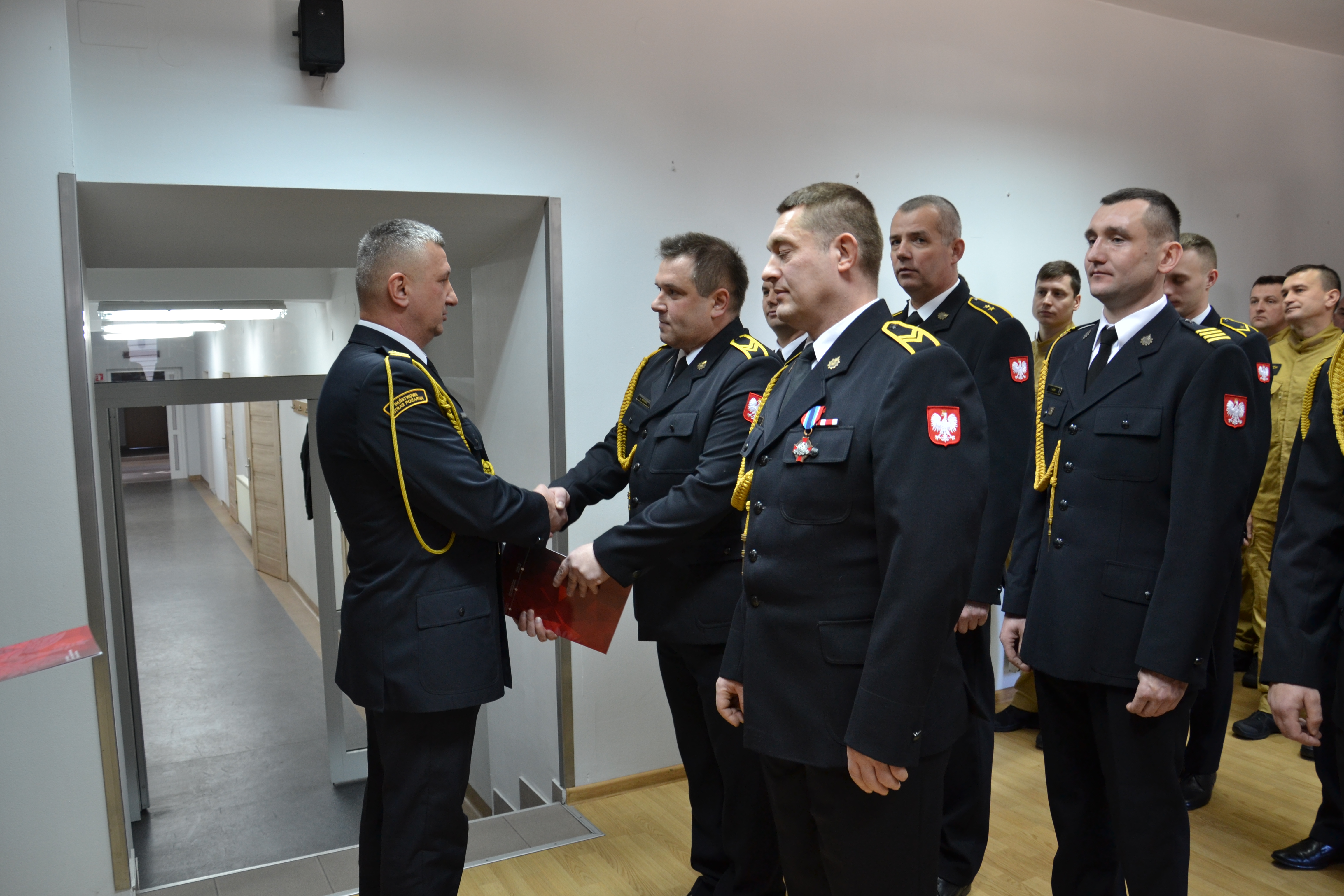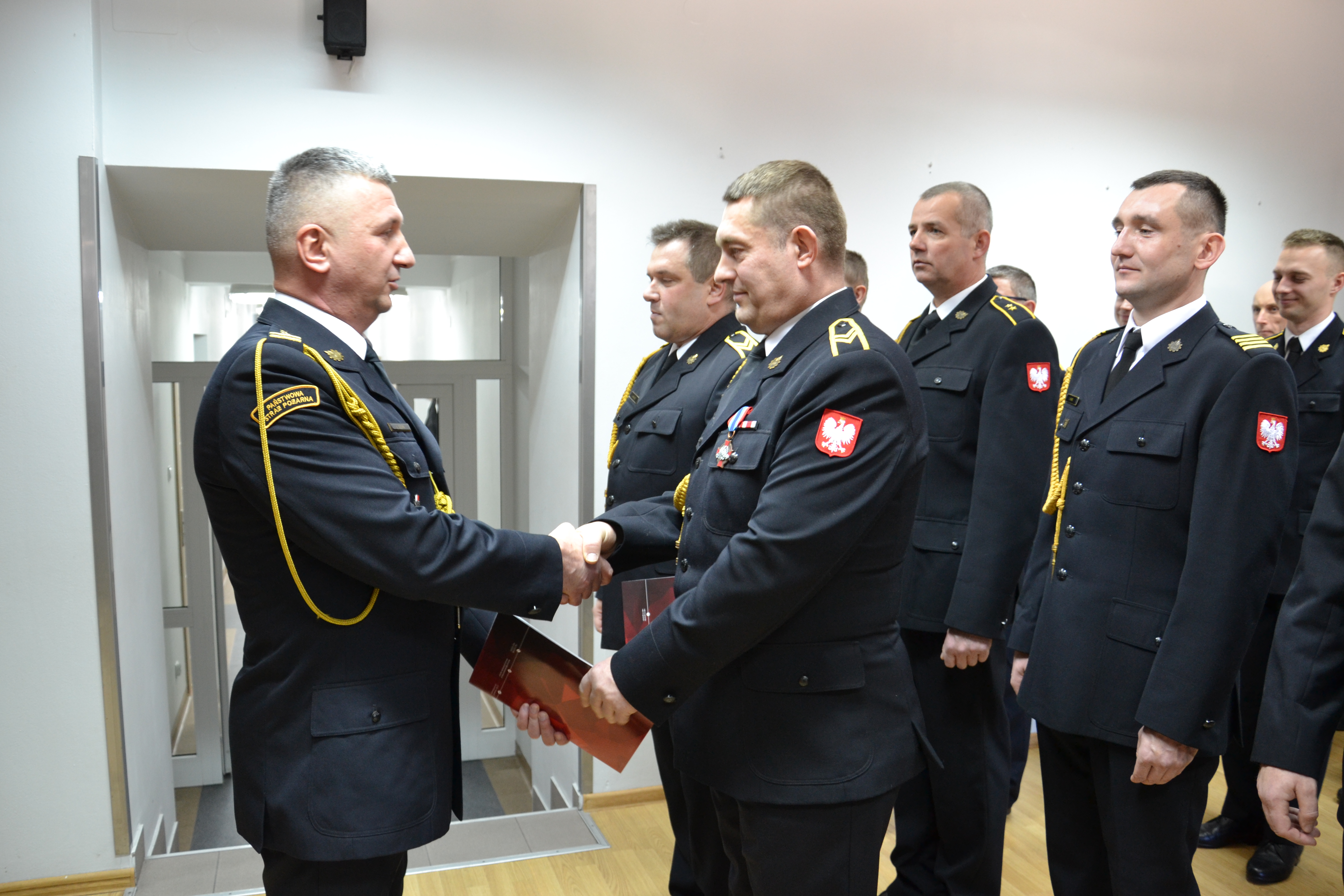Komendant Powiatowy zabierając głos, pogratulował awansów oraz podziękował wszystkim strażakom za dotychczasową współpracę oraz zaangażowanie w wypełnianiu obowiązków służbowych.