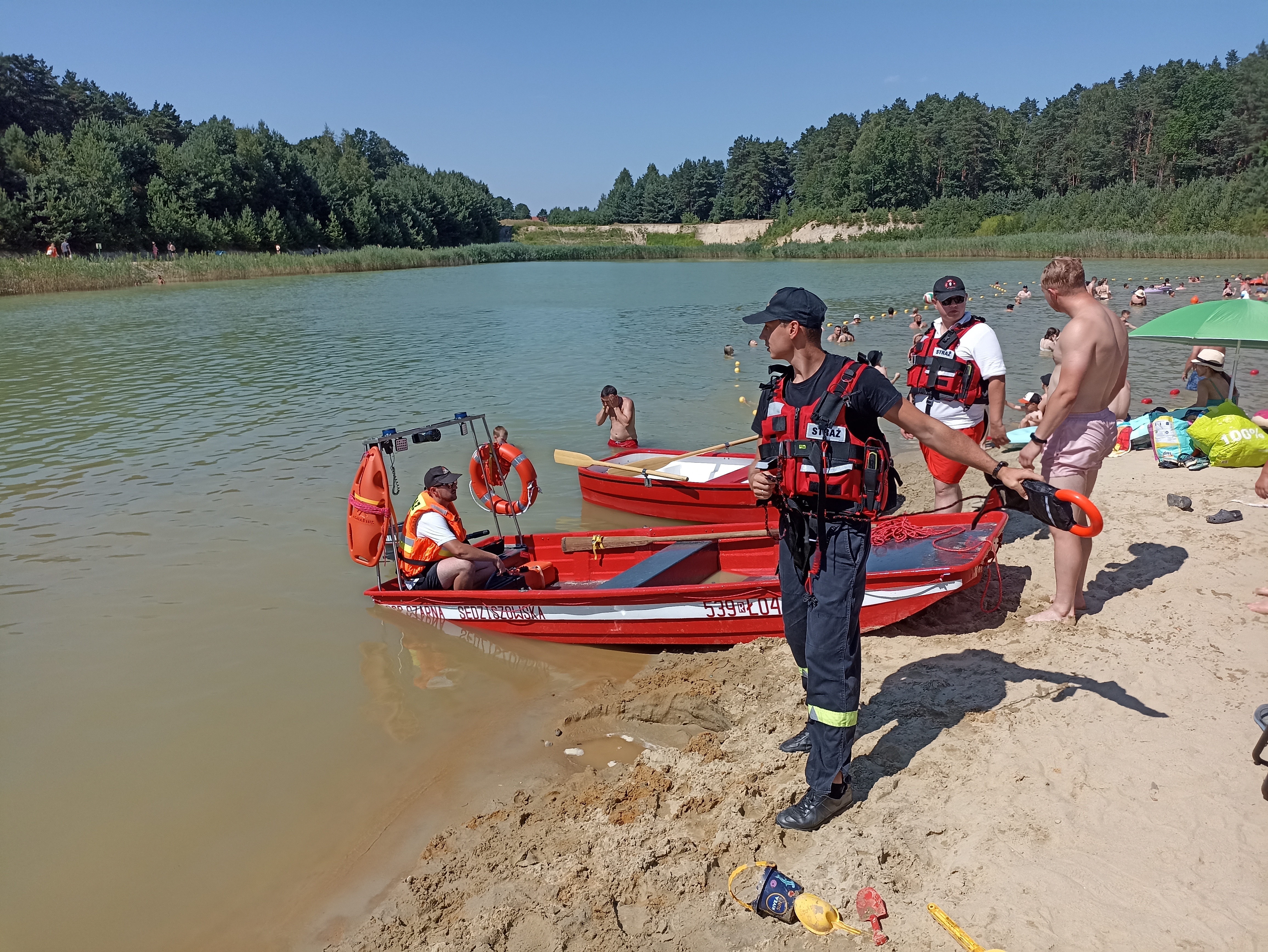 Na plaży każdy mógł zapoznać się ze sprzętem pożarniczym, a także spotkać się ze strażakami i porozmawiać na tematy dotyczące służby, bezpieczeństwa czy też prowadzonych przez straż pożarną działań.