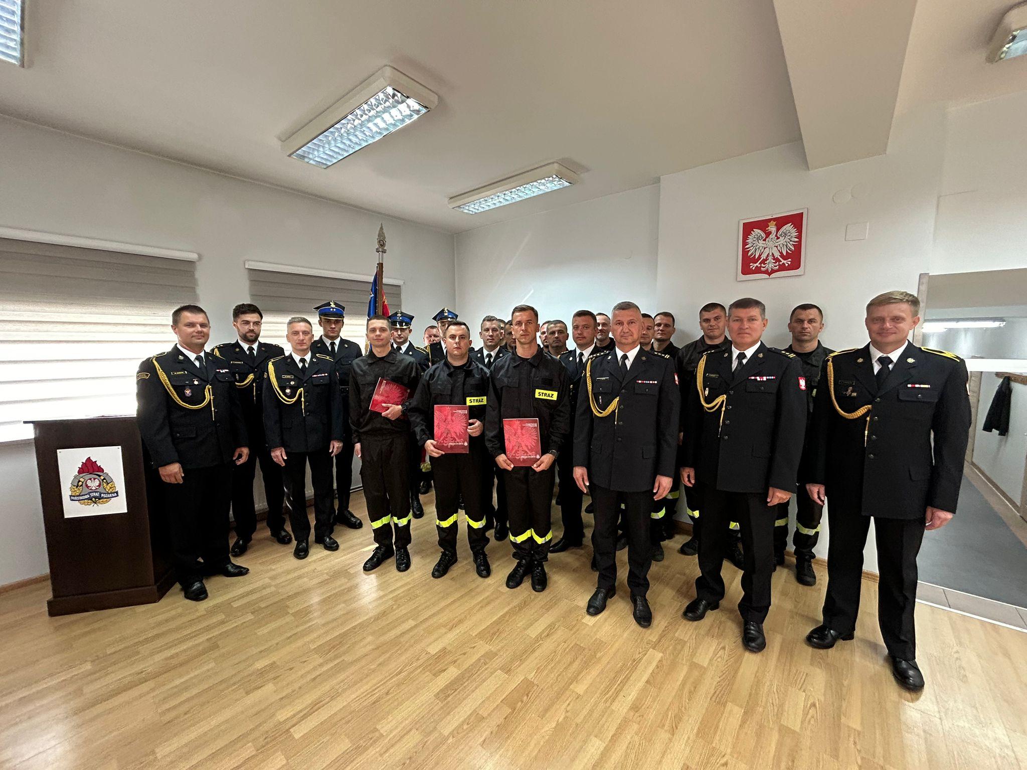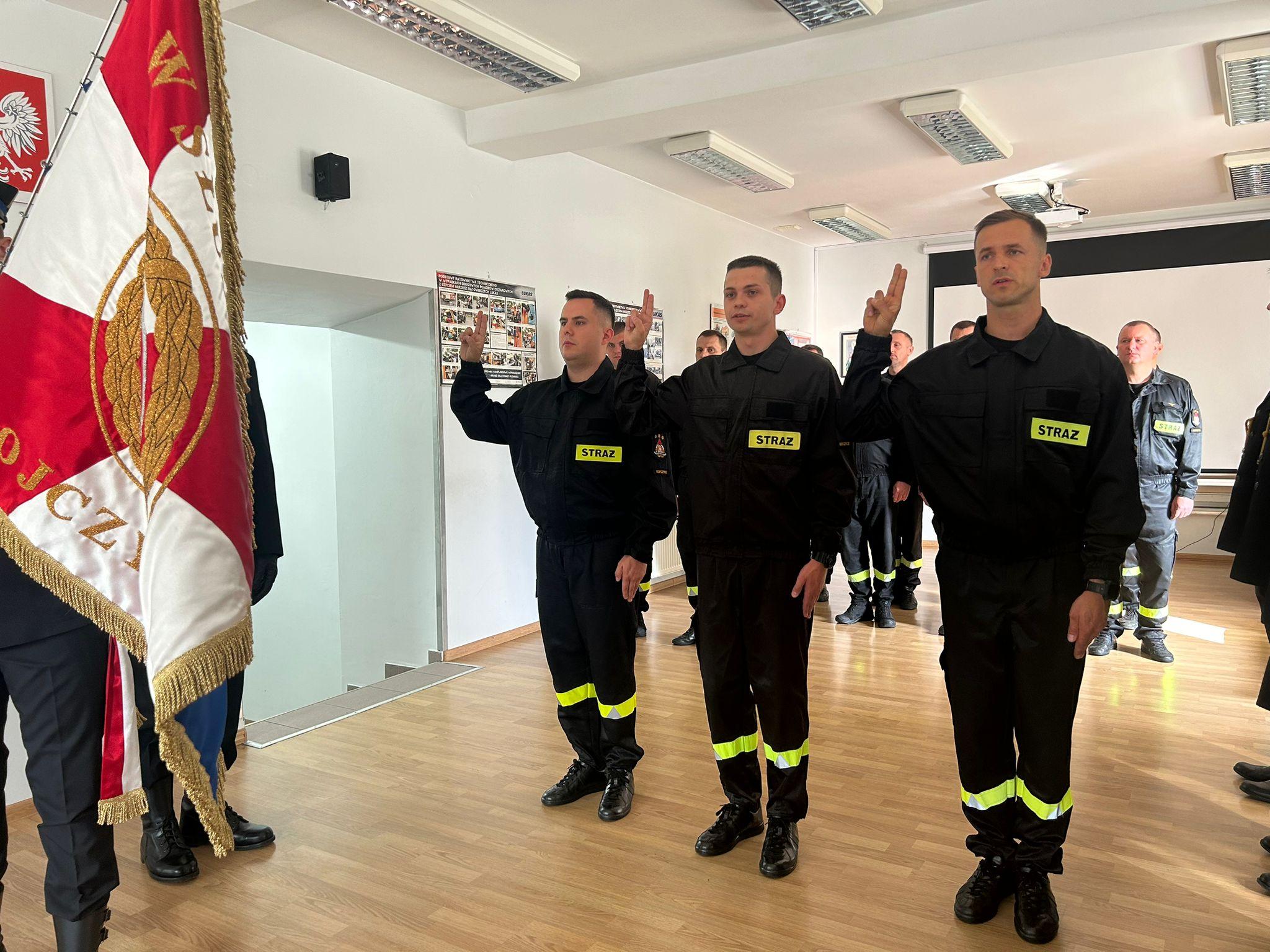 str. Adrian Morzywołek, str. Kacper Darłak oraz str. Łukasz Ćwiczak służbę rozpoczęli 1 sierpnia 2024 r. W ostatnich dniach strażacy zapoznali się ze sprzętem, zasadami oraz regulaminami obowiązującymi w Państwowej Straży Pożarnej.