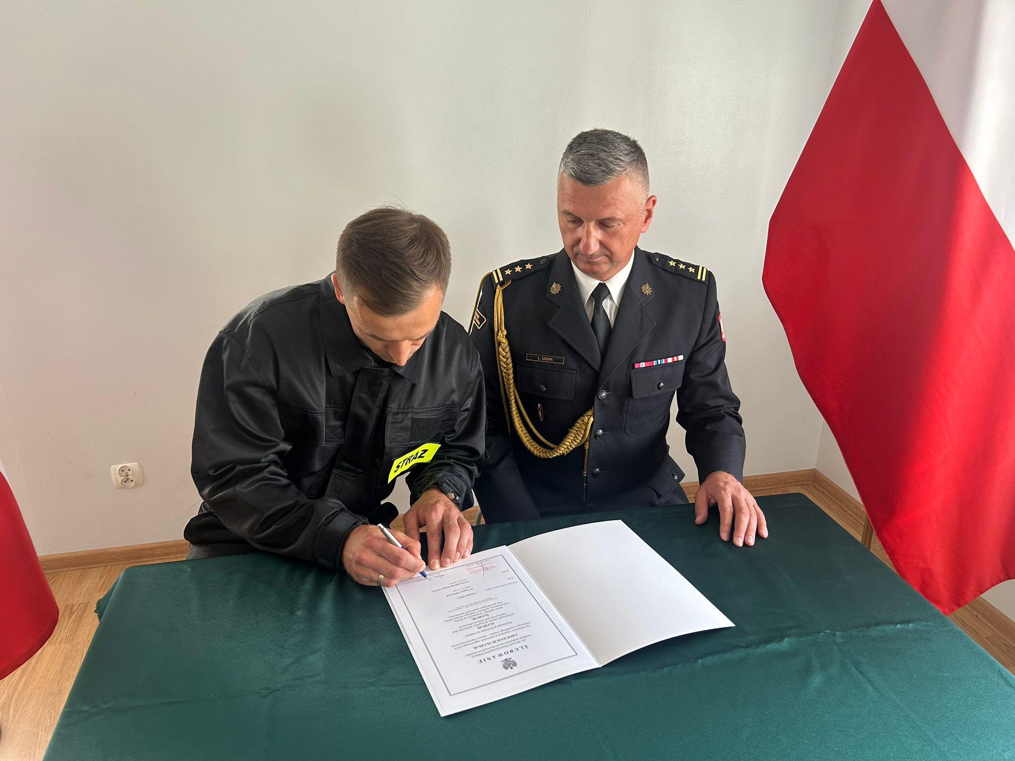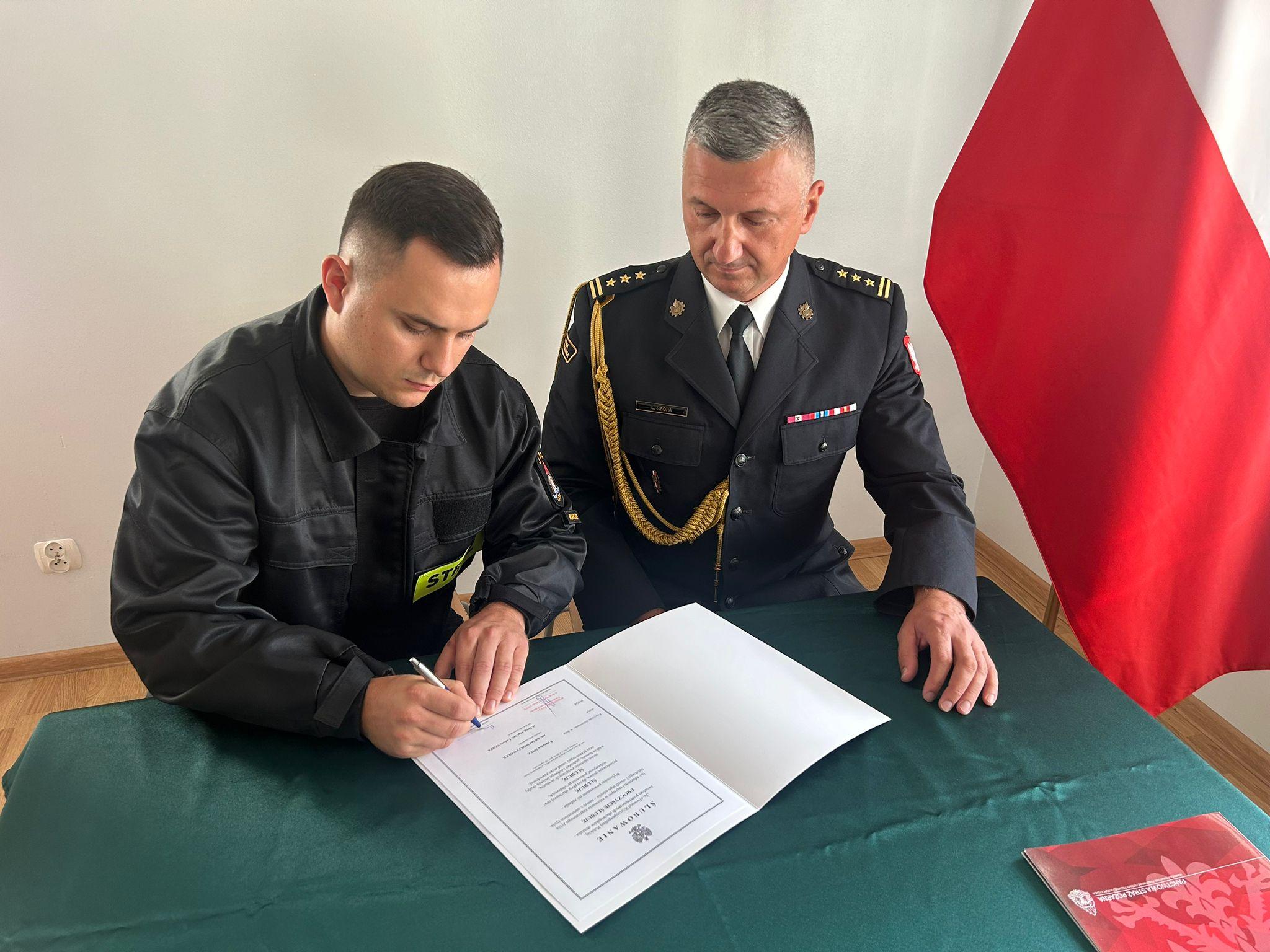 Ślubowanie przyjął Komendant Powiatowy PSP st. bryg. Łukasz Szopa w obecności pozostałych funkcjonariuszy komendy.