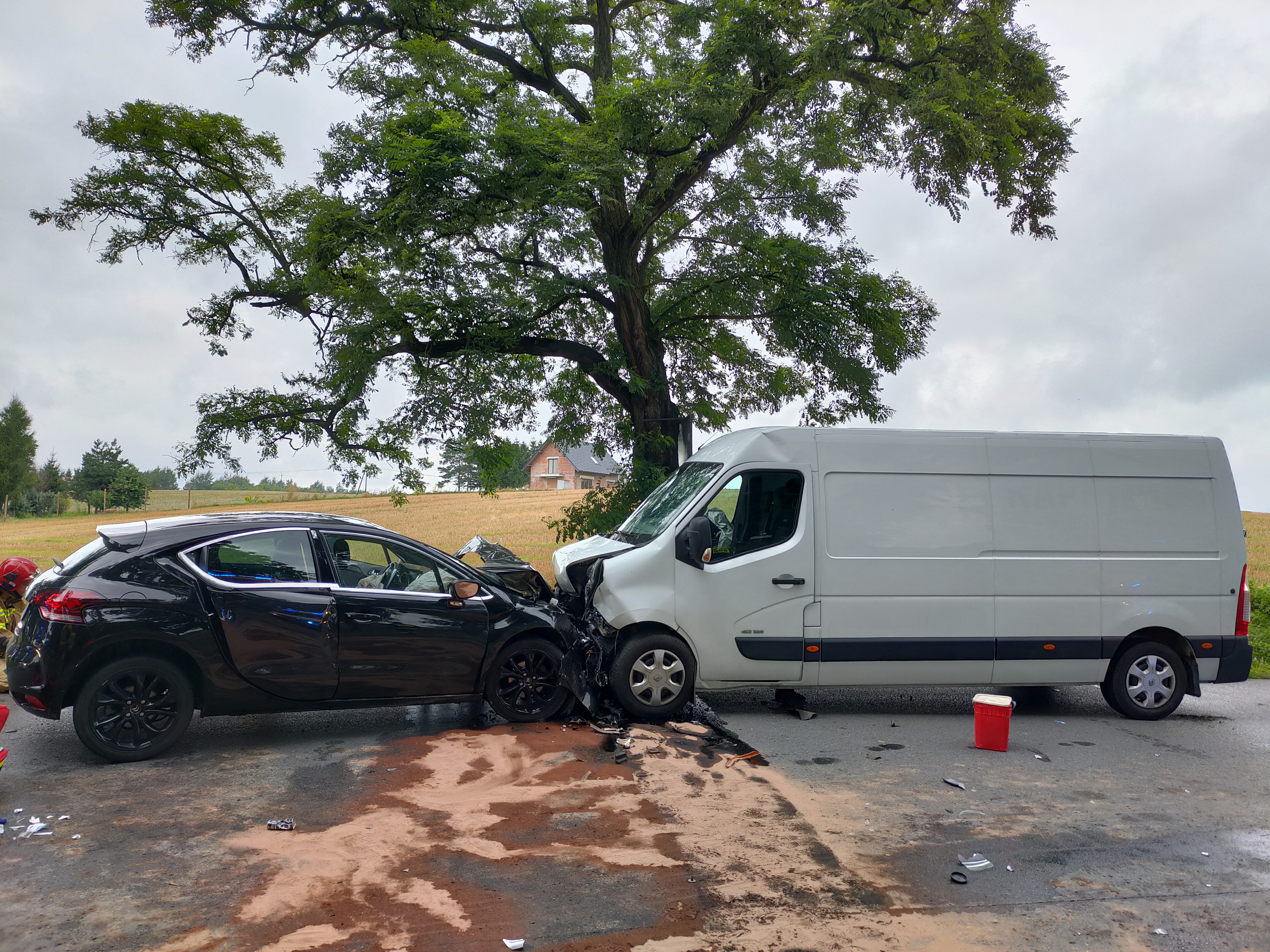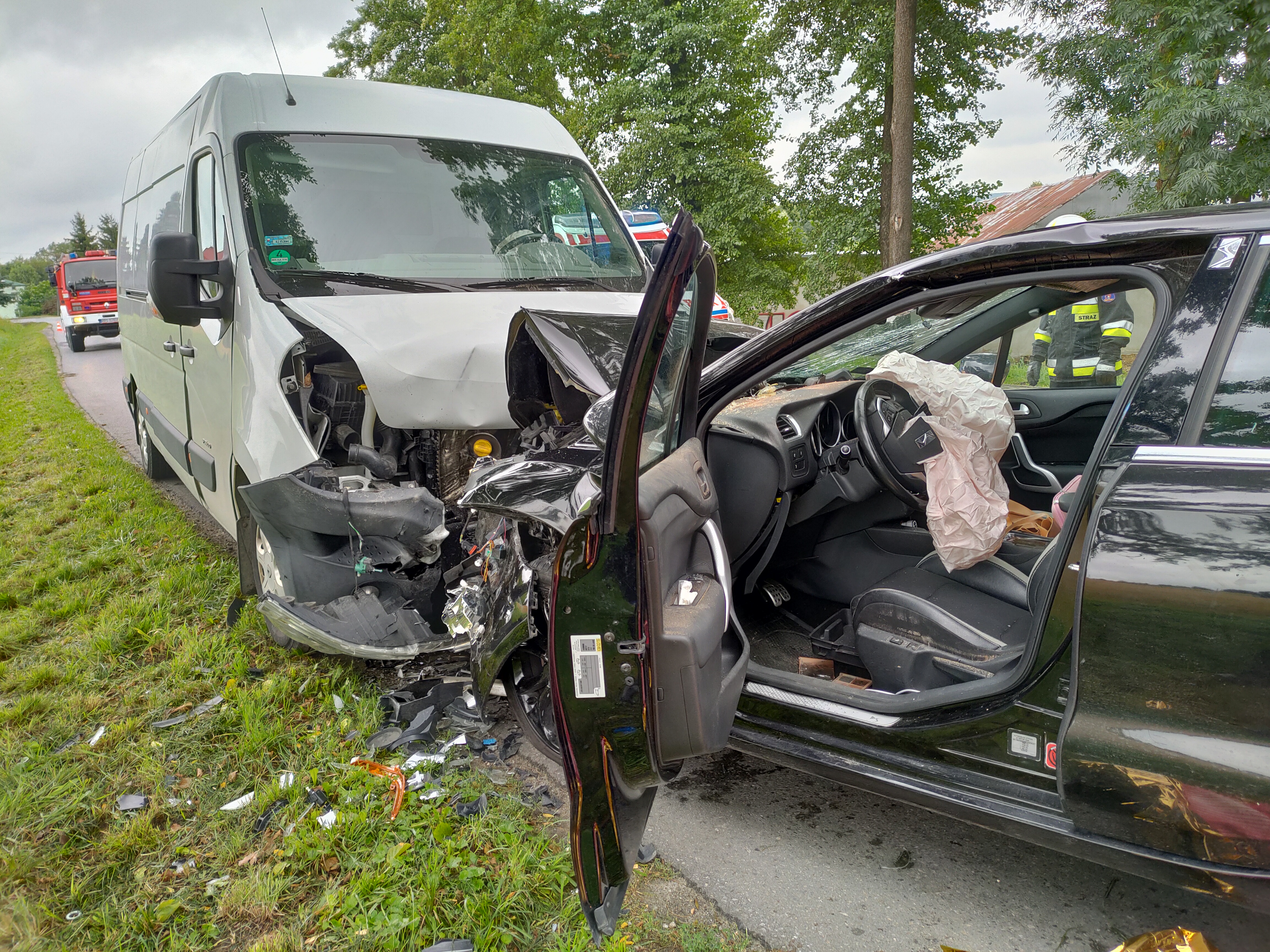 Zderzenie samochodu osobowego z busem.