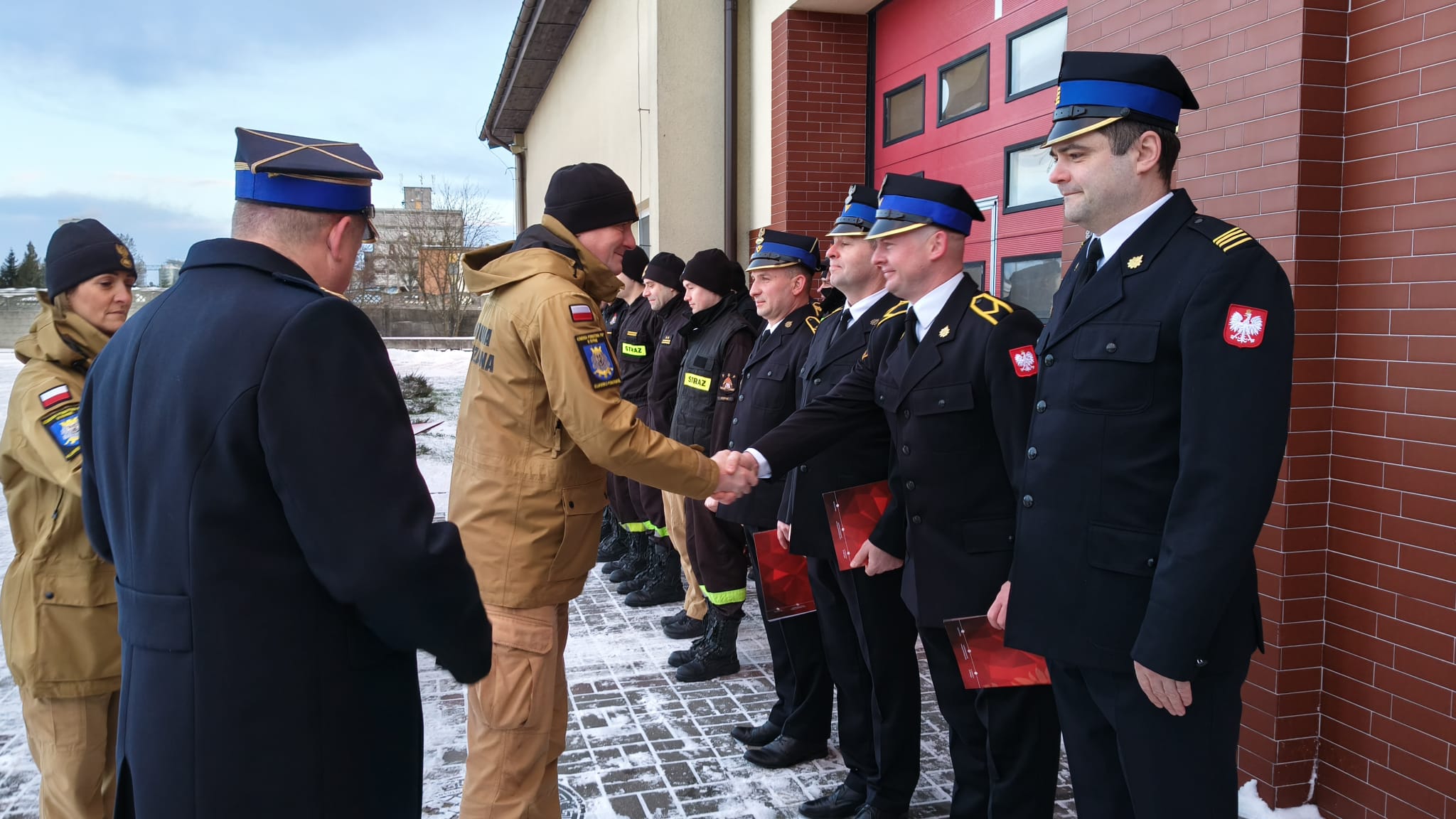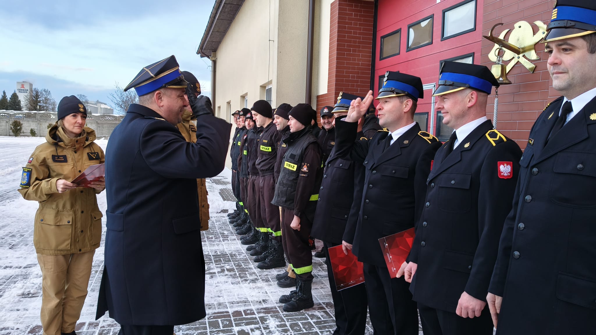 30 grudnia 2025 r. w Komendzie Powiatowej Państwowej Straży Pożarnej w Rypinie odbyła się uroczysta zmiana służby. W wydarzeniu uczestniczył Komendant Powiatowy PSP w Rypinie st. bryg. Dariusz Łęgosz, Zastępca Komendanta Powiatowego PSP kpt. Marcin Czarnecki, a także strażacy ze zmian służbowych.