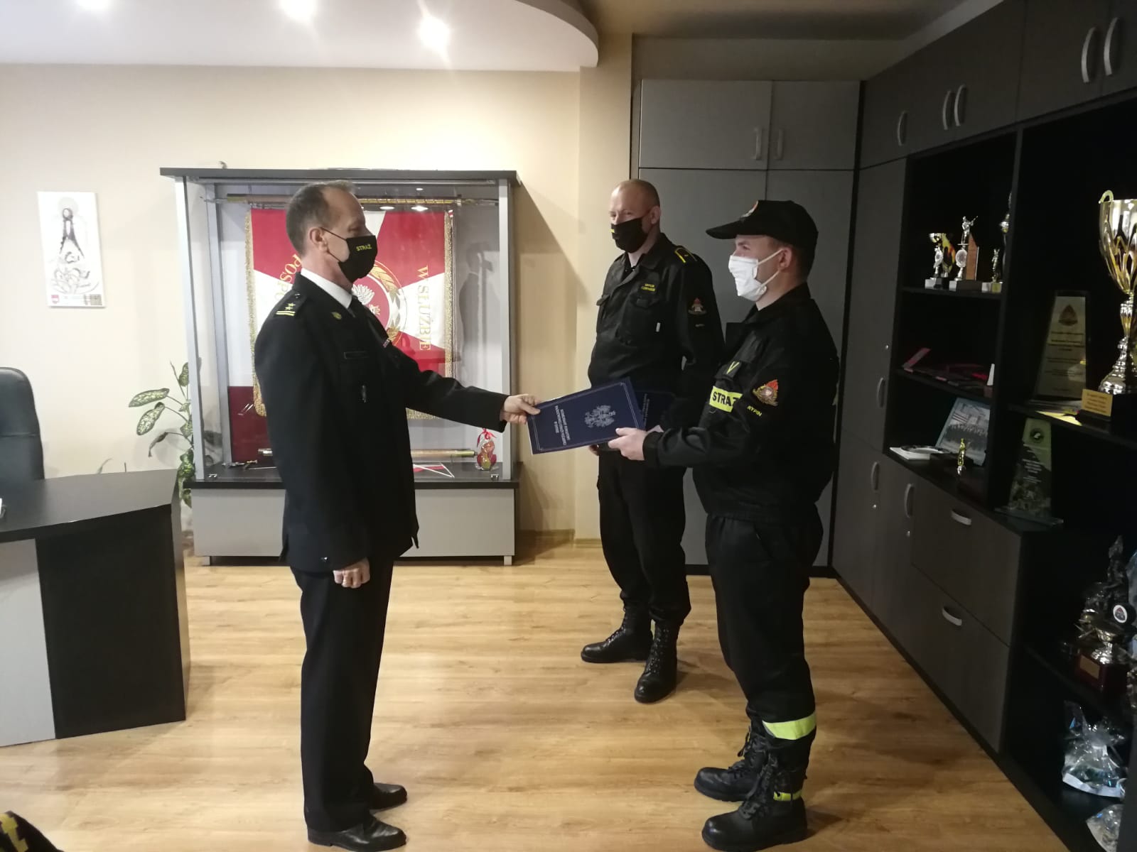 13.11.2020 r. Zastępca Komendanta Powiatowego Państwowej Straży Pożarnej w Rypinie bryg. Andrzej Górecki wręczył akty nadania wyższych stopni służbowych: