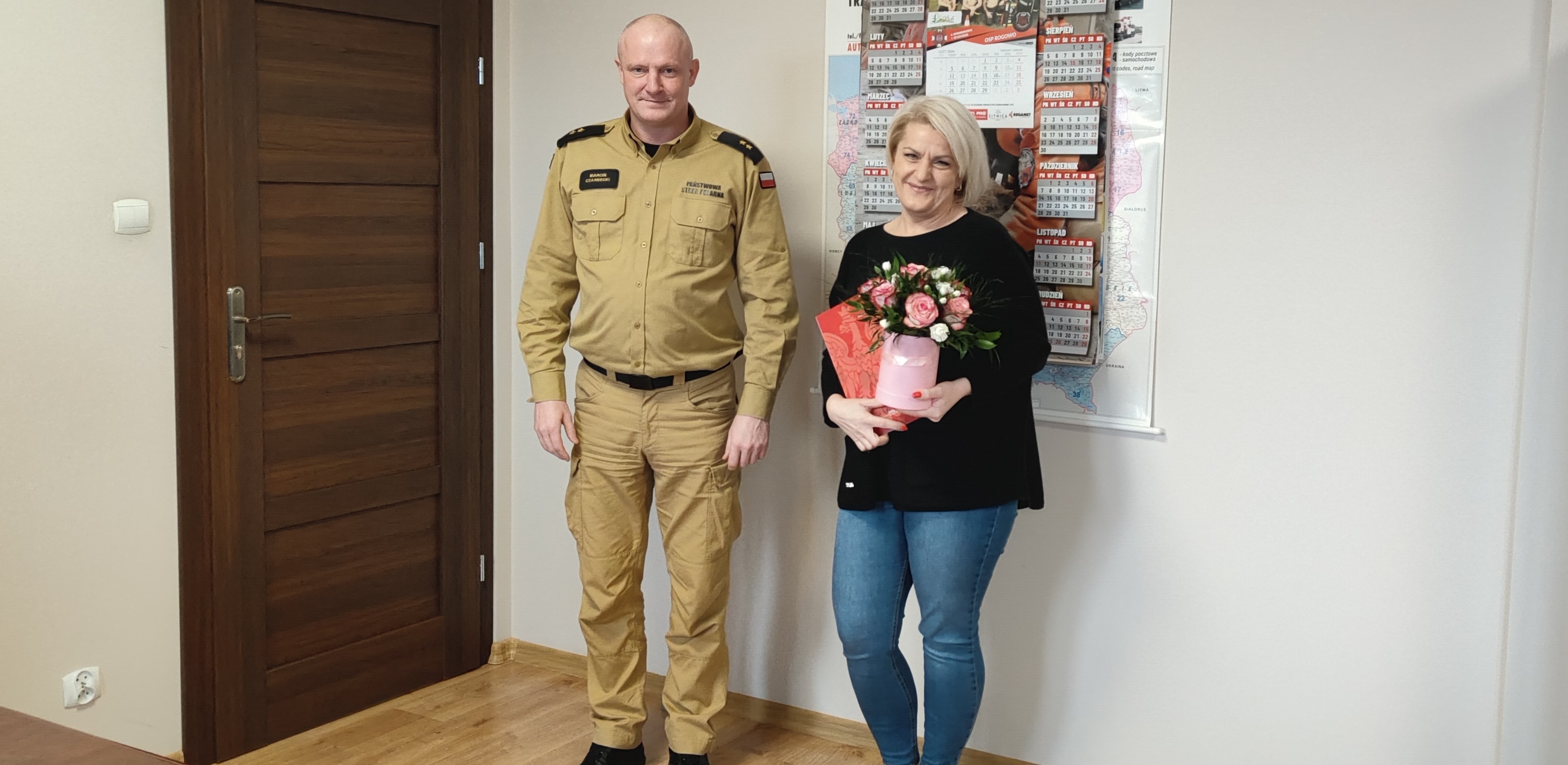19 lutego 2024 r. z okazji Dnia Służby Cywilnej przypadającego na 17 lutego 2024 roku, p. o. Komendant Powiatowy Państwowej Straży Pożarnej w Rypinie mł. kpt. Marcin Czarnecki w imieniu funkcjonariuszy oraz pracownika cywilnego Komendy Powiatowej Państwowej Straży Pożarnej w Rypinie przekazał Pani Joannie Marchlewskiej głównej księgowej, będącej pracownikiem Korpusu Służby Cywilnej w rypińskiej komendzie słowa uznania oraz list gratulacyjny za codzienną pracę umożliwiającą funkcjonowanie komendy przy dużym zaangażowaniu w wykonywanie obowiązków służbowych.